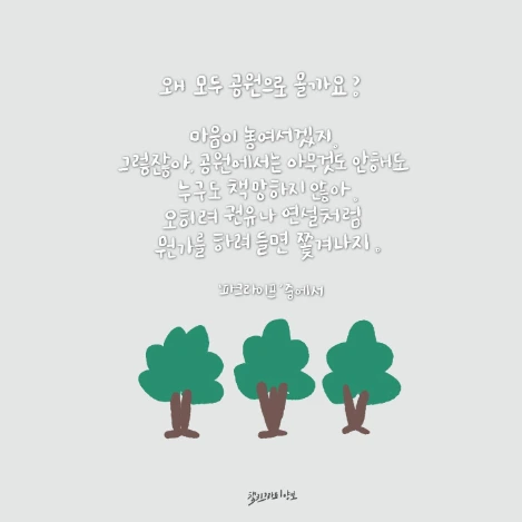 경쟁에 익숙해진 이 세대는 쉼도 배워야 할 영역이 되어버린 듯하다. 방학이나 휴가를 보내고 오면 어딜 갔다 왔는지 묻는다. 외국으로 갔다 온 사람의 쉼은 대단해 보이고, 별 일 없이 집에 있었다면 시시하게 보기도 한다. 이러한 분위기는 안타깝지만, 일찌감치 자신에게 맞는 쉼을 고민해 볼 수 있다고 생각하면, 좋은 일이라고 생각한다.