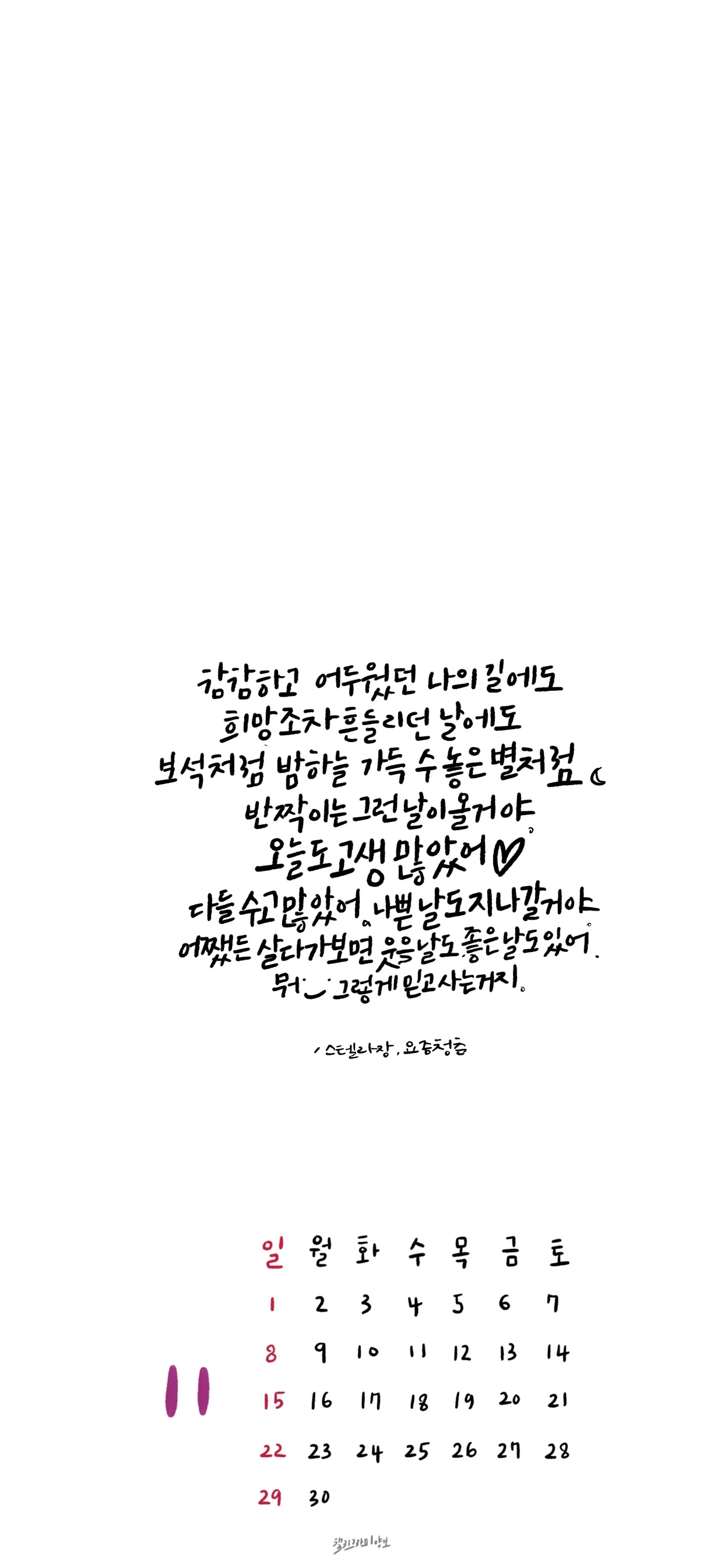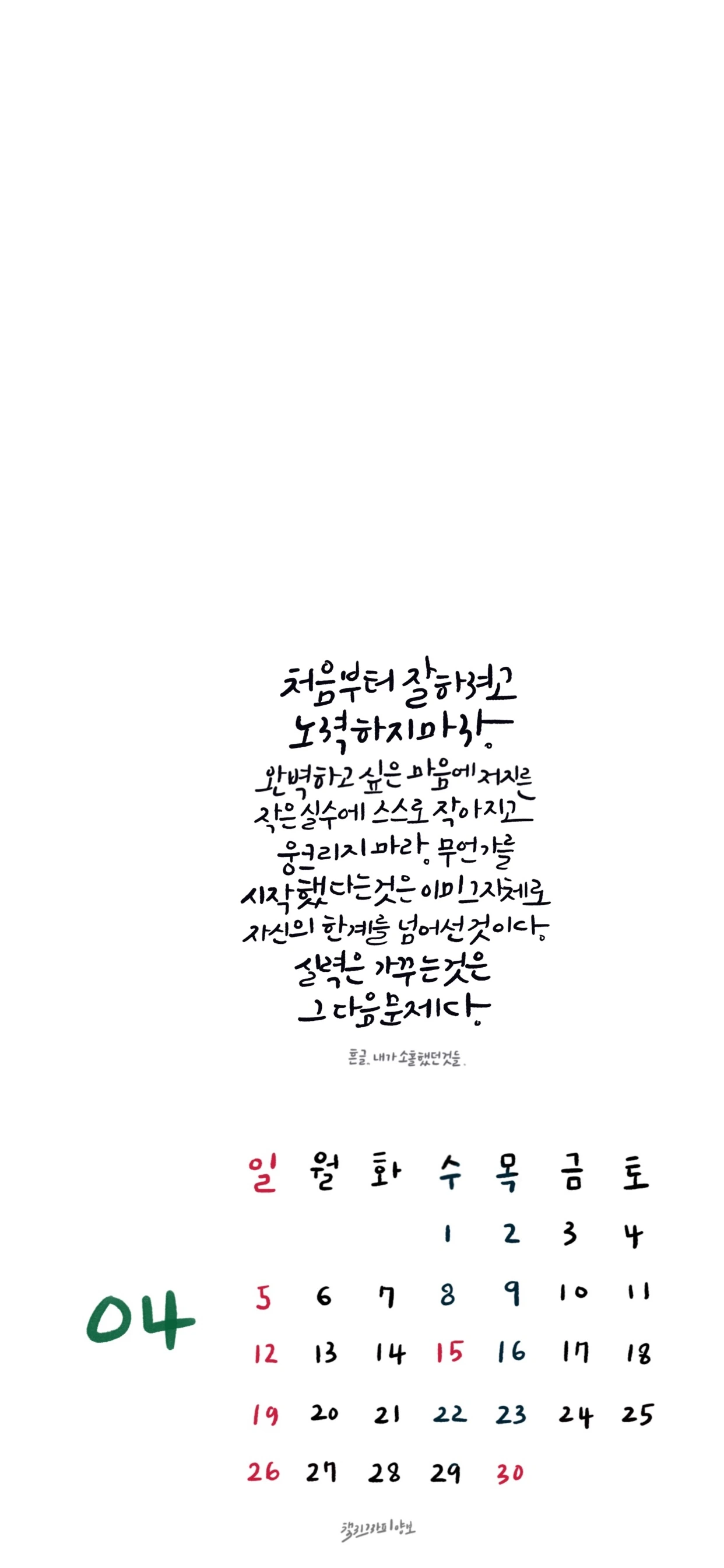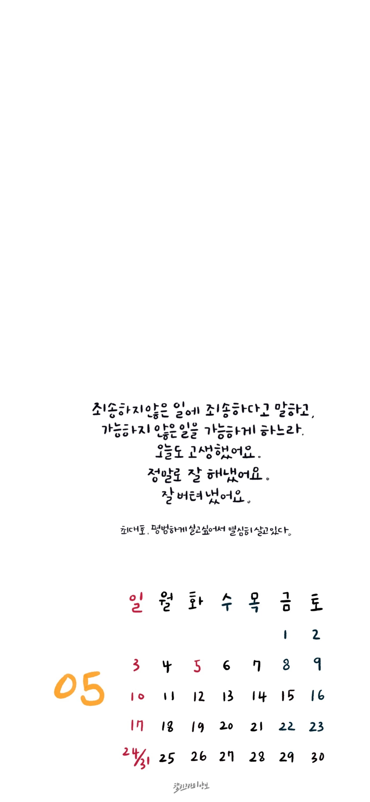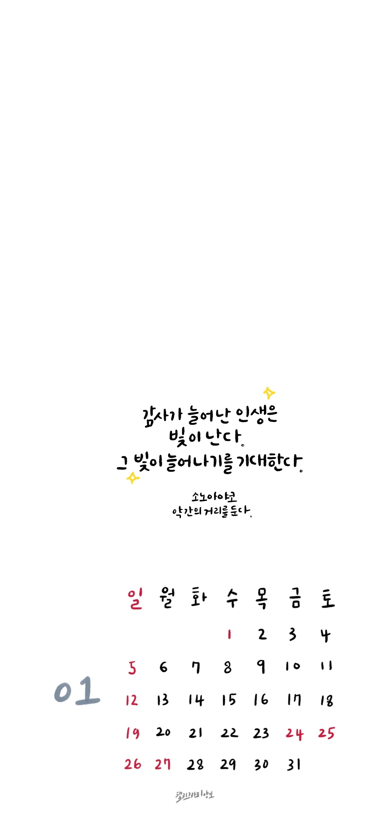 매 년 해오던 달력 만들기의 다른 버전, 배경화면 작업도 두 번째네요.