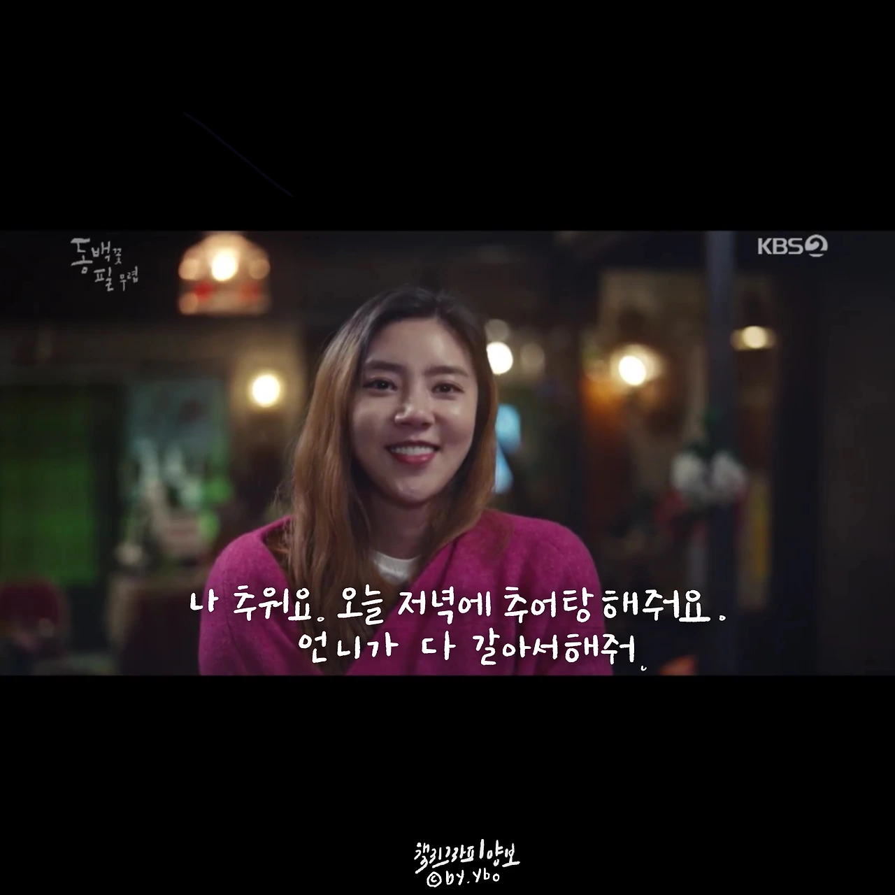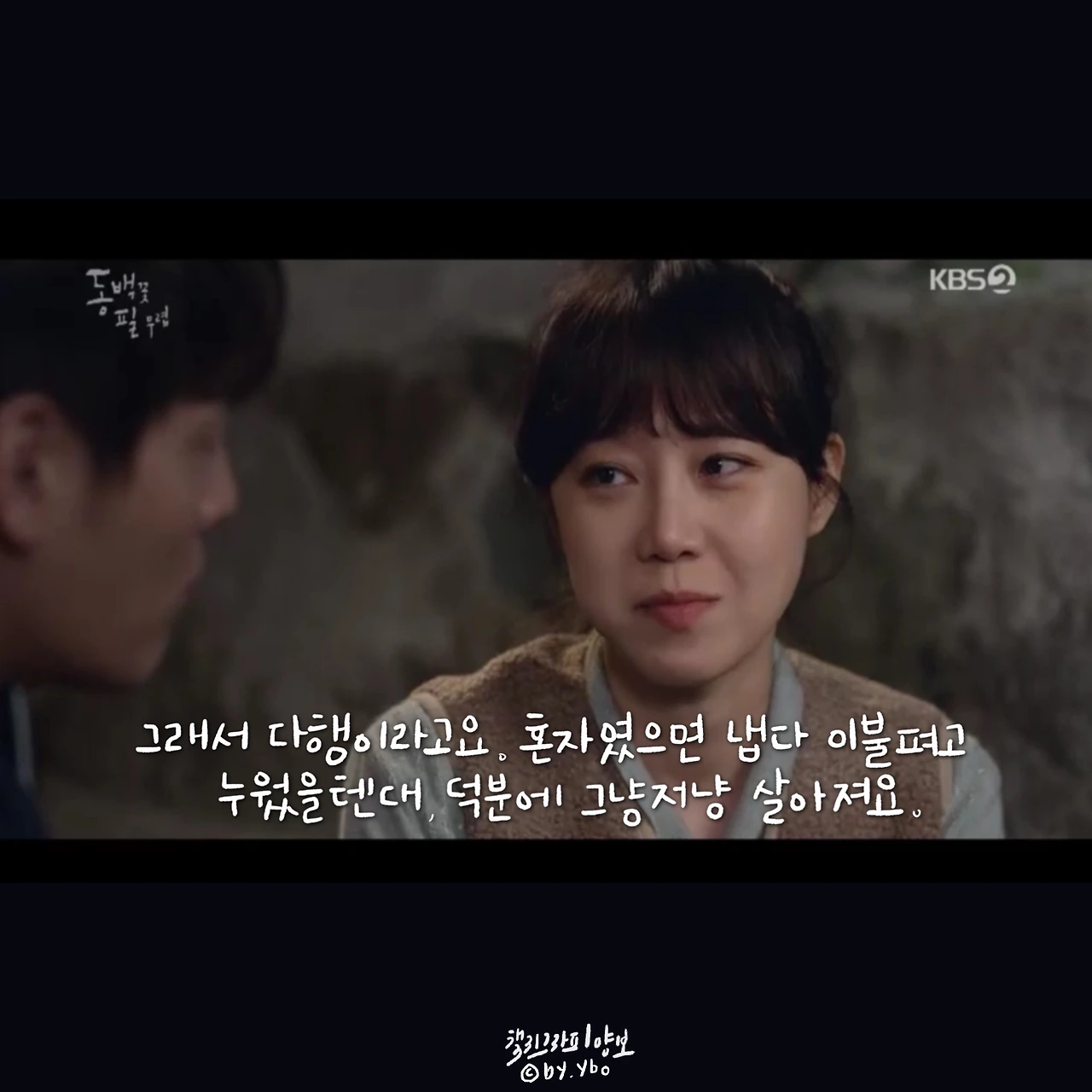 그래도 핑계로 피하기보단, 보조 배터리로 충전받는 게 낫겠다. 어쩜 이렇게 일상을 아름답고 따뜻한 표현으로 길고 하는지. 고단한 동백이 표정에 그래도 웃음이 지어지는 건 어쩔 수 없는 허탈함이 아니라, 정말 괜찮은 얼굴이어서.. 함께 좋았다.