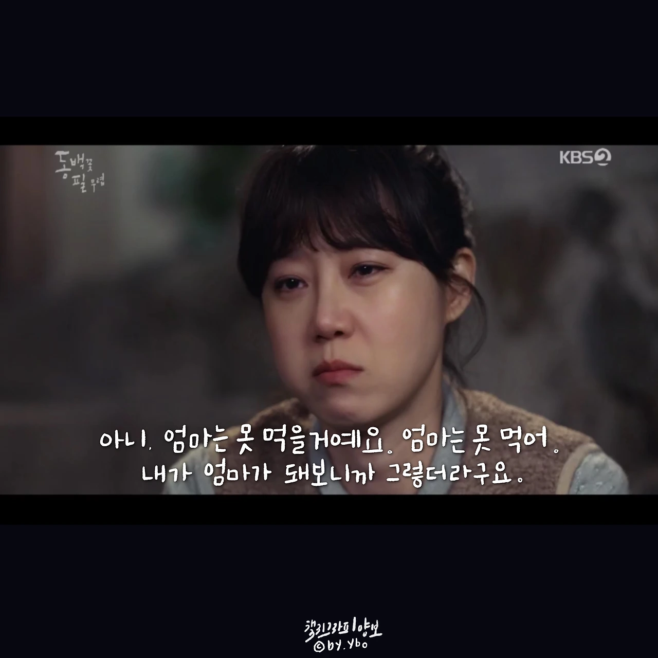 자식을 낳아 기르며 엄마를 이해하 가는 동백이를 본다. 자식은 밥을 먹어도 엄마는 그렇지 않다는 말. 장례식 이야기 앞에 나는 정말 또 한 번 부모 앞에 평생 자식인 모습을 보았다. 살아갈수록 부모님의 사랑은 가름할 수 없이 커져만 간다.