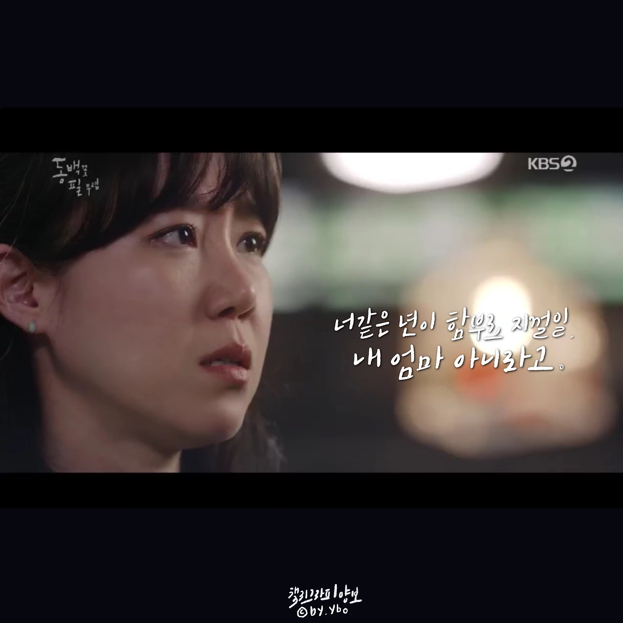 동백이 엄마는 동백이를 버렸다. 결과적으로는. 하지만 그건 동백이가 세끼라도 챙겨 먹었을 수 있길 바란 마음에서였다. 엄마는 자식을 버린 자리를 바라보며 살았고, 그녀 곁을 맴돌았다. 그리고 엄마라는 본능의 촉을 세워 그녀를 지켰다.