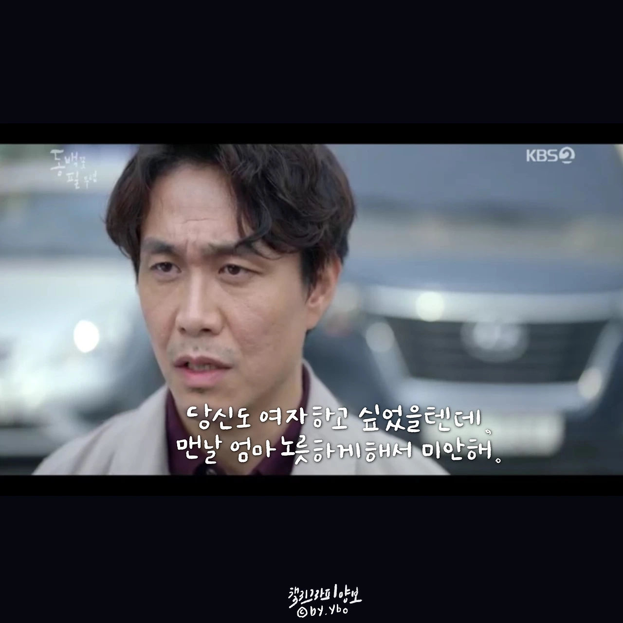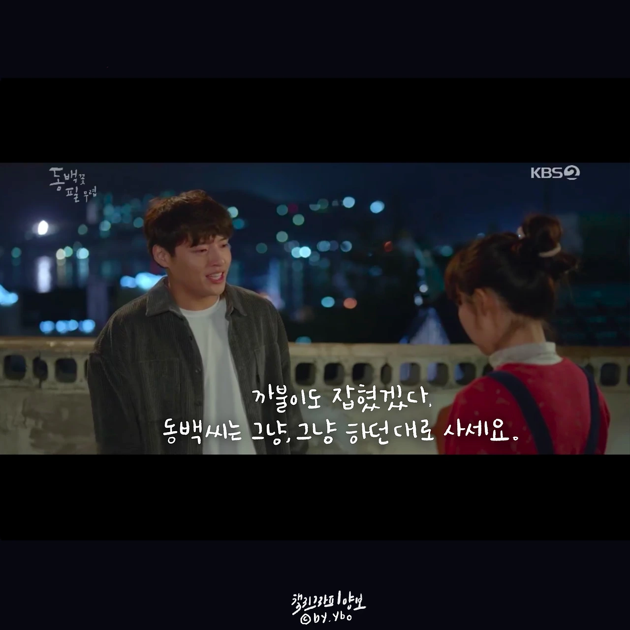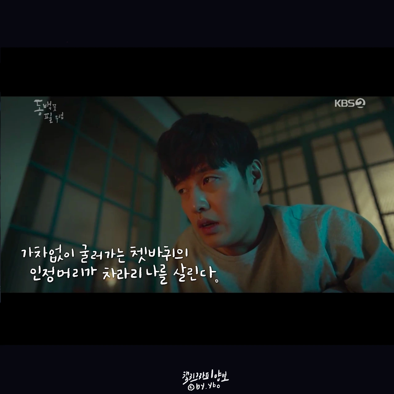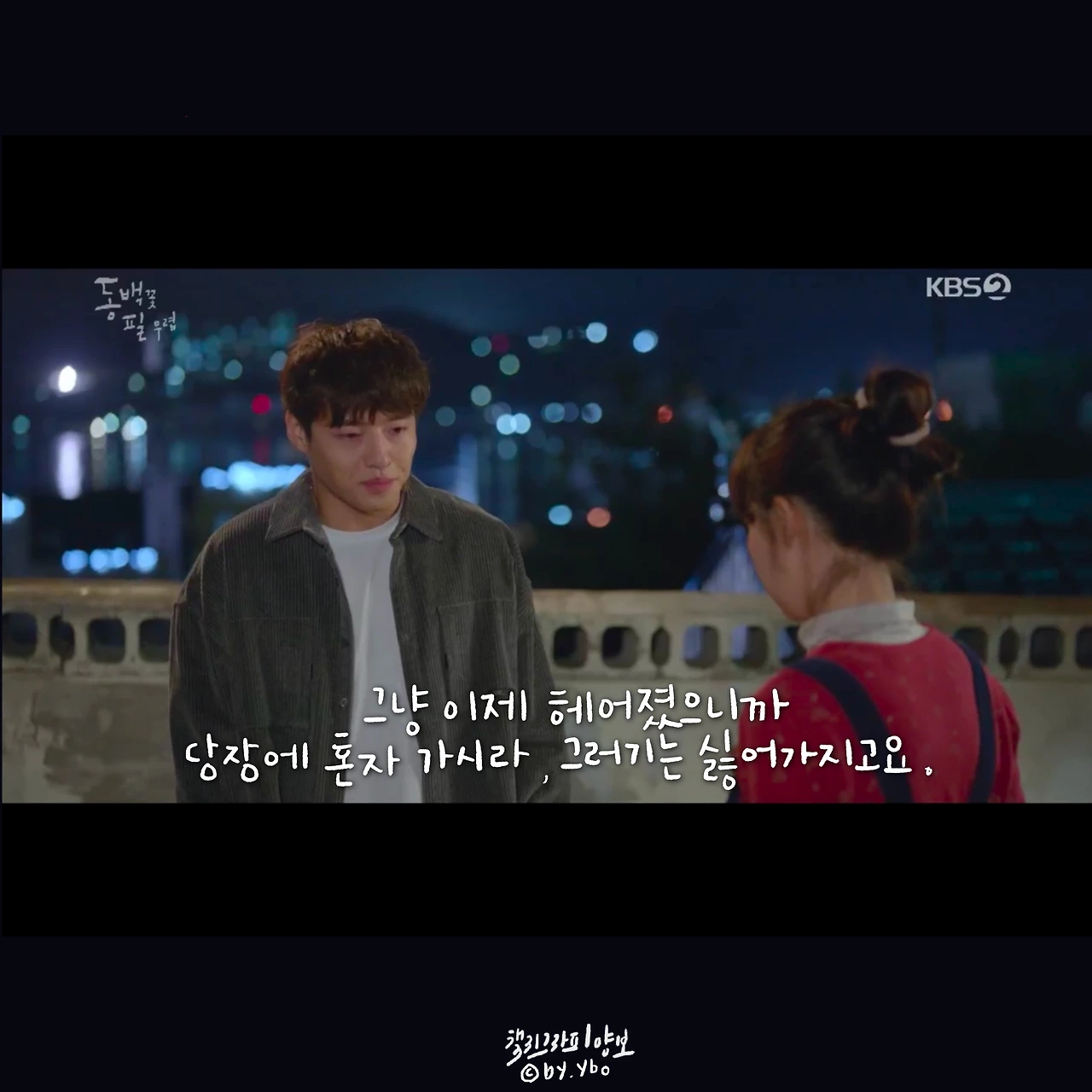 뛰어갔다가 곰방 다시 와가지고, 내가 여전히 당신 편이라고... 헤어지는 마당에 또 힘이 되는 말로 동백이를 살린다. 드라마 시작부터 밀어 치기 당해서 안쓰러웠지만, 우직한 옹산의 곰이 한 여자를 향해 보여준 순애보가 요즘처럼 썸이 난무하는 시대에 귀했고 귀엽고 좋았다.