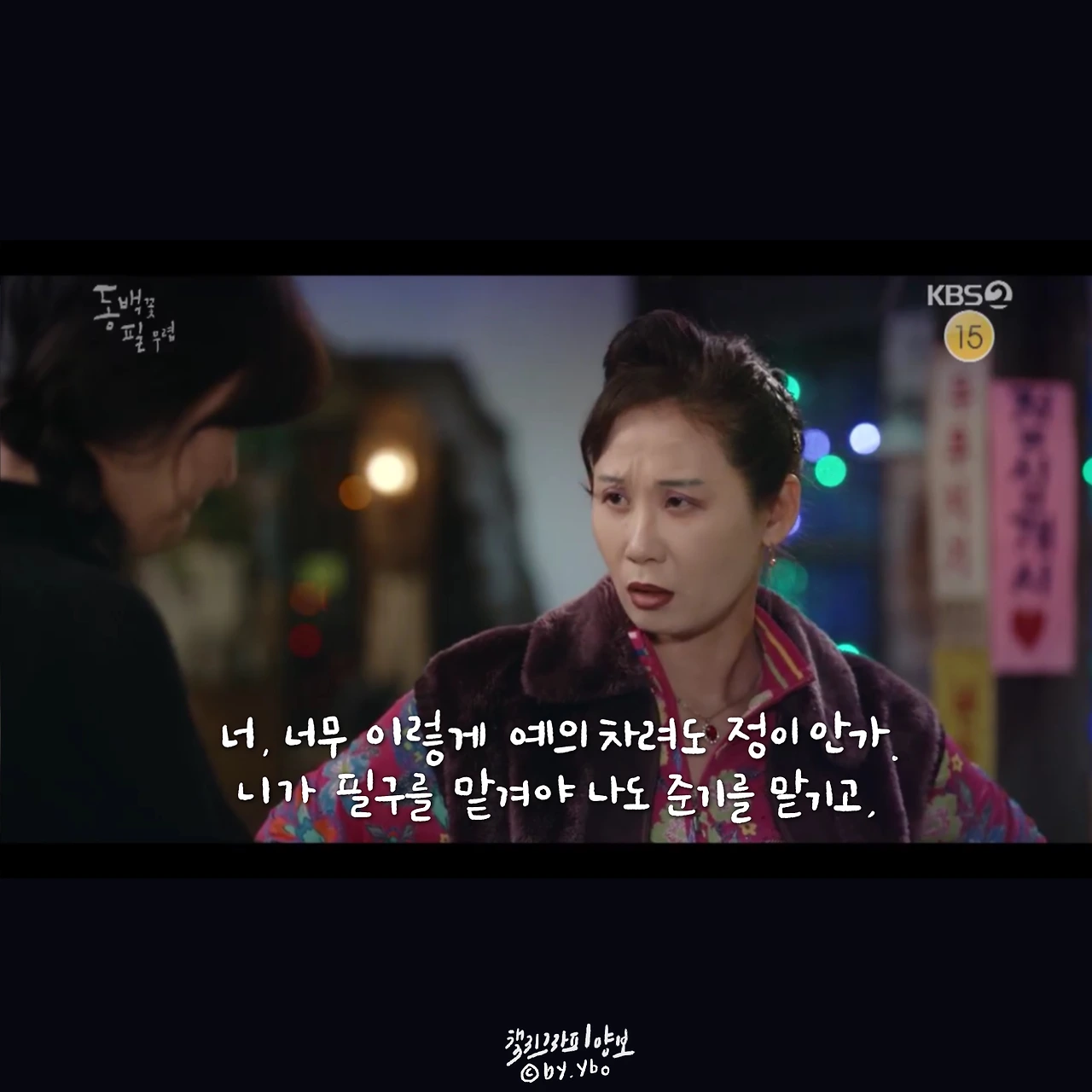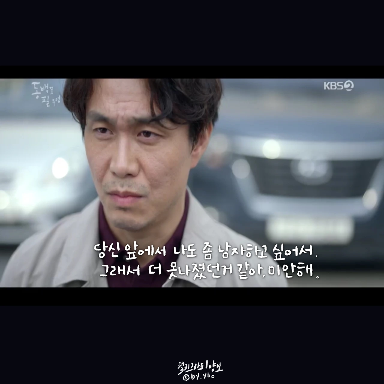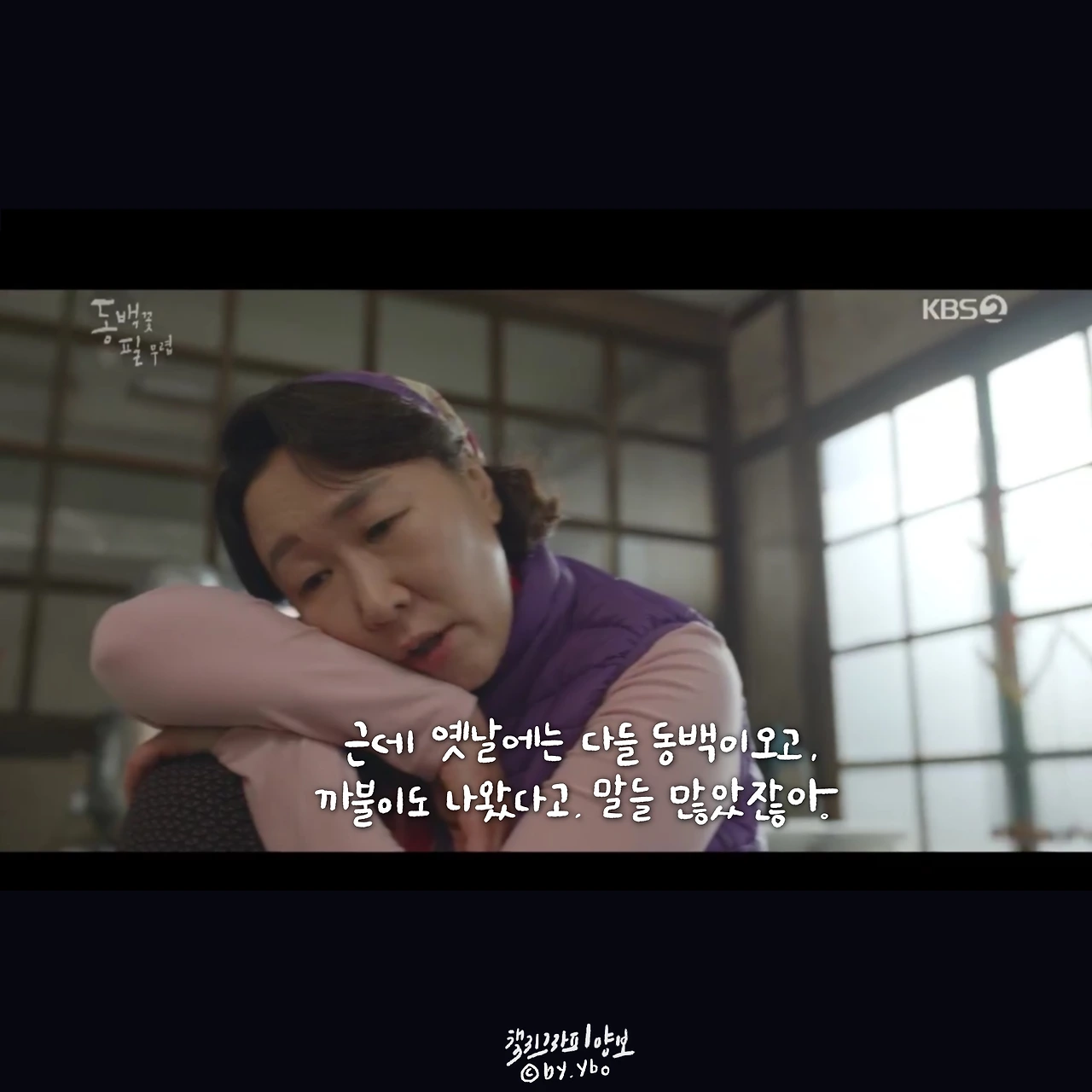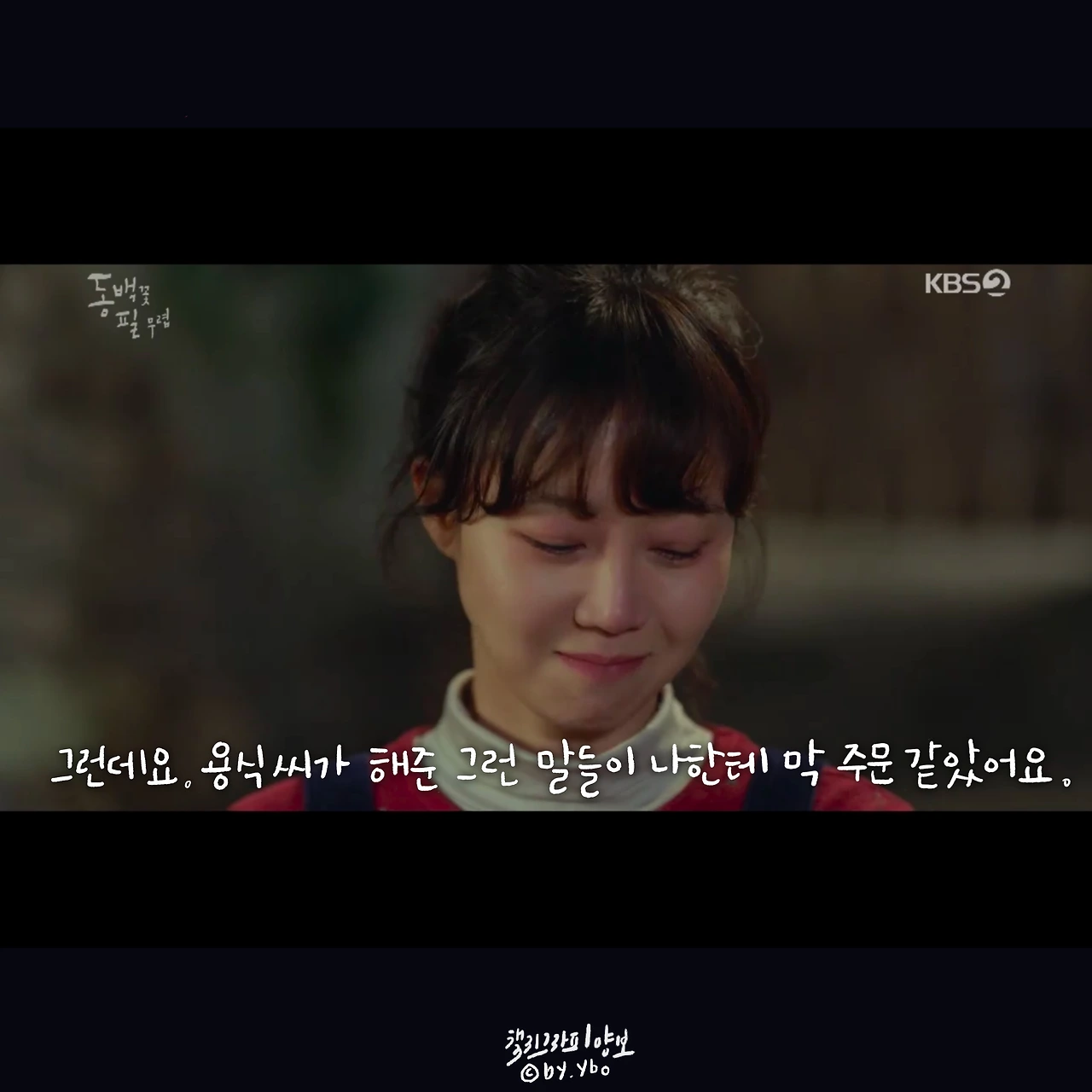 뛰어갔다가 곰방 다시 와가지고, 내가 여전히 당신 편이라고... 헤어지는 마당에 또 힘이 되는 말로 동백이를 살린다. 드라마 시작부터 밀어 치기 당해서 안쓰러웠지만, 우직한 옹산의 곰이 한 여자를 향해 보여준 순애보가 요즘처럼 썸이 난무하는 시대에 귀했고 귀엽고 좋았다.