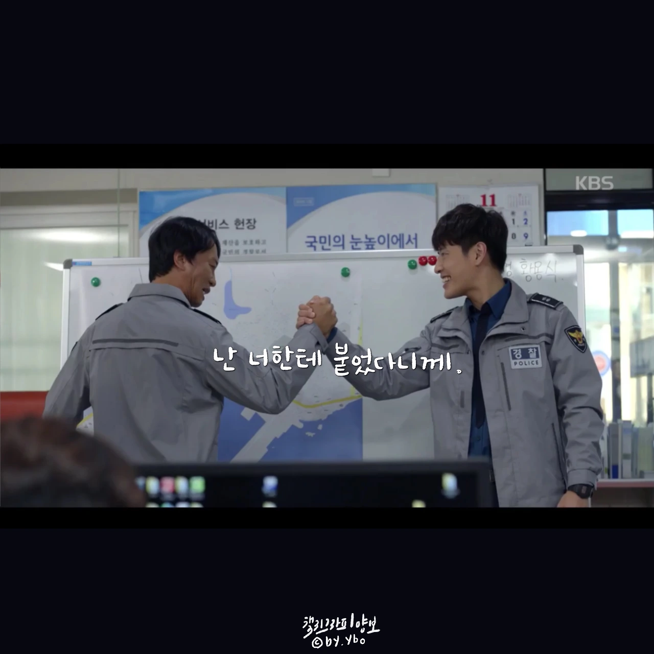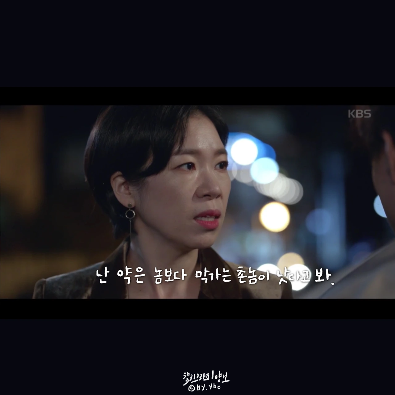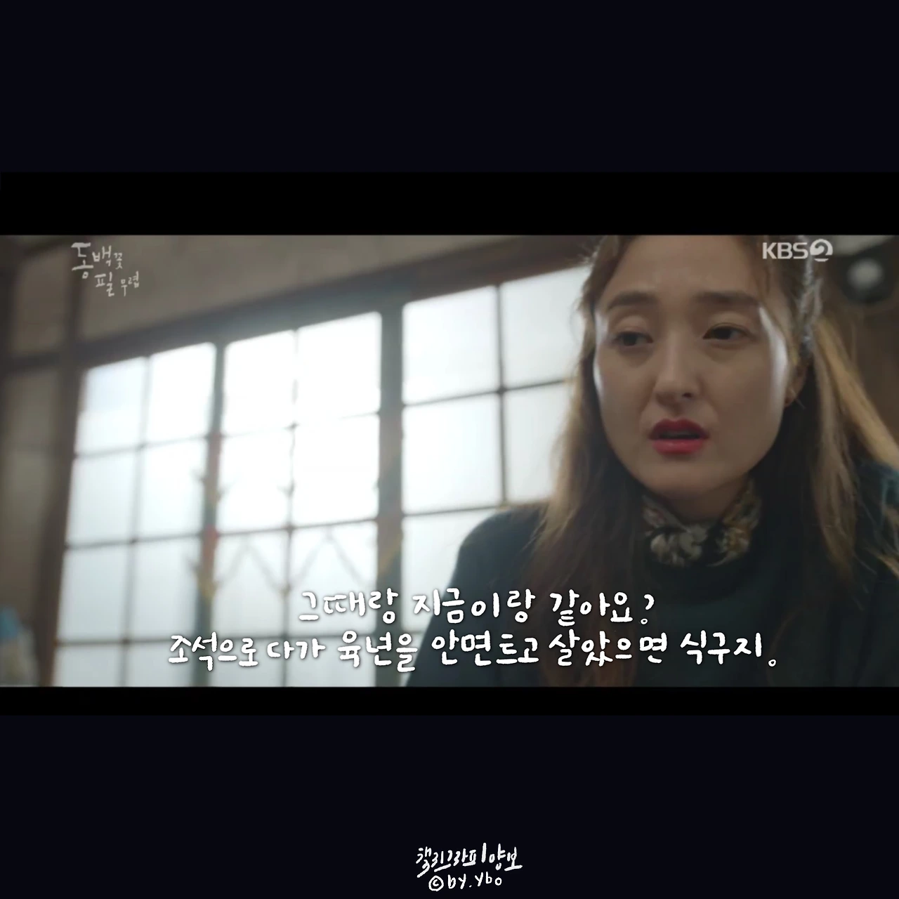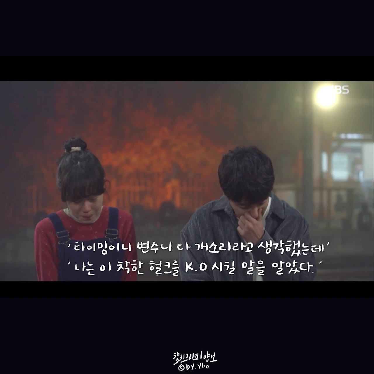 뛰어갔다가 곰방 다시 와가지고, 내가 여전히 당신 편이라고... 헤어지는 마당에 또 힘이 되는 말로 동백이를 살린다. 드라마 시작부터 밀어 치기 당해서 안쓰러웠지만, 우직한 옹산의 곰이 한 여자를 향해 보여준 순애보가 요즘처럼 썸이 난무하는 시대에 귀했고 귀엽고 좋았다.