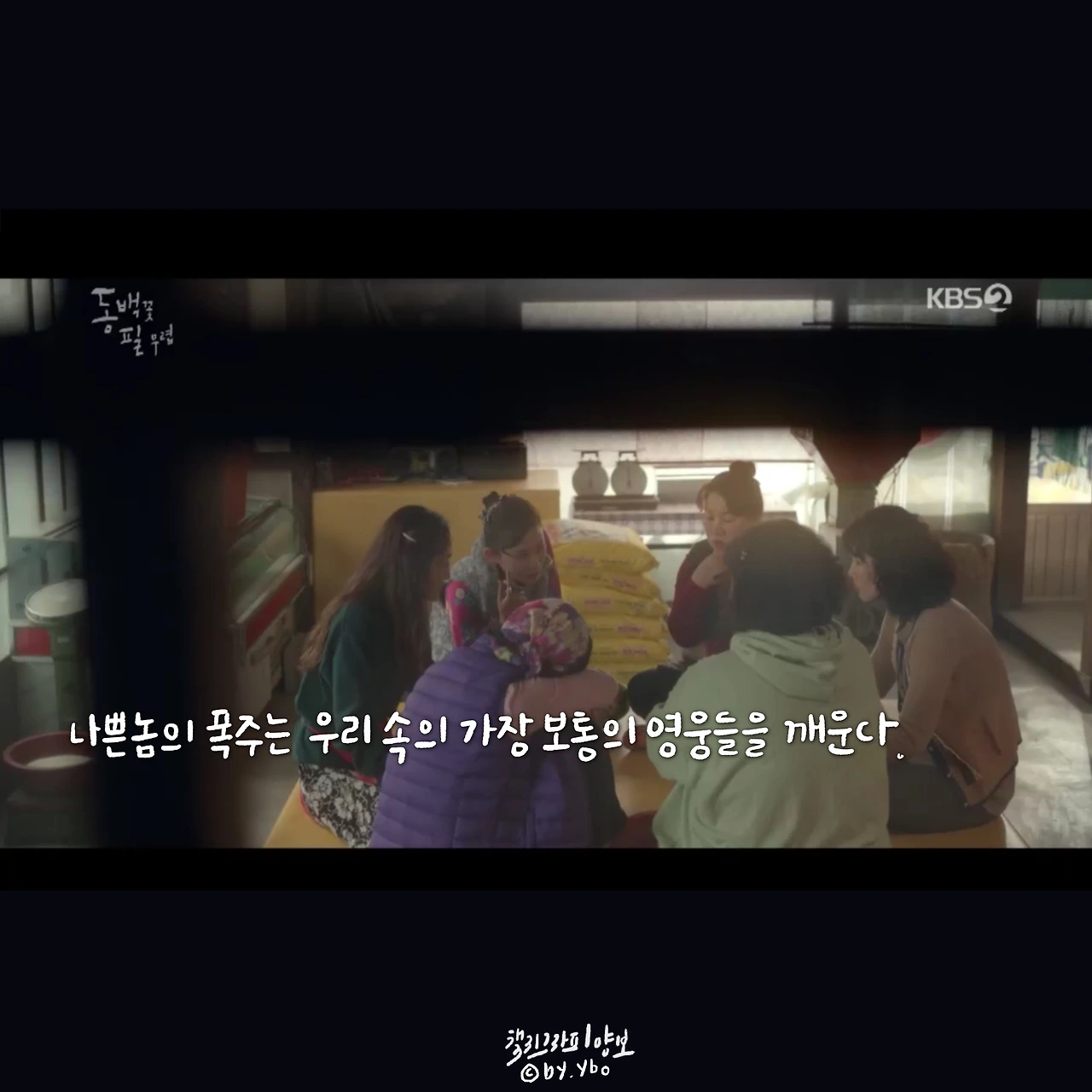 동백이에 대한 오해도, 편견도 6년의 시간 동안 풀렸다. 고집을 이어가면 아집이 되는데, 울 언니들은 그렇지 않았다. 지난날을 미안해하며 마음을 고쳐 먹고, 힘을 모았다. 역시 걸크러쉬. 내 동생 감히 누가 건드리냐! 디졌으. 무심한 듯, 다정한 건 옹산 특유의 매력인가 보다.