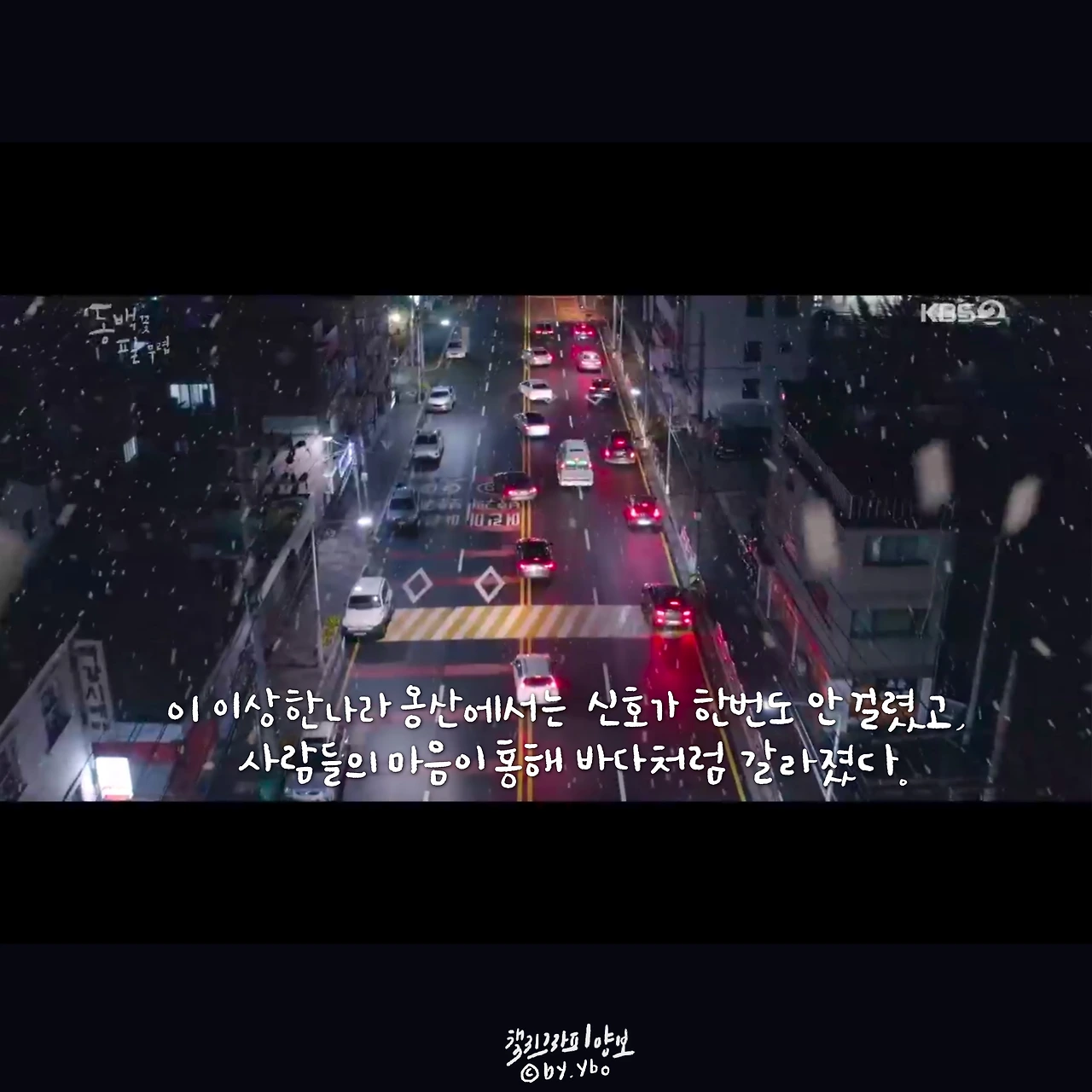 한 없이 정스럽고 오지랖이 가득한 이 이상한 나라 옹산에선 기적을 하늘에만 맡겨두지 않았다. 하늘은 스스로 돕는 자를 돕는다고 하지 않던가, 서로를 항한 마음이 길을 만들었고, 생을 포기하지 않은 간절함이 기적을 만들었다.