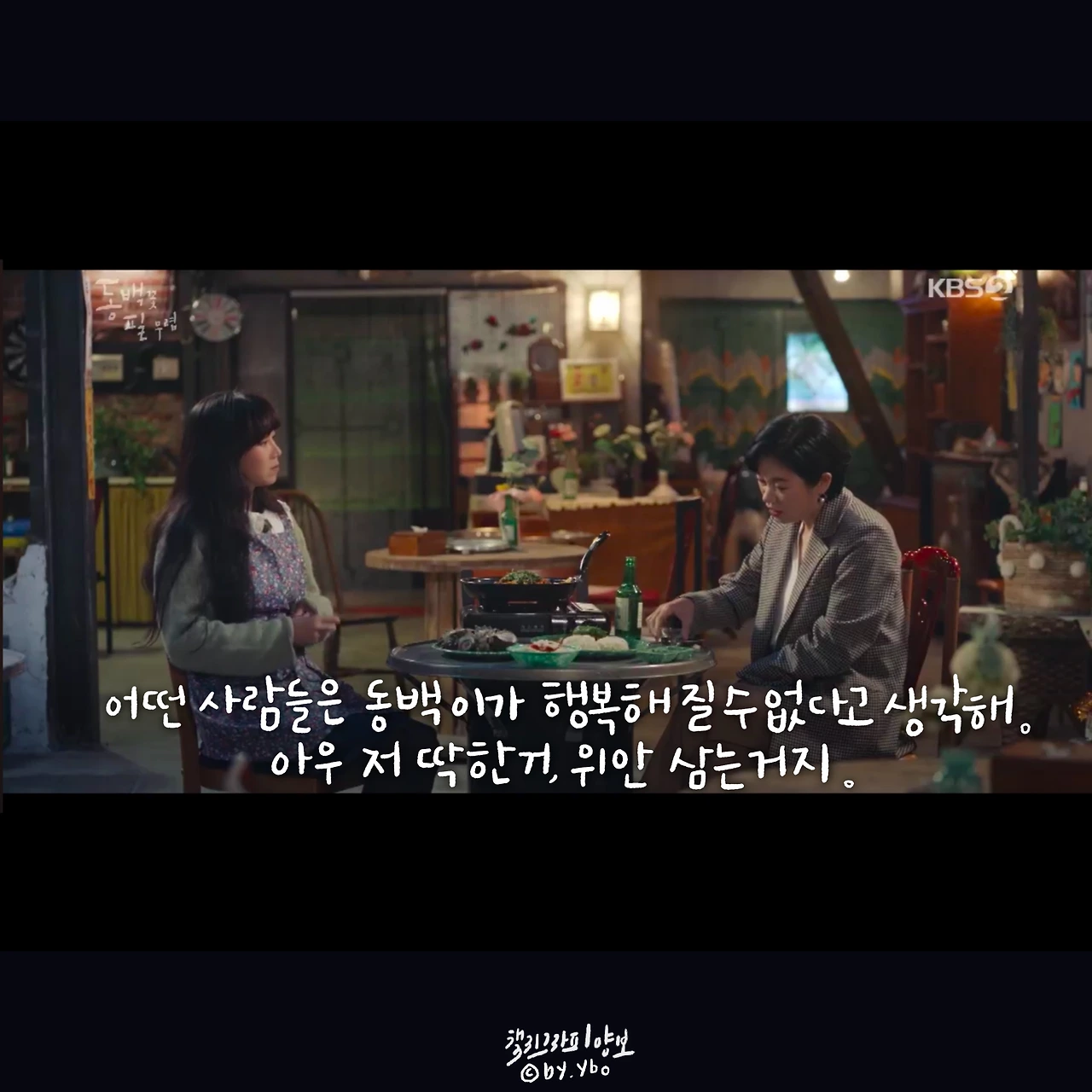 남들이 보기엔 아무것도 없는 동백이었지만, 34년간 동백이는 건강한 자존감이 있었고 자신만의 행복을 세워나갔다. 자영 언니는 드디어 그렇게 먹고 싶던 동백이 두루치기를 먹었다. 앞으로 종종 베프가 되어 술잔을 기울이겠지. 마음을 털어놓을 친구가 하나 늘었다는 건 연봉이 오른 것보다 더 큰 행복이다. 자영 언니 삶에도 그렇게 행복이 늘어간다.