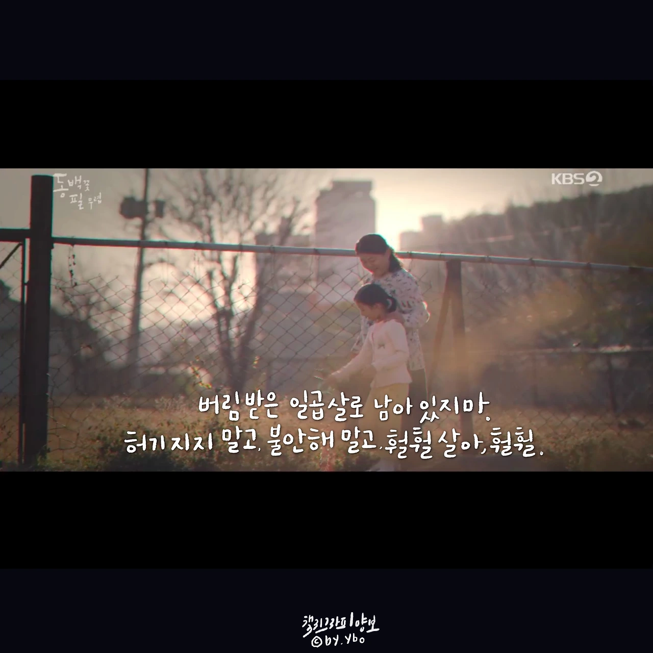 허니 동백이 지치는 삶 가운데서도 웃을 수 있던 건 어머니가 그녀를 통해 웃어 보인 까닭이고, 동백이가 엄마 당신을 품었다는 건 엄마가 힘든 상황 속에서도 딸을 품었던 그 칠 년의 시간 때문이라고 생각한다.