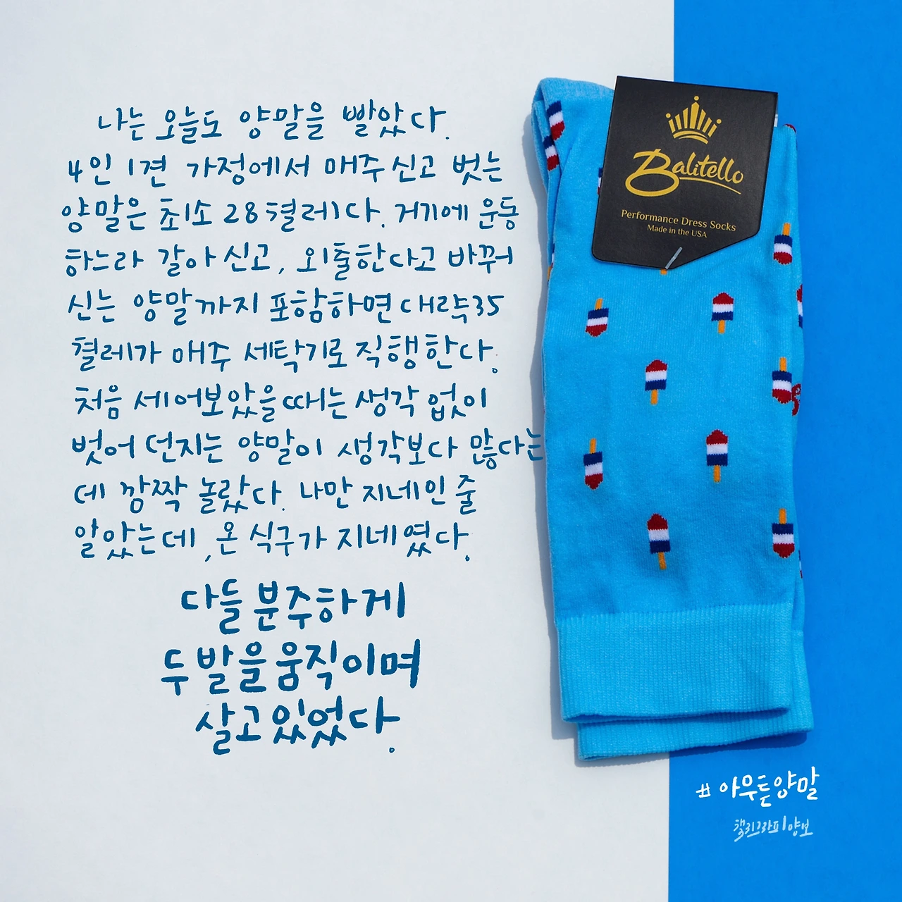 아무튼, 양말이라니. 촌스런 이불 끝에서 꼼지락 거리고 있는 수면양말이 보였다. 양말은 신으면 답답하다. 하지만 수족 냉증人에게 양말은 체온을 유지시켜 주는 필수 생존 아이템이다. 그래서 여름이 오면 맨발로 다닌다. 겨울에는 검정 양말만 고집한다.(스티븐 잡스도 검정 양말만 신느다고 한다. :) 이렇다 보니 양말 쇼핑만으로 십만 원 이상을 결제하고, 명품 양말에 대한 호기심이 구입까지 이어지는 작가와 안 맞을 거란 생각이 들었다. 하지만 한 쳅터가 끝났을 때 이미 작가에게 빠져 있었다.