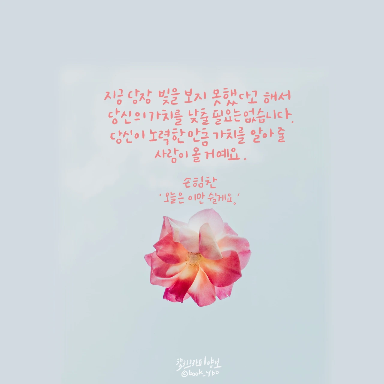 설사 중요하지 않은 일인 것 같고, 다른 이가 하는 일이 더 반짝이고 멋져 보여도 당신에게 주어진 일이라 소중하다. 이를 하는 당신이 이미 소중한 존재이기 때문이다.