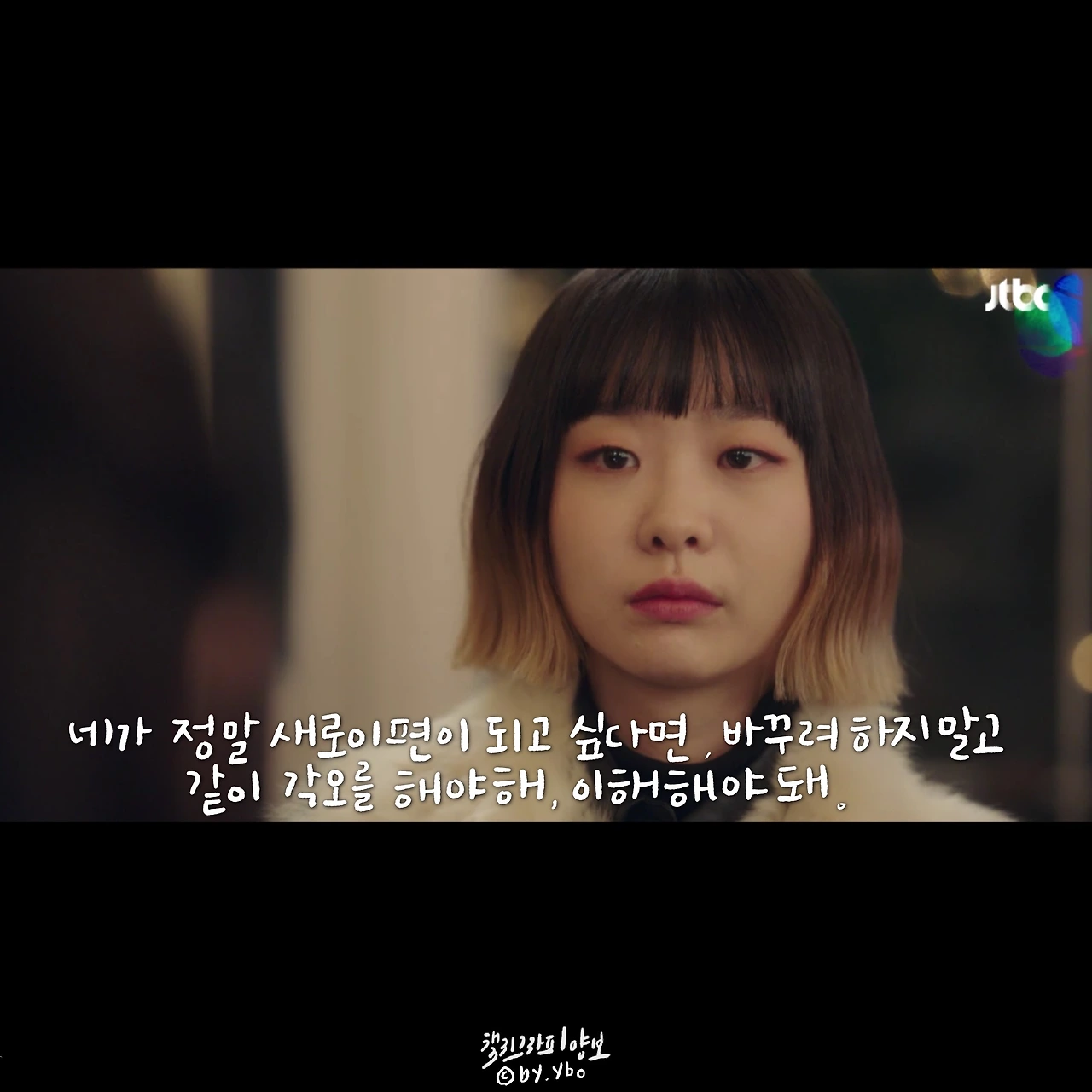 이상주의자, 허무맹랑한 소리라고 비웃지만 그럼에도 흔들리지 않는다. 그 말도 누가 하느냐에 따라 무게가 달라지는 것이었다. 새로이는 사랑하는 수아가 반대 편에서도 괜찮다고 끄떡없다고 한다. 오히려 그녀가 내린 선택을 격려해주기 까지 한다. 속 없는 바보인가? 아니, 상대의 어떠함으로써 자신을 정의하지 않은 자의 단단함이다.