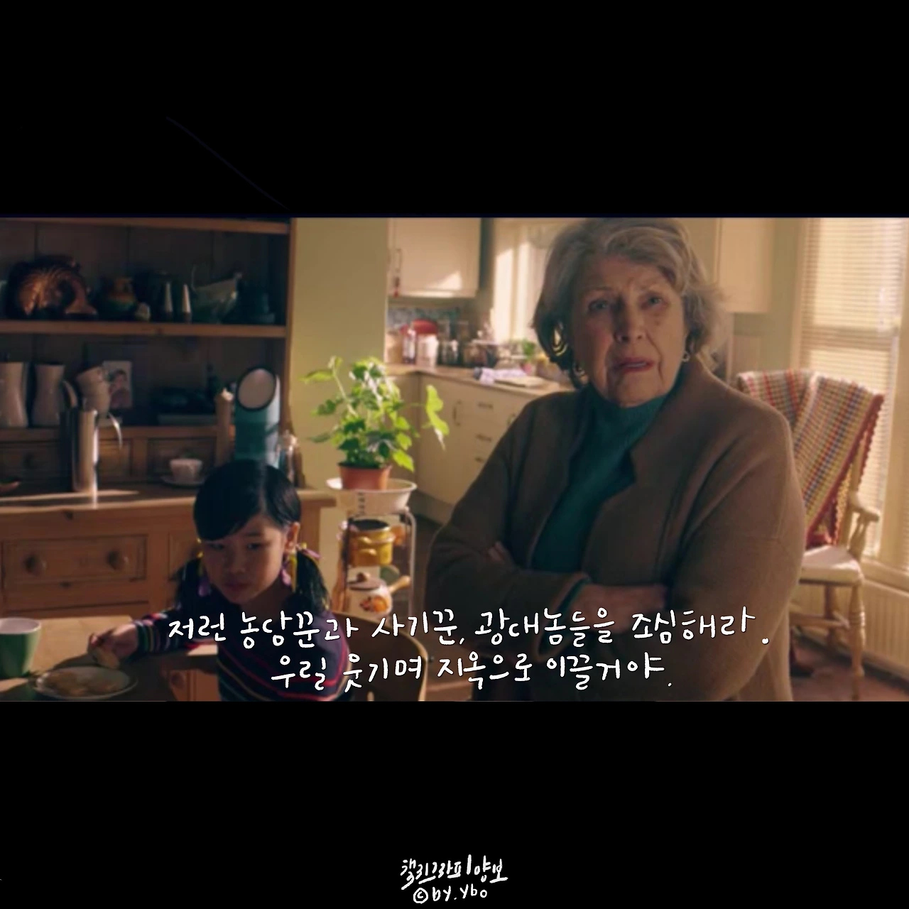 그 어느 때보다 사회가 발전되었다고 하나, 기침은 하는지 열은 없는지 전염병 증상을 확인하며 사람을 만나야 하는, 사람이 사람답게 살지 못하는 처지에 놓인다. SF 드라마라면서 현실로 와 닿는 이야기에 소름이 끼쳤다. 그러했기에 할머니의 꾸지람에서 그녀의 손자, 손녀들처럼 나도 무거운 책임감을 느꼈다.