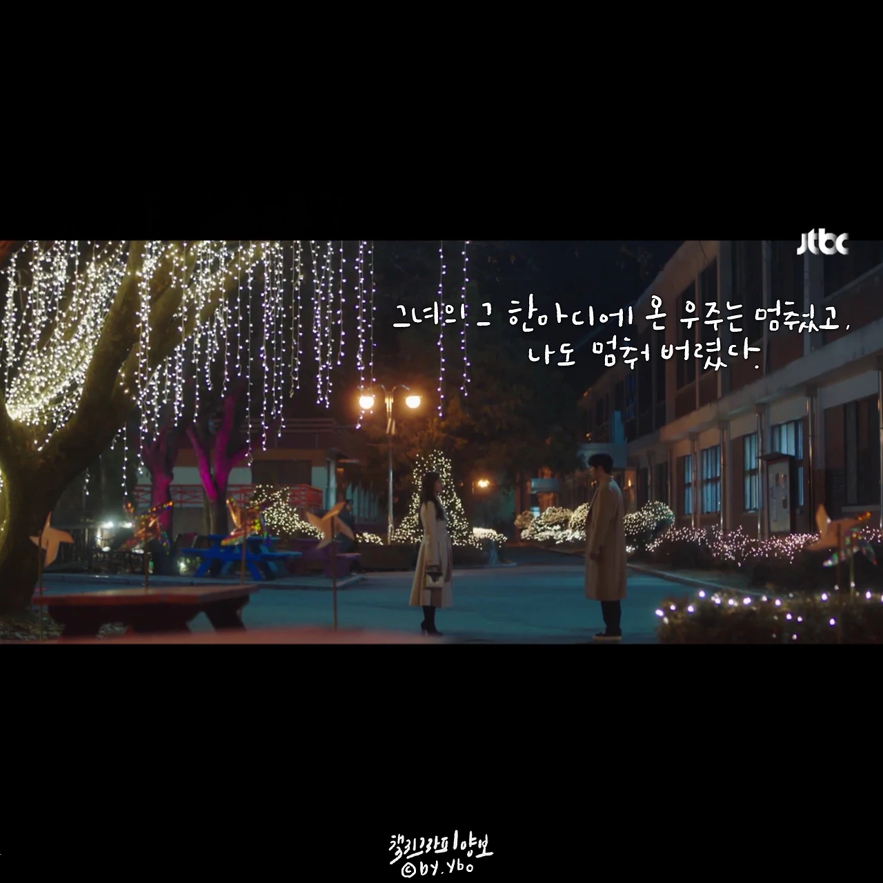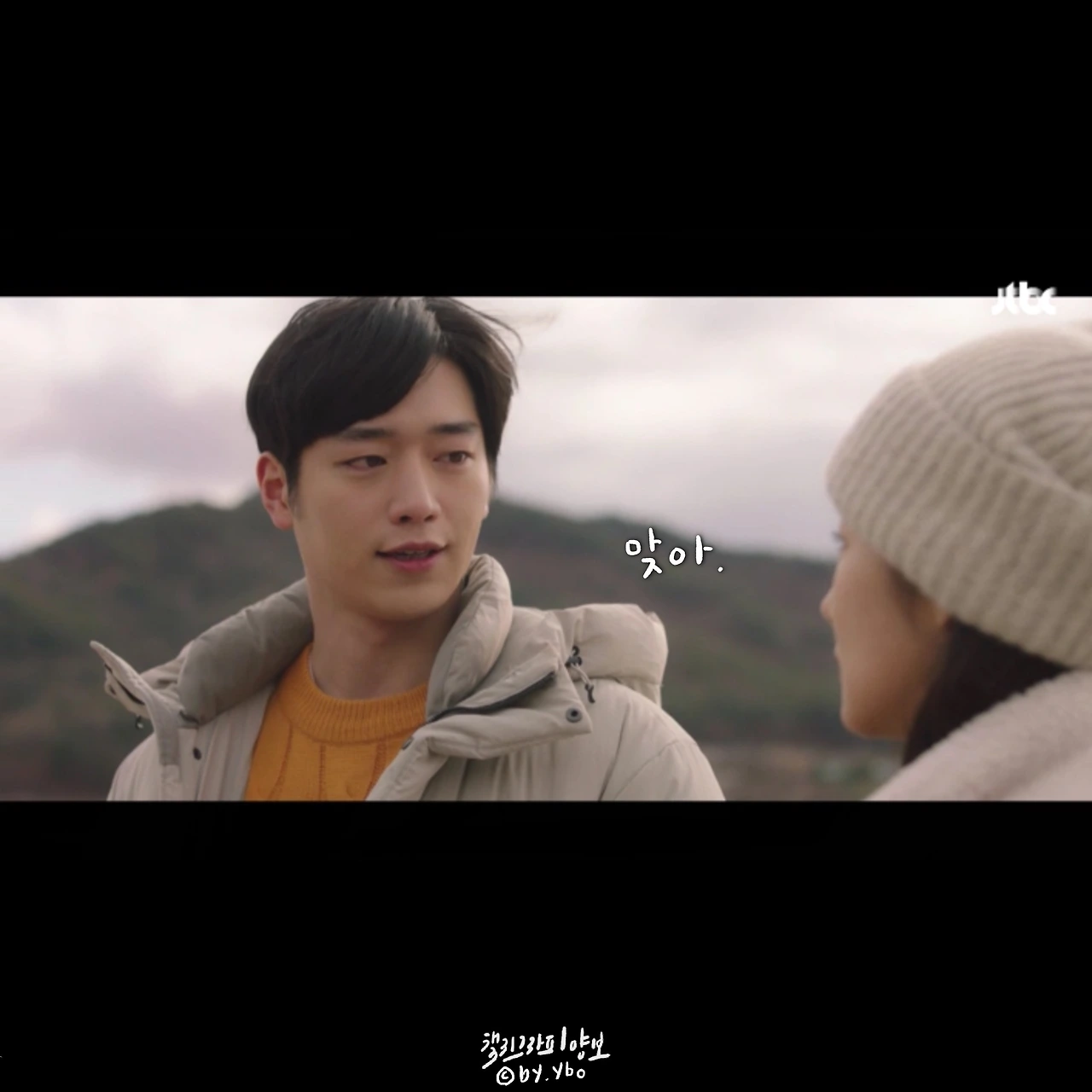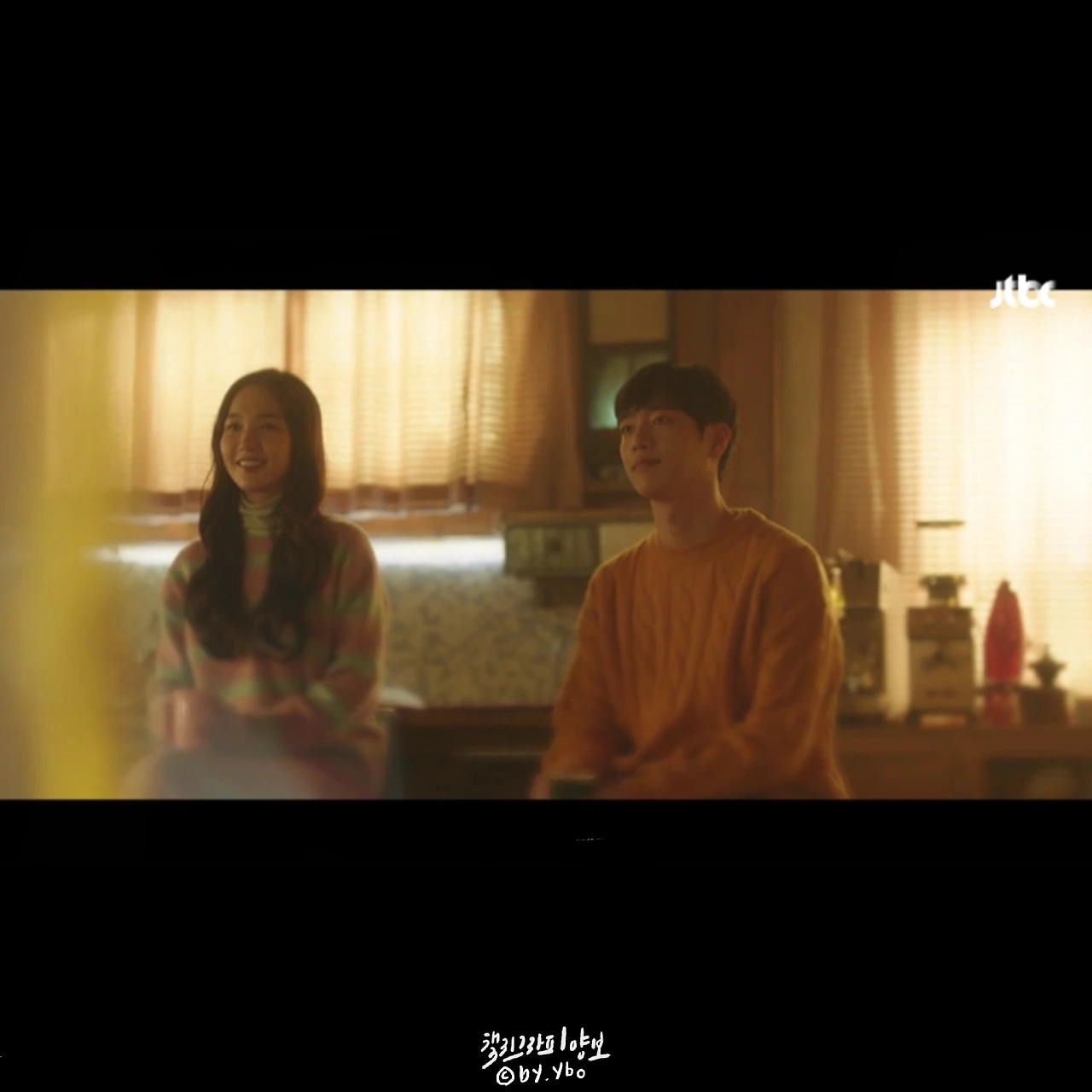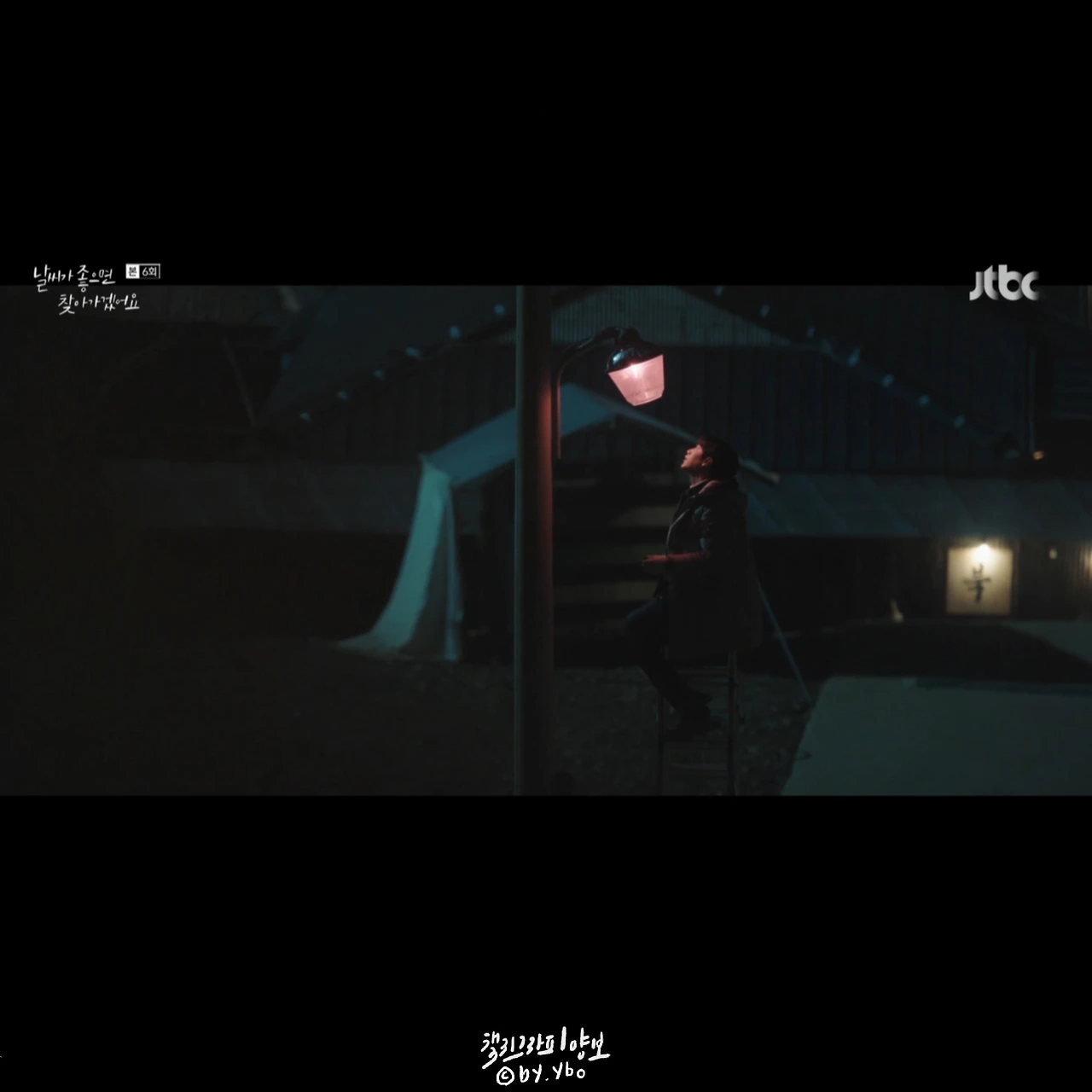 은섭의 수줍고 따뜻한 마음이 드러나는 이 장면은 1화에서도 나온다. 그때 해원은 퉁명스러웠는데, 지금은 발 끝에 비치는 불 빛만 보고도 은섭이 있음을 깨닫고 미소를 띤다..