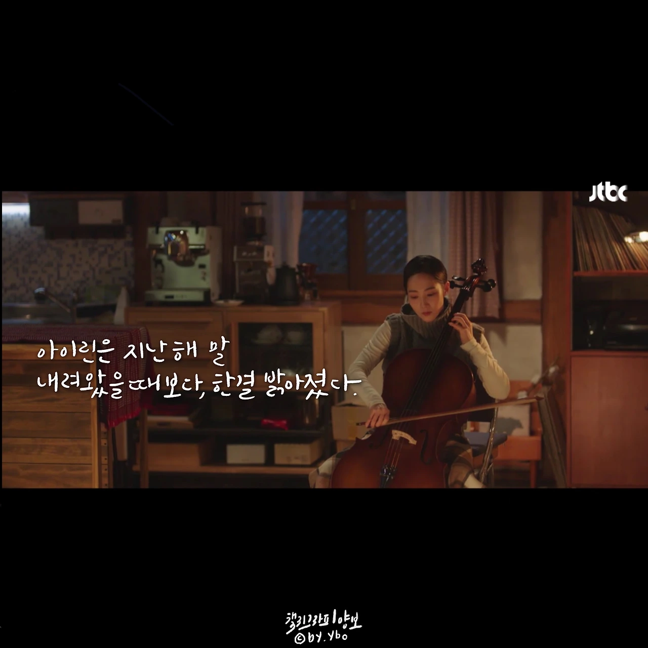 머리에는 까치집이 생겼고, 첼로 연주에 맞는 커피 향이 나고