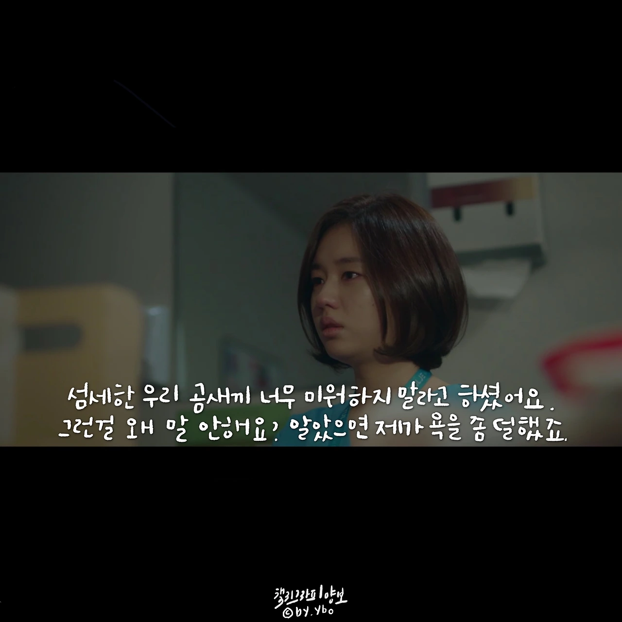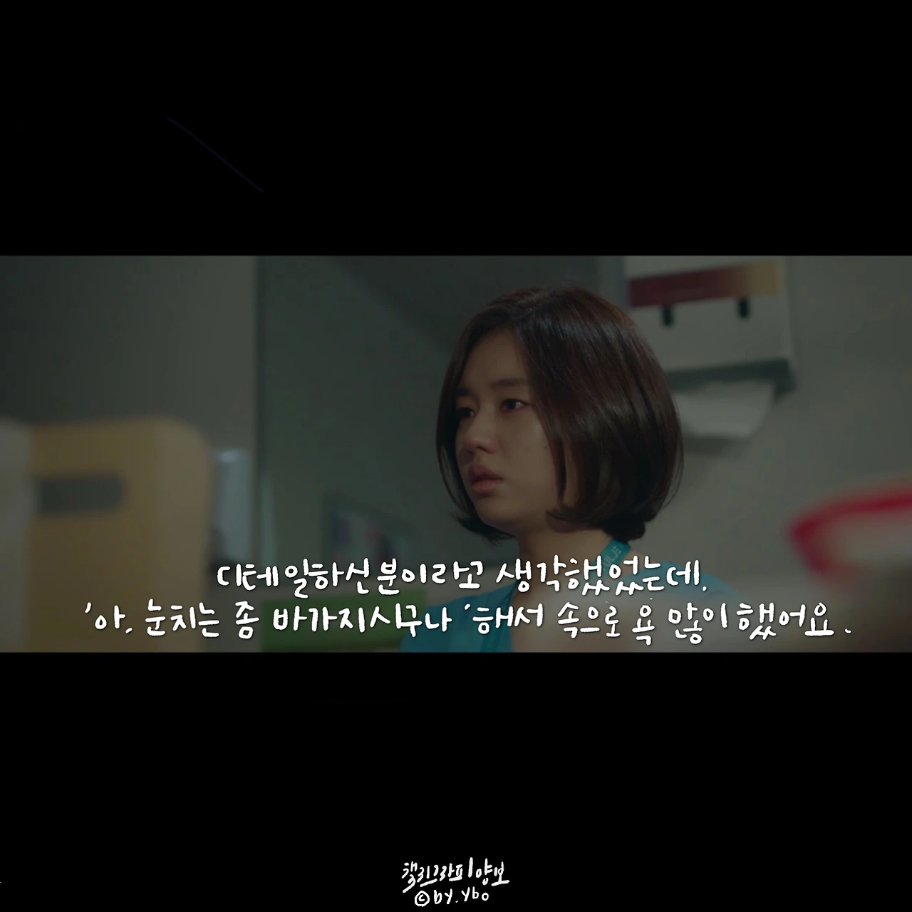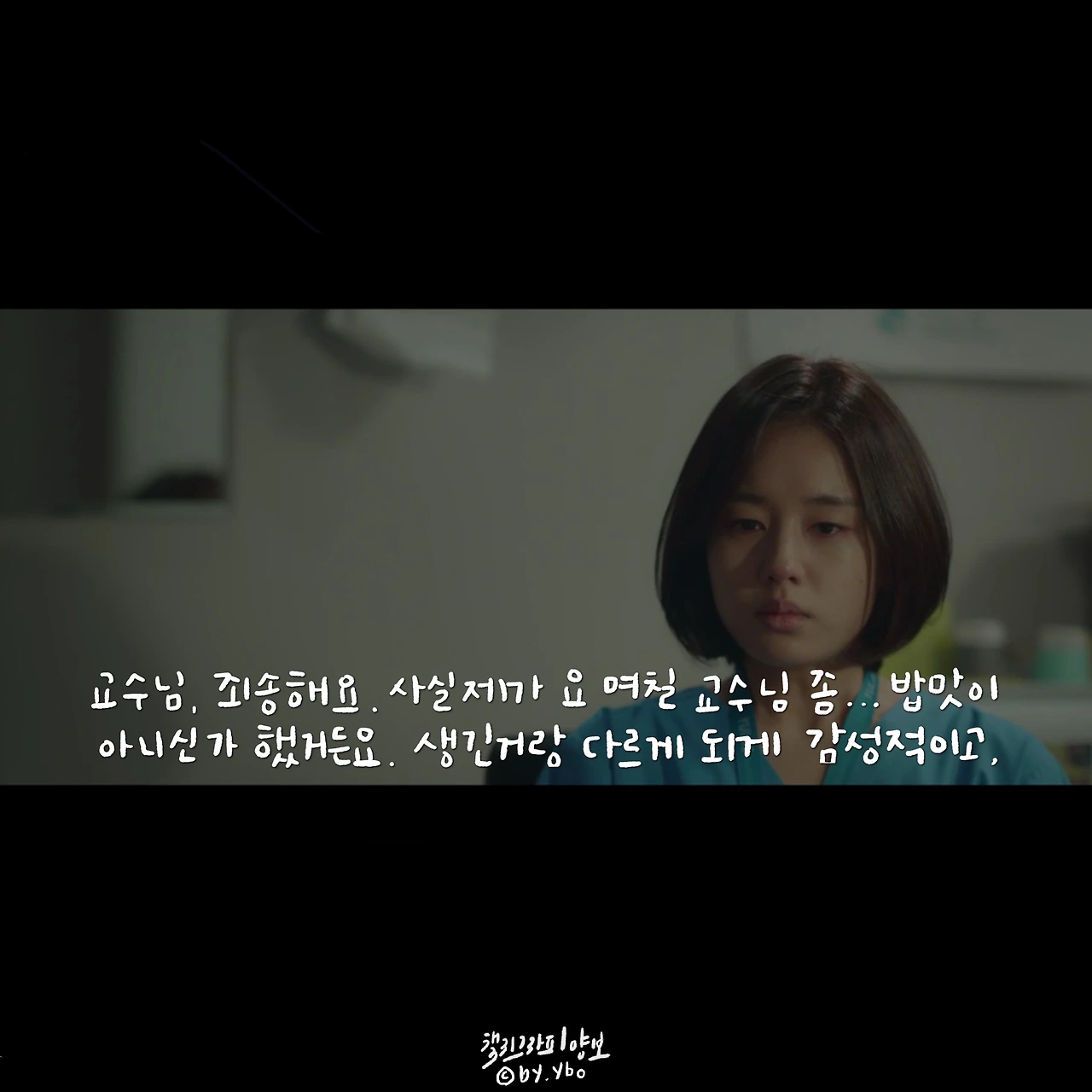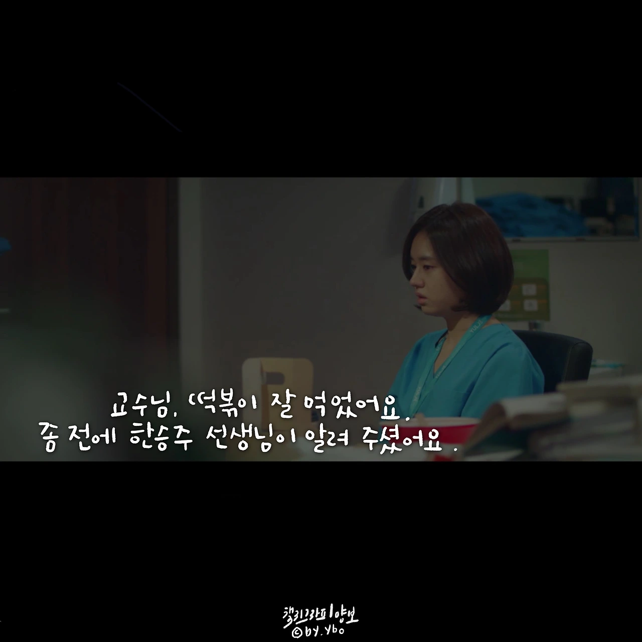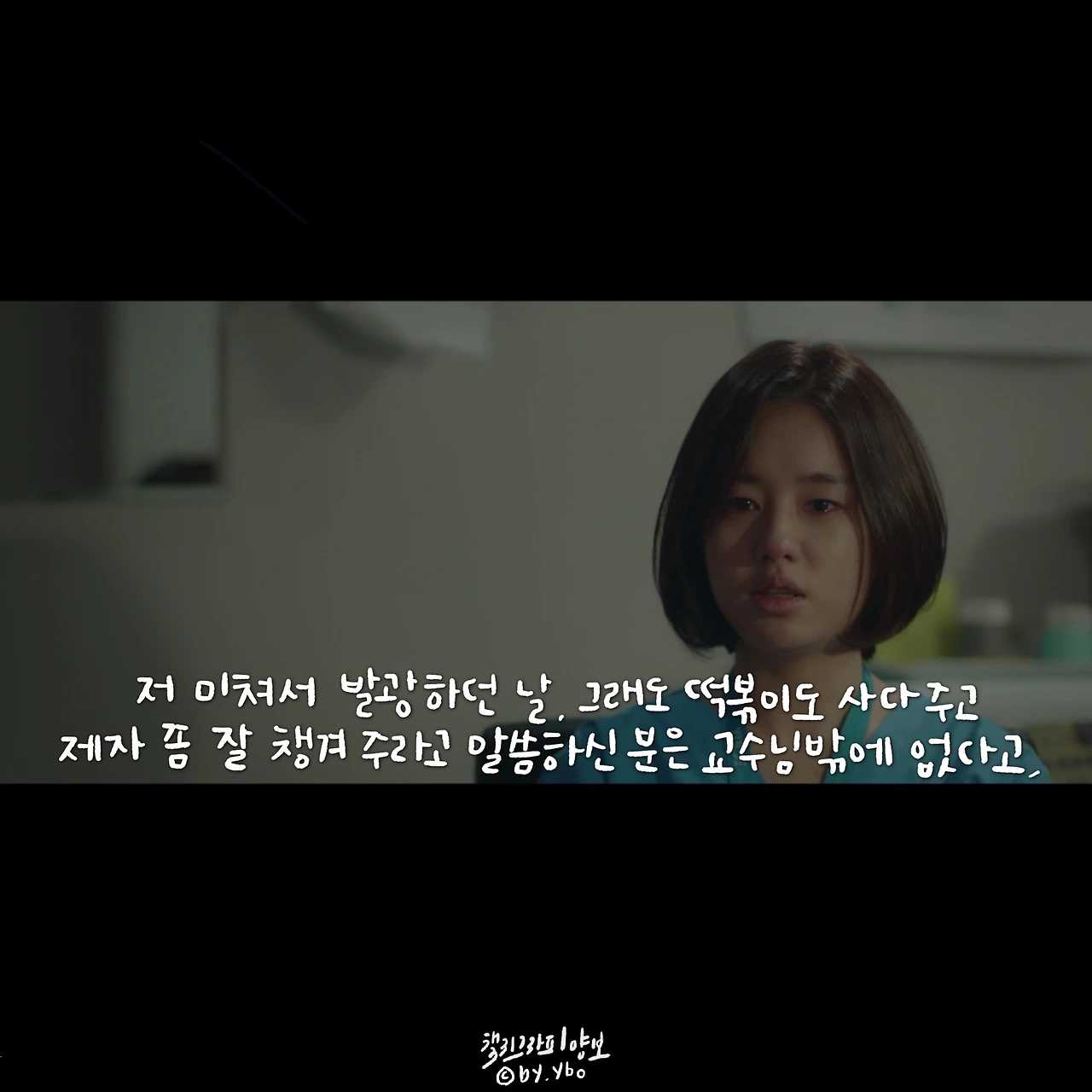 책임감이라고 생각하면 묵직하고 거대한 무엇을 떠올리게 한다. 하지만 곱씹어 보면 그리 크지 않은 무엇일지 모른다. 피하고 싶은 상황에서 도망치지 않고 그 자리를 지키는 것, 이것이 내가 생각하는 책임감의 한 모습이다. 민하는 어려운 환자를 피하지 않았고, 두려운 순간에도 도망치지 않았다. 무엇을, 특별히 하지 못 했지만 그 자리에 서서 지침, 두려움 등 모든 감정들을 감당했다. 의사들 사이에 똑똑하고 머리 좋은 사람이 얼마나 많을까. 이런 환경에서 다름을 나타내는 한 수는 바로 기본에 관한 것일지 모른다. 익숙한 성실함이나 당연하게 생각하며 지켜온 정직함이나 때론 버겁고 특별히 의미 없어 보이는 책임감이 오랫동안 수호되어지고 존중 받아온 이유인지도. 이를 알아주는 고운 눈을 가진 석형 샘의 따뜻한 격려에 함께 위로 받은 장면 속 대사. ...그나저나 너무 바뻐 화장 할 시간도 없었는데, 그 덕에 8화 중 오늘이 젤 예쁘다 상한 마음을 악하게 토해내지 않고 수를 쓰지도 않은 저 곰팅이. 예쁘다 민하샘