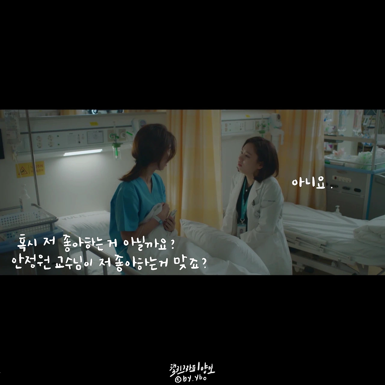 아... 민하 샘 화장이 왜 이런가 했는데 소신 있는 패션이었구나. 민하 샘 말에 기죽는 거 없이 우정을 논하는 겨울 샘. 두 분 다 철학 있는 부모님 밑에서 자랐어 �하나도 안 어울리는 것 같은데 또 죽이 잘 맞아. #케미좋음 슬의생 속 또 다른 우정 케미
