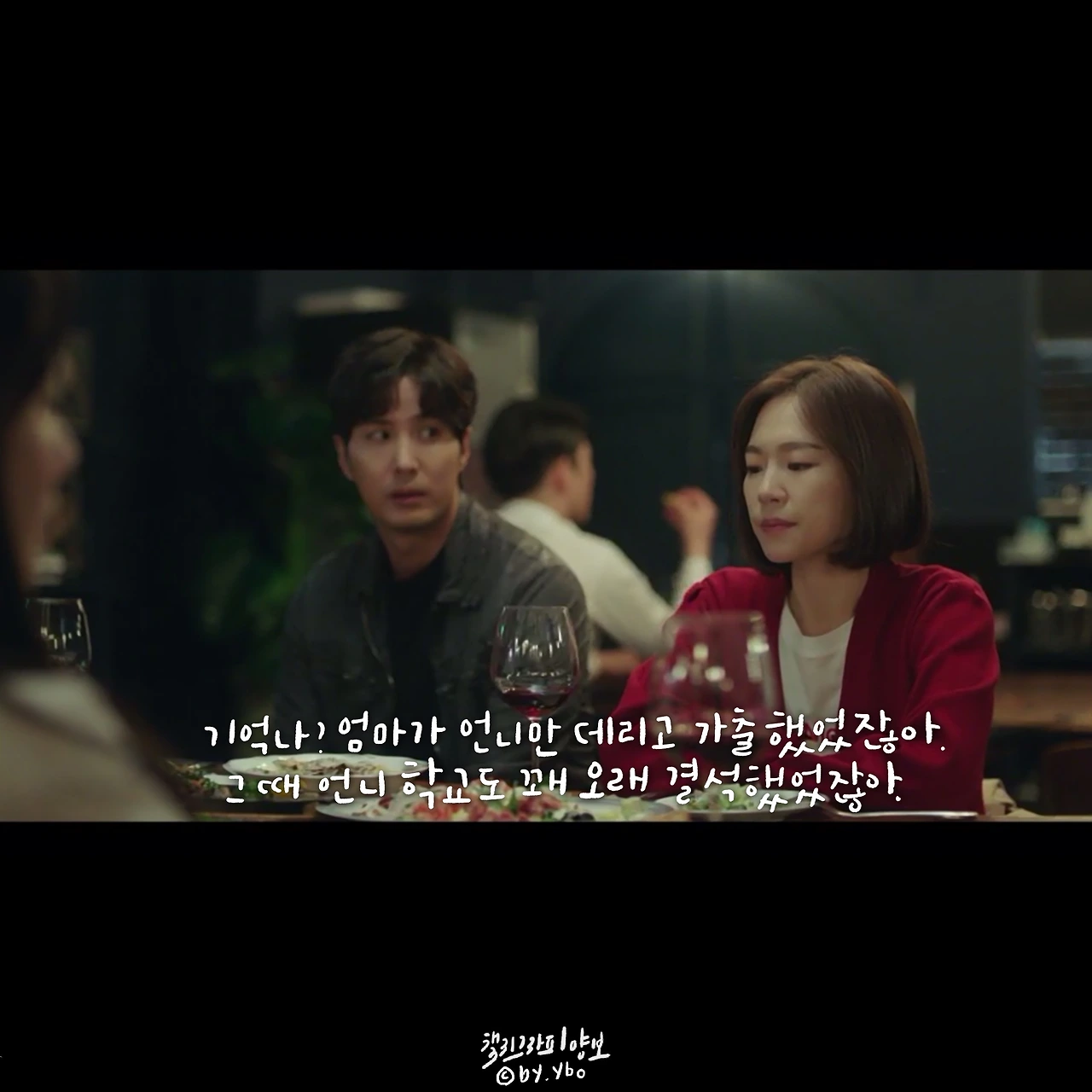 같은 일도 서로 다른 기억으로 남는다. 그래서 나는 잊은 혹은 별생각 없는 과거 어느 순간을 상처로 갖고 있는 가족을 보면, 가족이지만 낯설다. 그리고 이 장면은 이후 여러 드라마 상황과 겹쳐 보였다. 이를테면 '사이코지만 괜찮아'에서 얼음 호수 사건을 강태와 상태가 전혀 가르게 기억했다.
