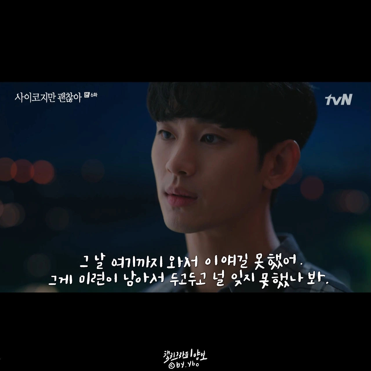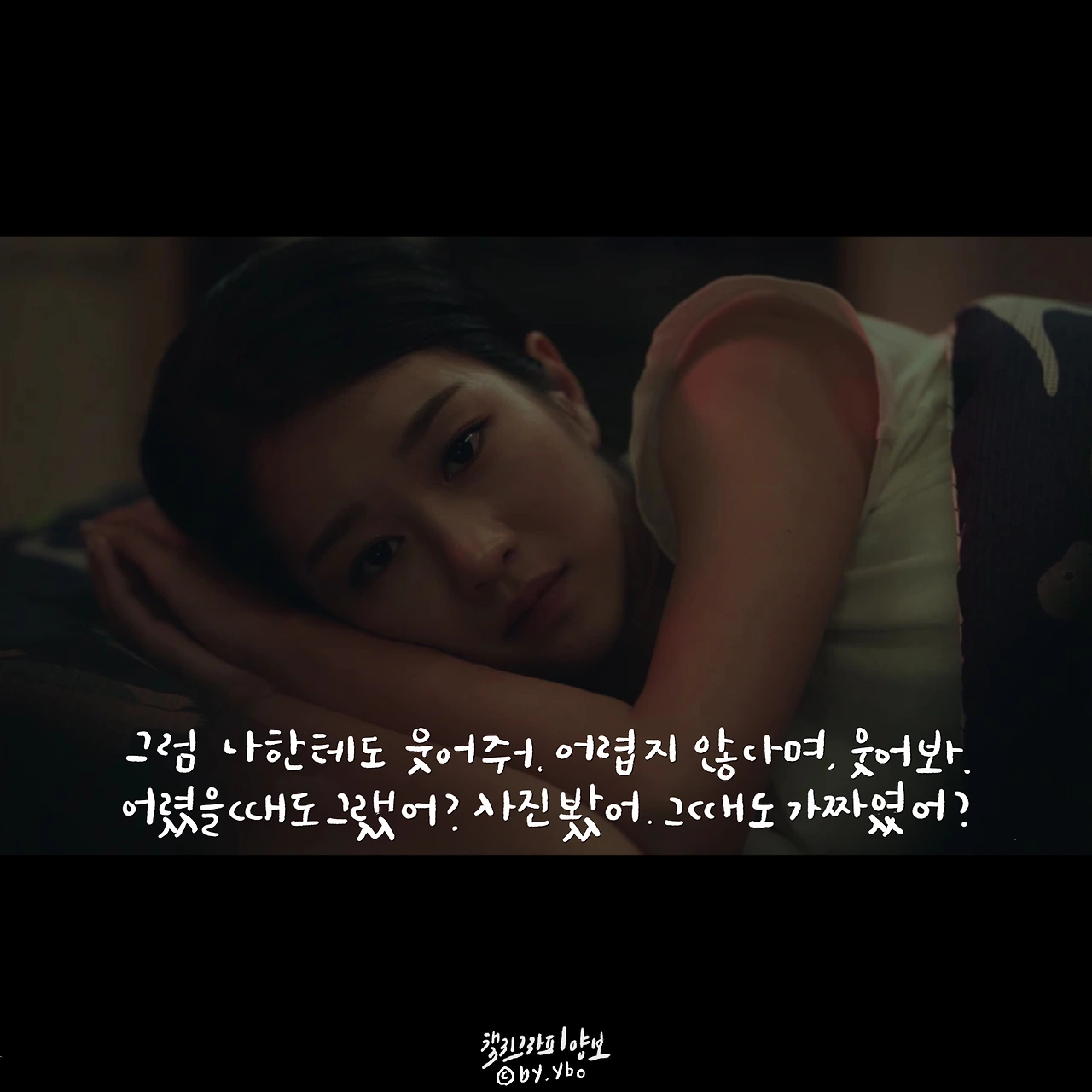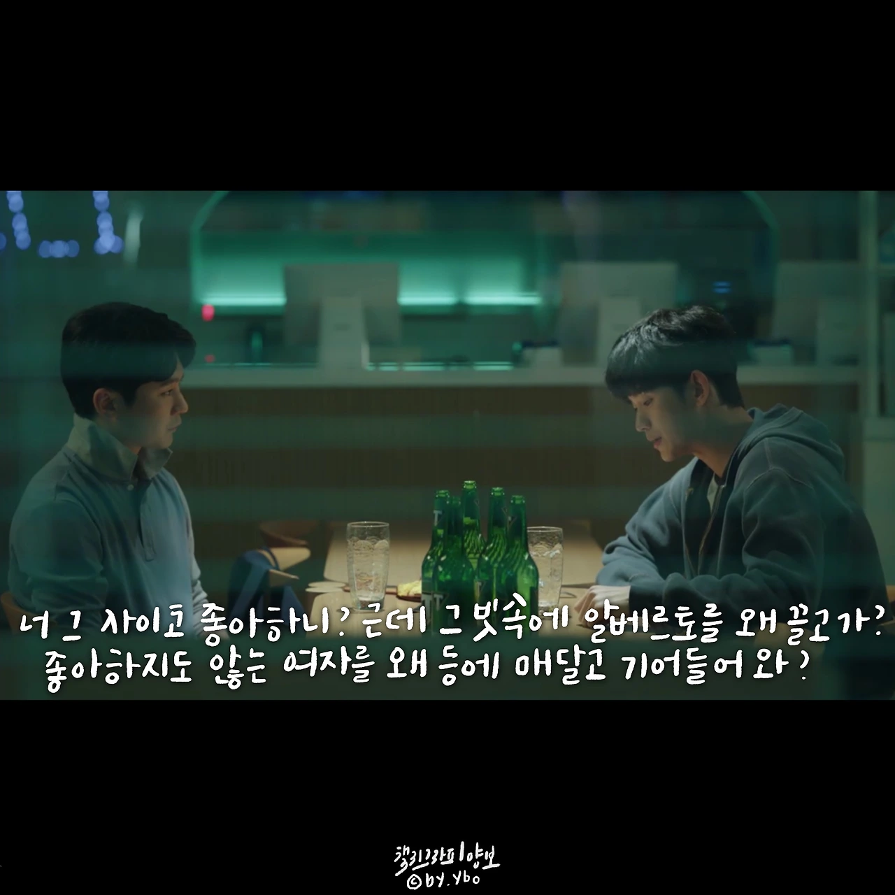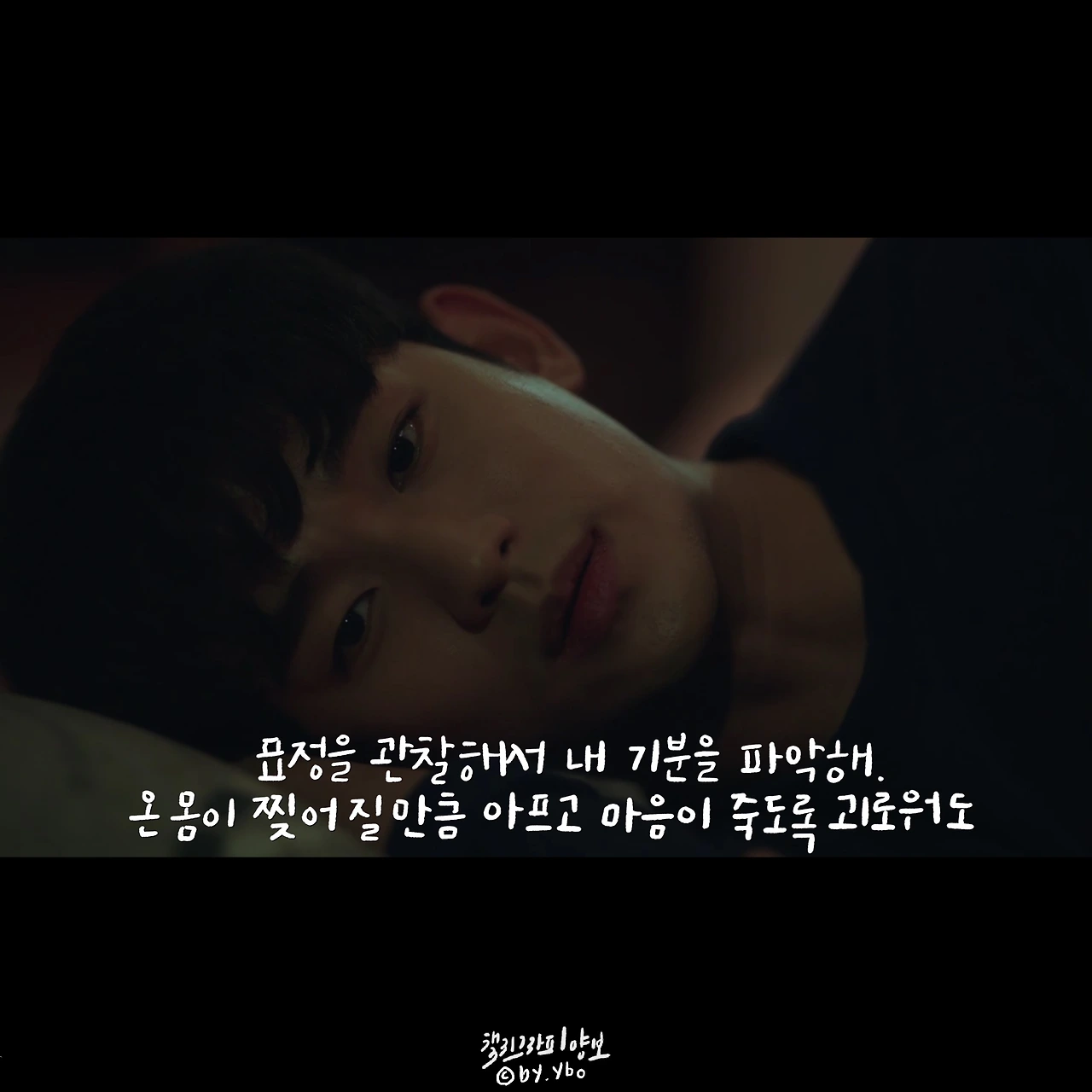 이성적 사고보다 감정이 먼저 앞서 눈 앞을 보지 못 하고 달려 나온 너와 빨갛게 부은 강태의 뺨을 보고 화를 낸 문영이 같은 맘이라는 거지. 문영을 이해하는 과정일지도 :)