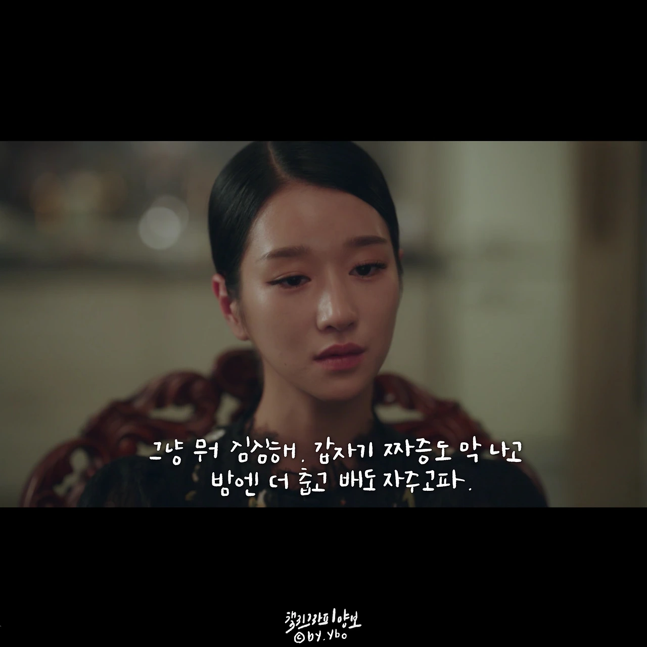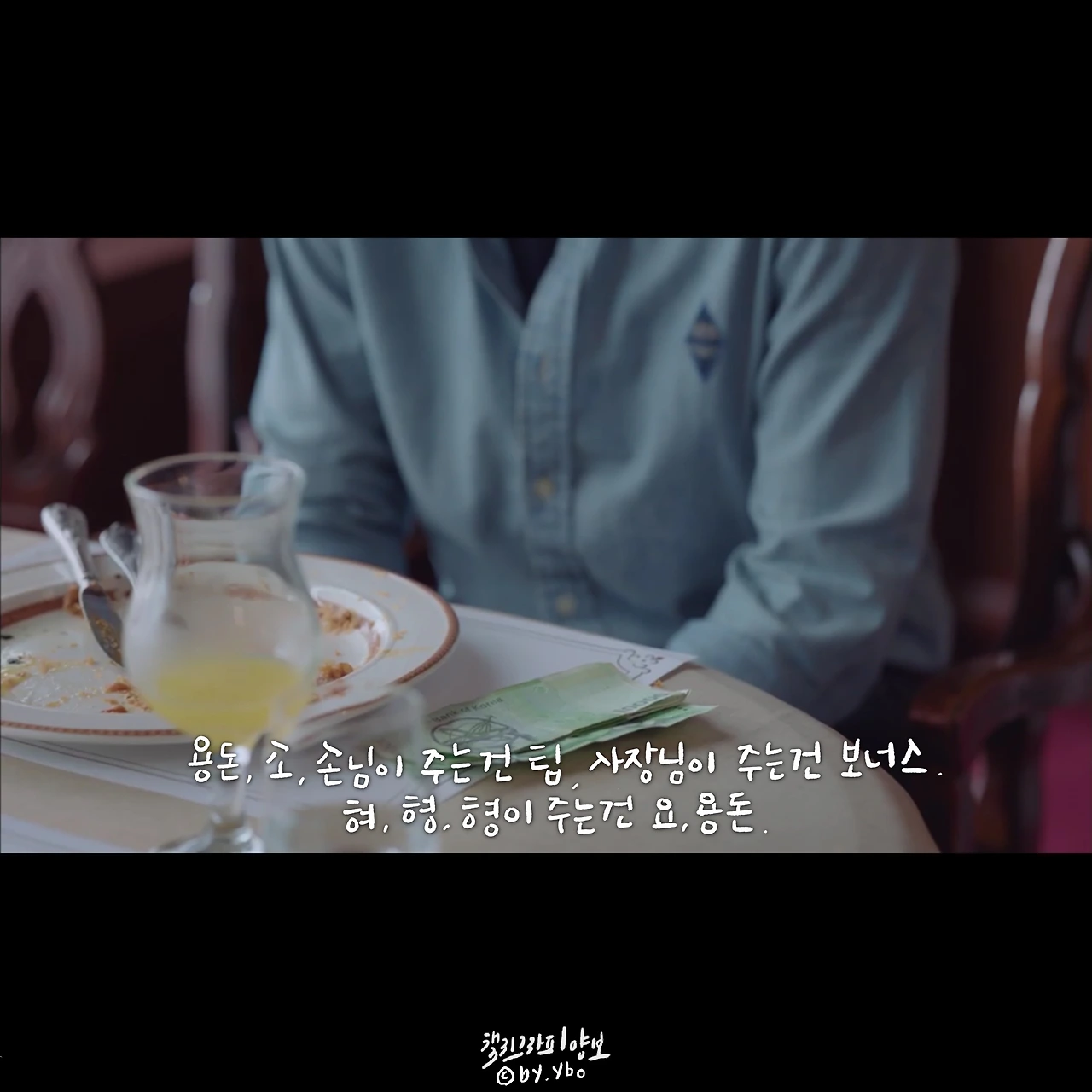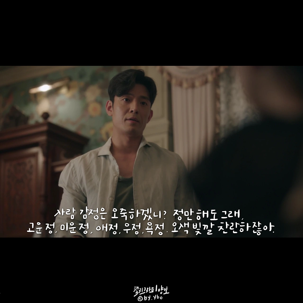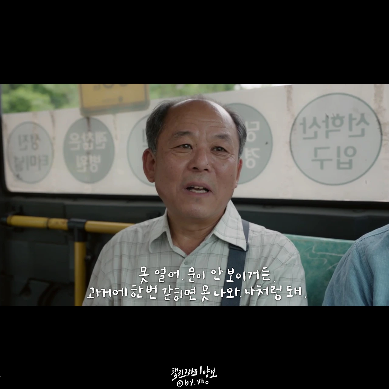 캘리로 적진 않았지만 이어진 장면에서 필옹은 공사장 소리에 전쟁 트라우마가 떠올라 발작 증세를 보인다. 그런 그에게 달려가 강태는 남방을 벗어 시야를 가려주며 꼭 안아 진정을 시킨다. 괜찮다, 괜찮다며 그동안 받아온 보호와 위로를 필 옹에게 건넸다.