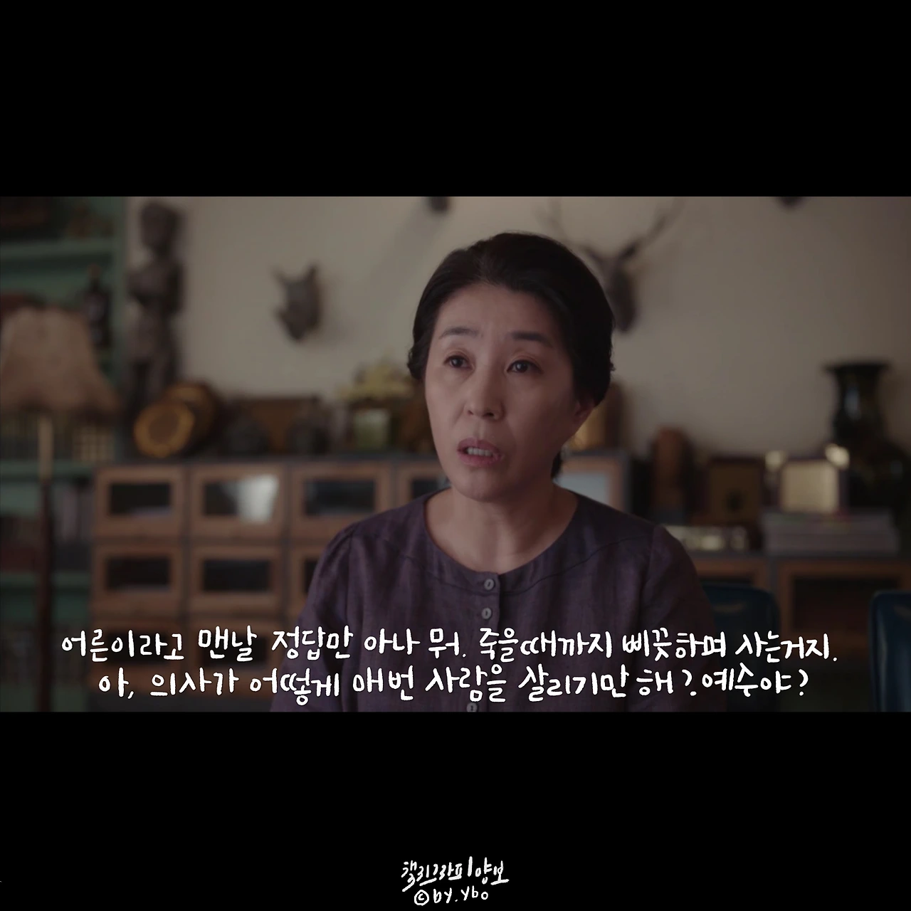 그에 반해 문영 엄마는 정말 사이코에 가깝다. 멀쩡한 척 사람들 곁에서 선한 사람인 척 행동했지만 그녀가 가장 정상에서 멀었다. 드라마 초반 문영의 저자 사인회에서 부딪힌 부모, 평론가처럼 자신은 문제가 없다는 이들이 약함을 인정하는 이들보다 약하고 악하다.