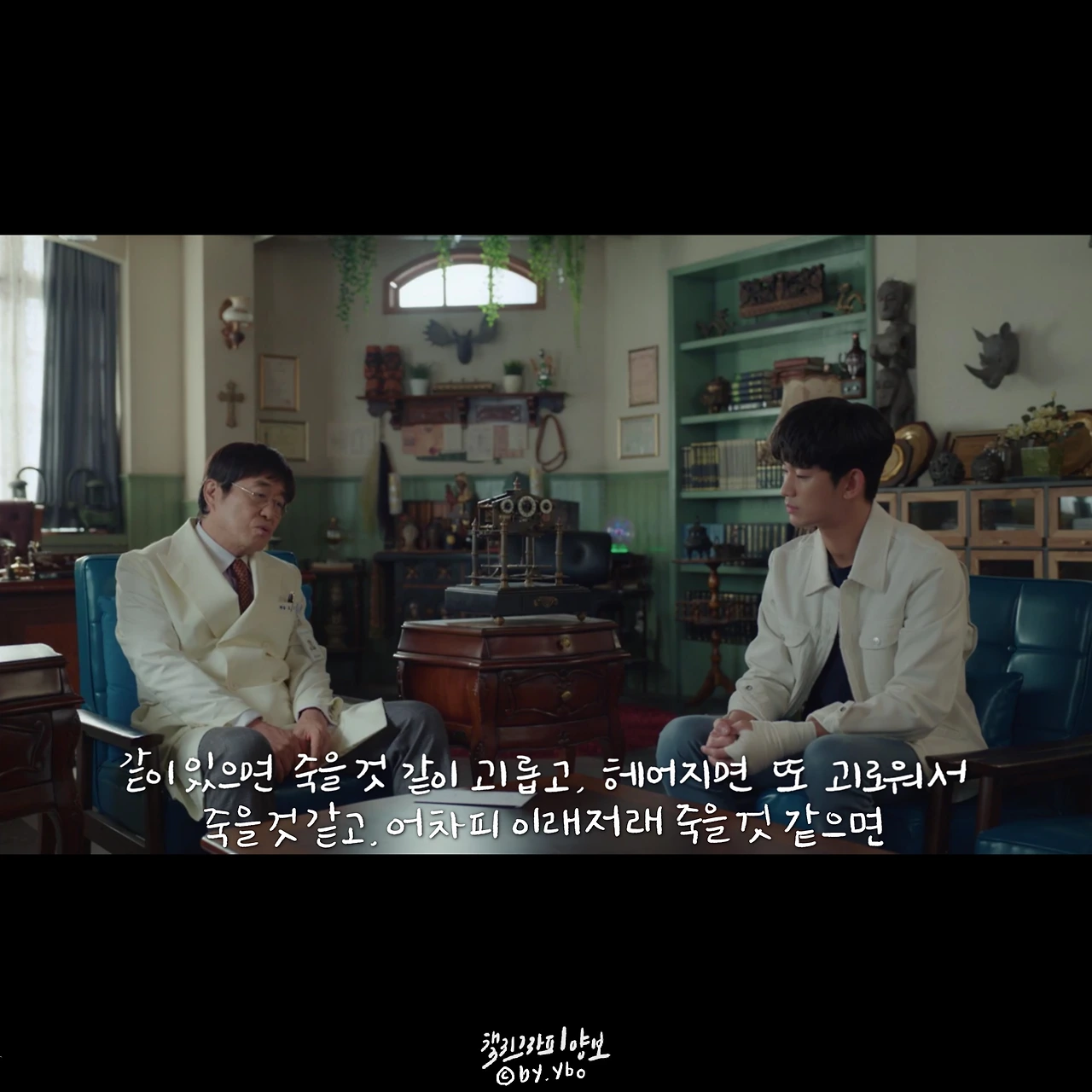 ‘사이코지만 괜찮아’의 외국 제목이 “It’s okay o not be okay.”라고 인친 분이 알려주셨다. 익히 알고 있는 동화를 재해석하던 시선처럼 괜찮지 않아도 괜찮다고 말해주던 드라마는 한 편의 동화 같았다.