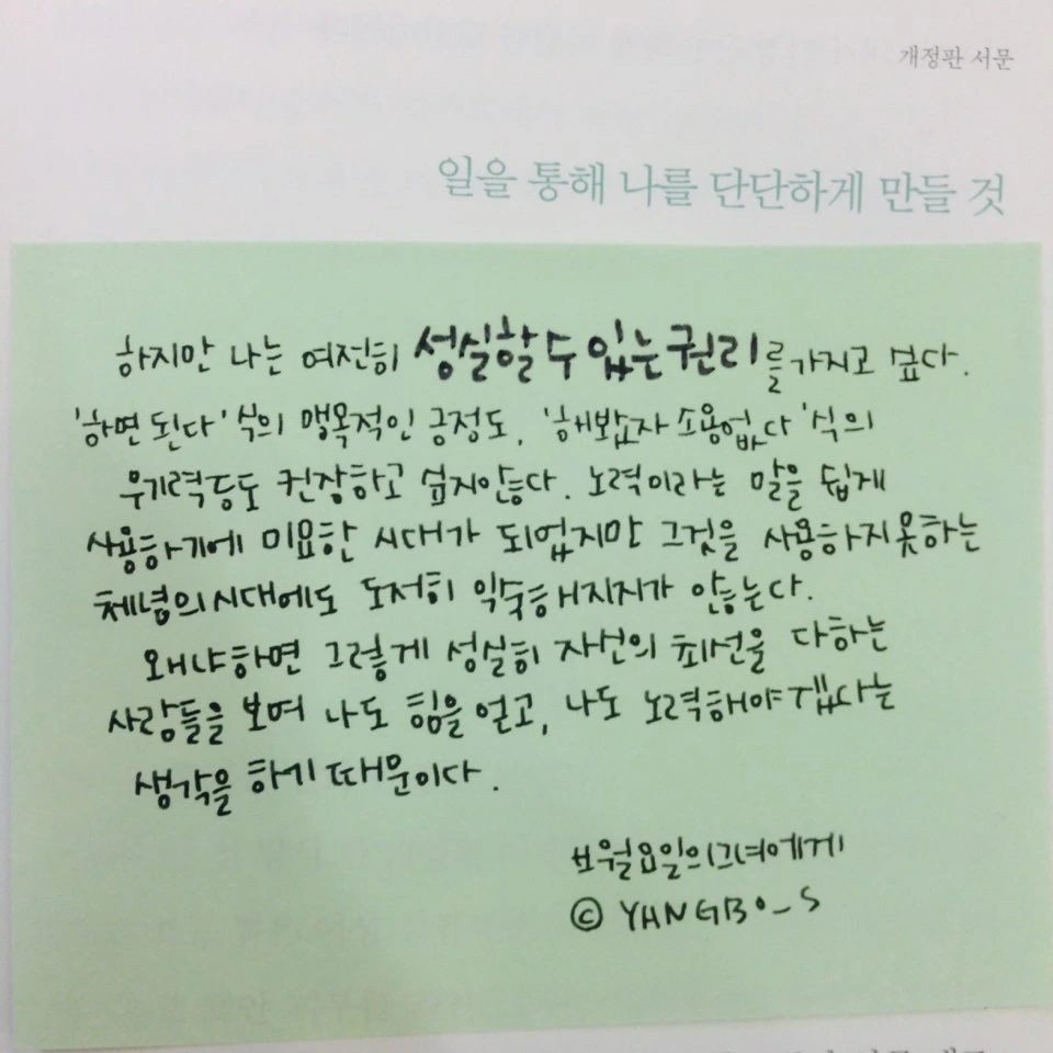 그렇기에 주제넘게도 나는.... 그만두기로 마음을 정한 이의 발걸음을 응원한다. 그만두기까지 정말 수천번을 망설인 발걸음인 것을 알기에, 결정까지 오래 걸렸을 그 결심을 응원하는 것이다.