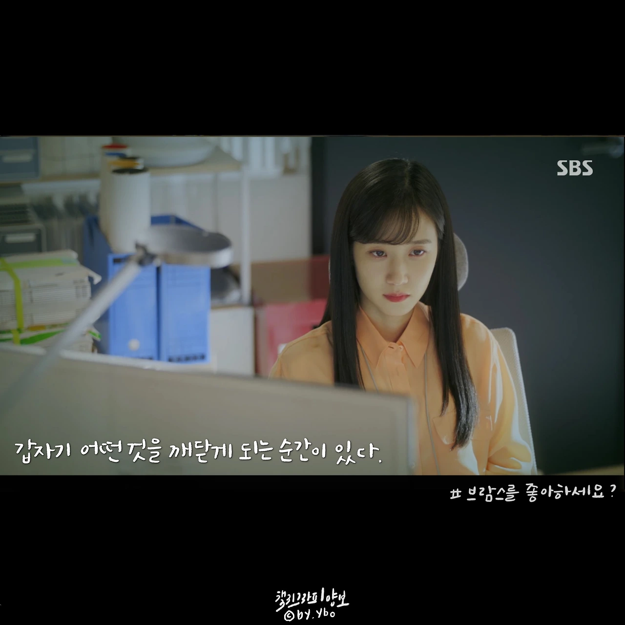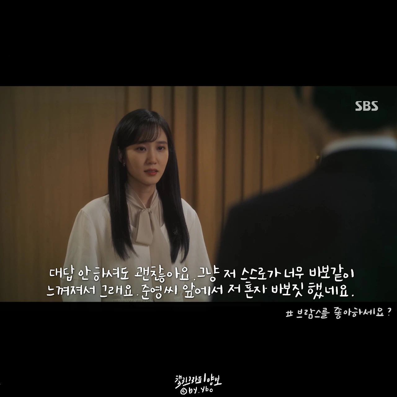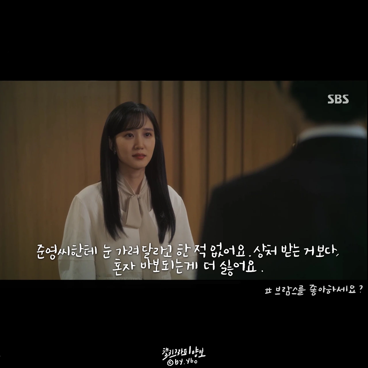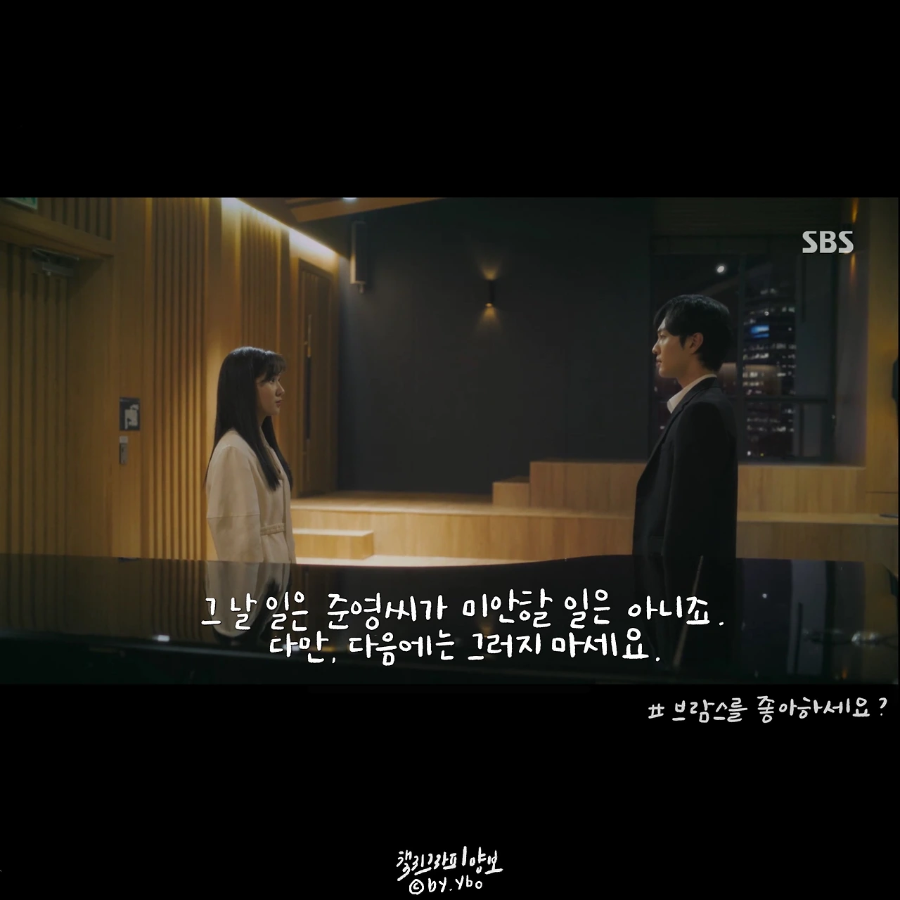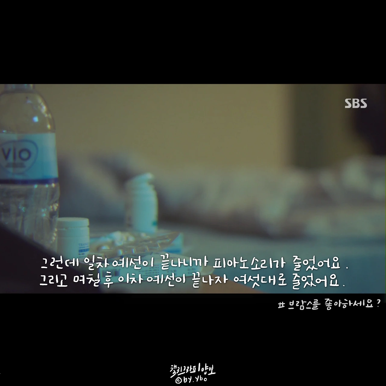 #브람스를좋아하세요 는 극 중 인물들이 가진 어려움을 담담하게 풀어낸다. 생계를 위해 콩쿠르에 참가해야 했던 어린 준영은 국내에서 국외로, 홀로 오랜 시간을 보냈다. 그 시간이 어떠했을지 들려준 이야기와 편집되어 보여준 장면들. 여러 약 병과 웅크러 누운 아이의 모습에서 외롭고 처절했을 감정이 자연히 전달되었다. 그리고 돌아온 한국도 그에게 머물 공간이 없었다. 고국이며 부모님도 계셨지만 정을 나누며 살기보단 자식에게 손을 벌리는 아버지에게 점점 지쳤갔기 때문이다. 덤덤한 나레이션 위에 브람스 특유의 음악이 깔리면서 좋아하는 일이 변질되어가는 고통까지 느껴졌다. 그나마 편하게 마음을 이야기할 수 있는 송아가 생겼다는 사실에 조금 마음을 놓게 되었다. 그에게 생긴 작은 변화가 연주와 인생이 어떤 방향을 흐르게 될지. (매일매일 브람스 하면 안되나요? 작가님???)