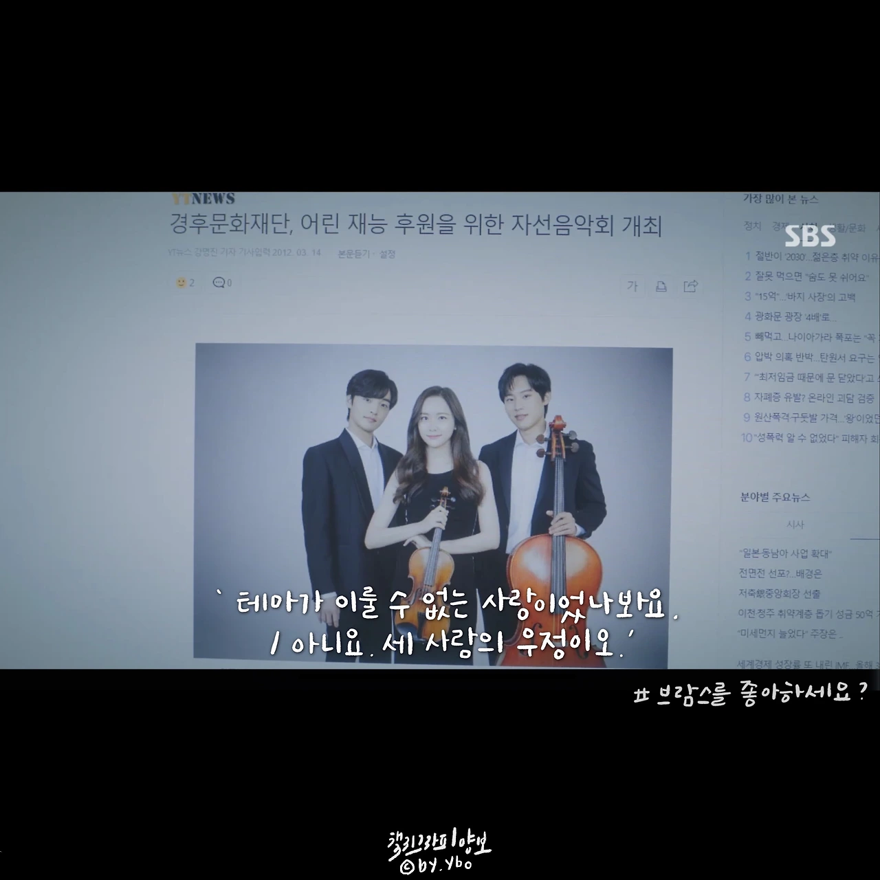 난 박은빈 배우님 연기가 담겨 있는 시선에 아련했는데, 댓글엔 실제 연주자들이 서로를 테그하며 오글거림에 오열하는 .... 현장이 되었다는 ㅋㅋ
