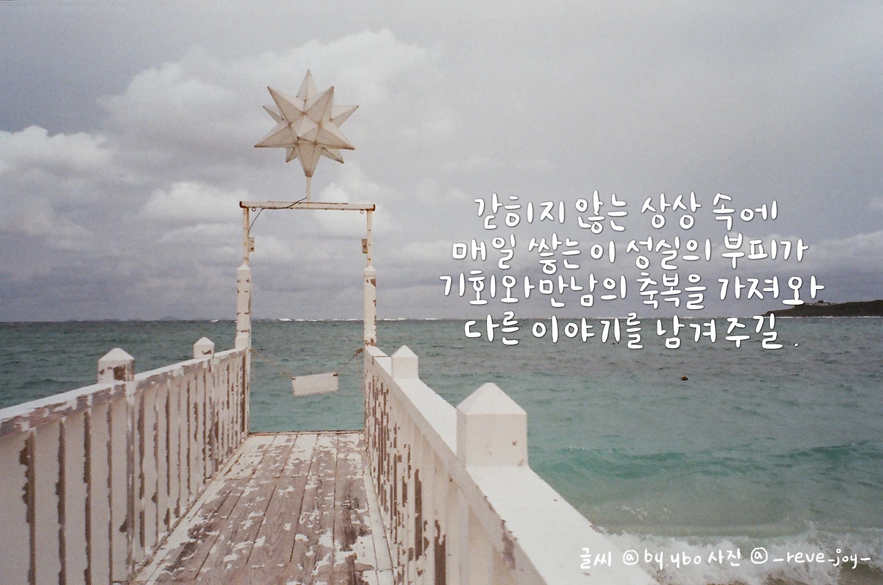 그렇게만 상상하지 않으려고 한다. 나도 은섭이처럼 내년의 오늘이 어떤 무게감을 갖게 될지 상상되지 않는 그런 상상을 하련다. 갇히지 않는 상상 속에 매일 쌓는 성실의 부피가 기회와 만남의 축복을 가져와 다른 이야기를 남겨 주길 바람으로 말이다.