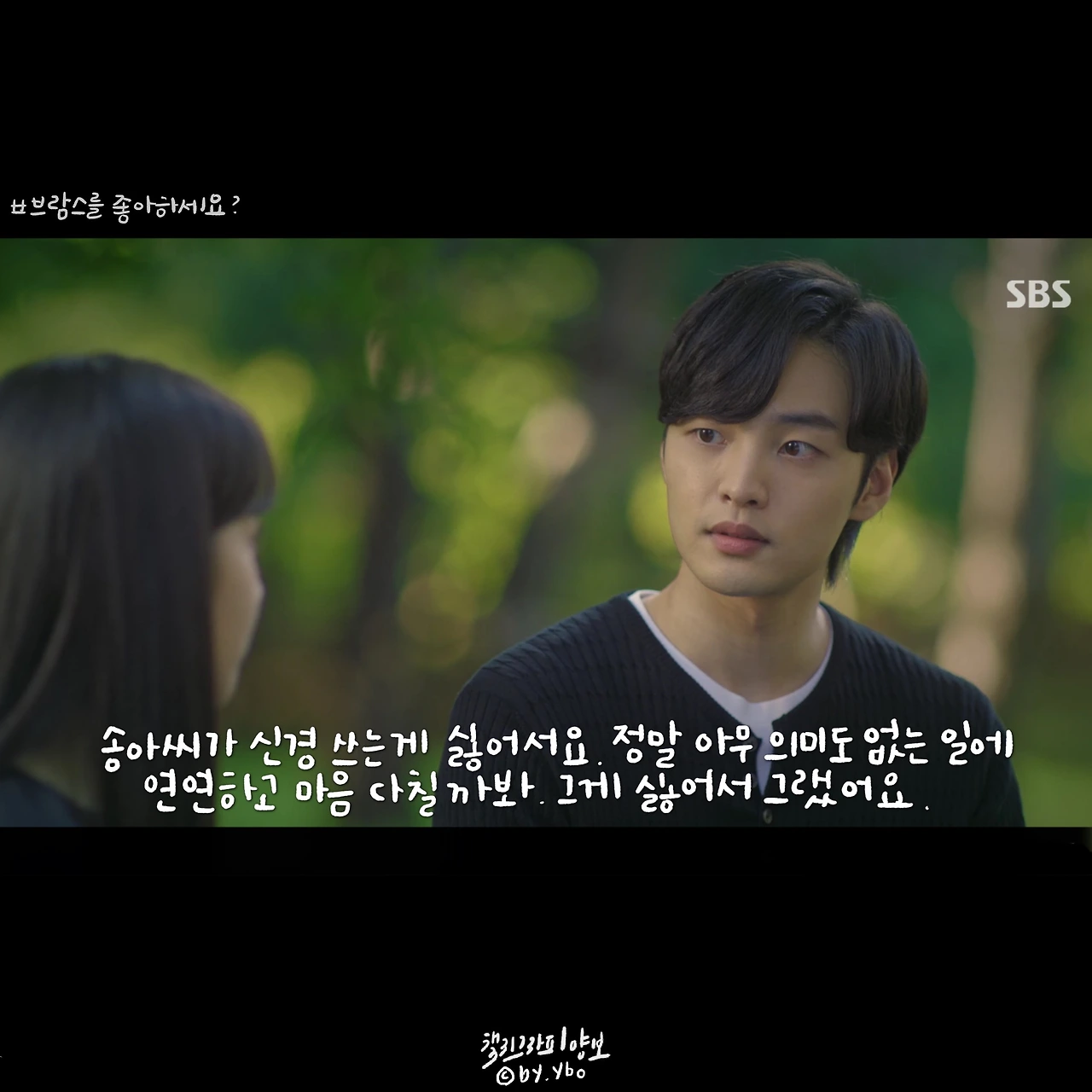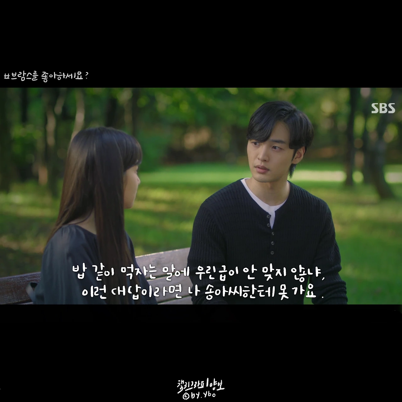 #브람스를좋아하세요 를 보는 이유를 굳이 하나만 꼽으라면 어여쁜 말에 있겠다. 어제 회차처럼 자신에 입장에서만 내뱉는 말, 상처 주는 말이 홍수인 가운데 두 사람의 대화는 사랑이 담겨 있어 조심스러운 모습까지도 위로를 준다.