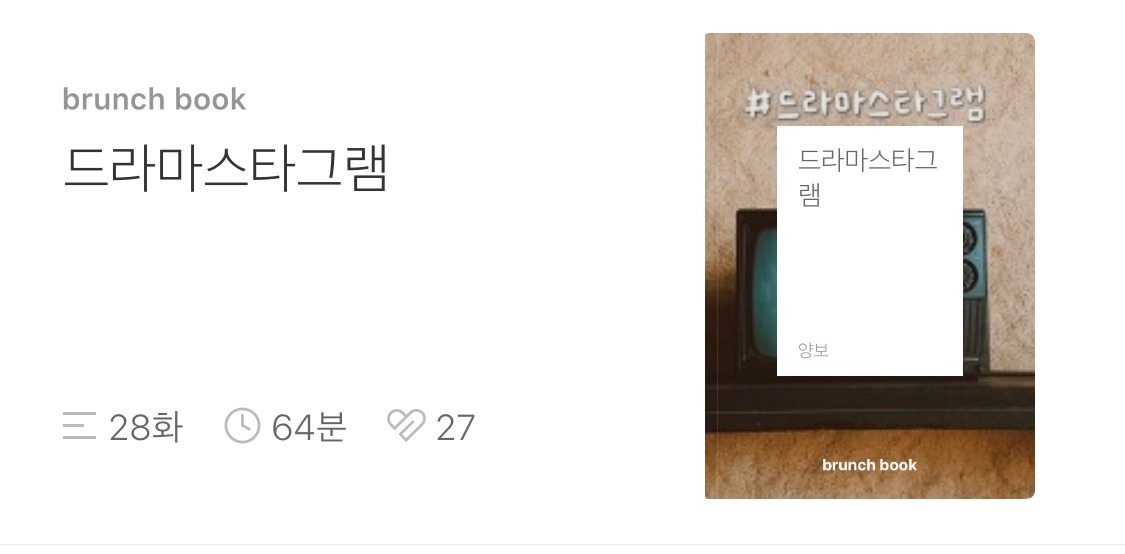 브런치 북 <드라마스타그램>은 우리를 스쳐간 무수한 드라마 속 대사를 통해 삶의 구석구석을 좀 더 깊이 들여다봅니다. 하고 싶던 이야기를 꺼내기 어렵다면, 드라마 속 주인공의 이름을 빌려 말해보는 건 어떨까요. '내 이야기는 아니라 친구 이야기인데'라고 말하는 순간 자신의 이야기임이 인증되는 분위기 속에 드라마 속 에피소드는 좋은 방어구가 되어줄 것입니다. 일상은 드라마 같지 않지만 결국엔 이겨내는 주인공을 보며 용기를 내보는 건 어떨까요. 롤모델을 위인전에서만 찾아야 된다고 생각하지 않는다면 당신에게 지혜를 주는 좋은 스승이 드라마 속에 참 많거든요.