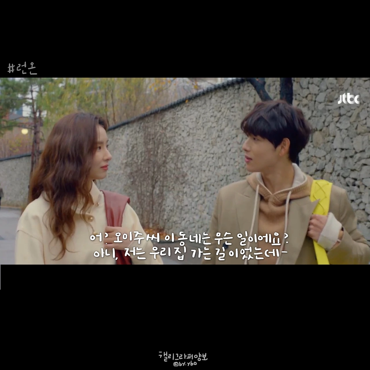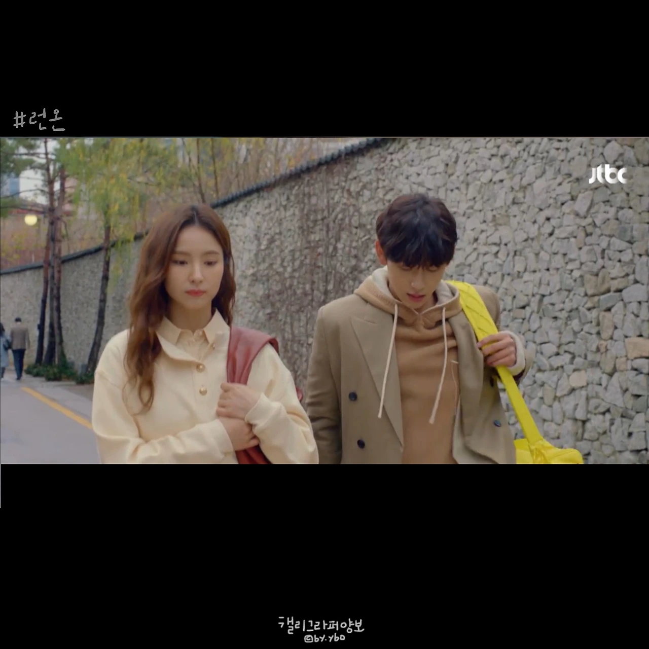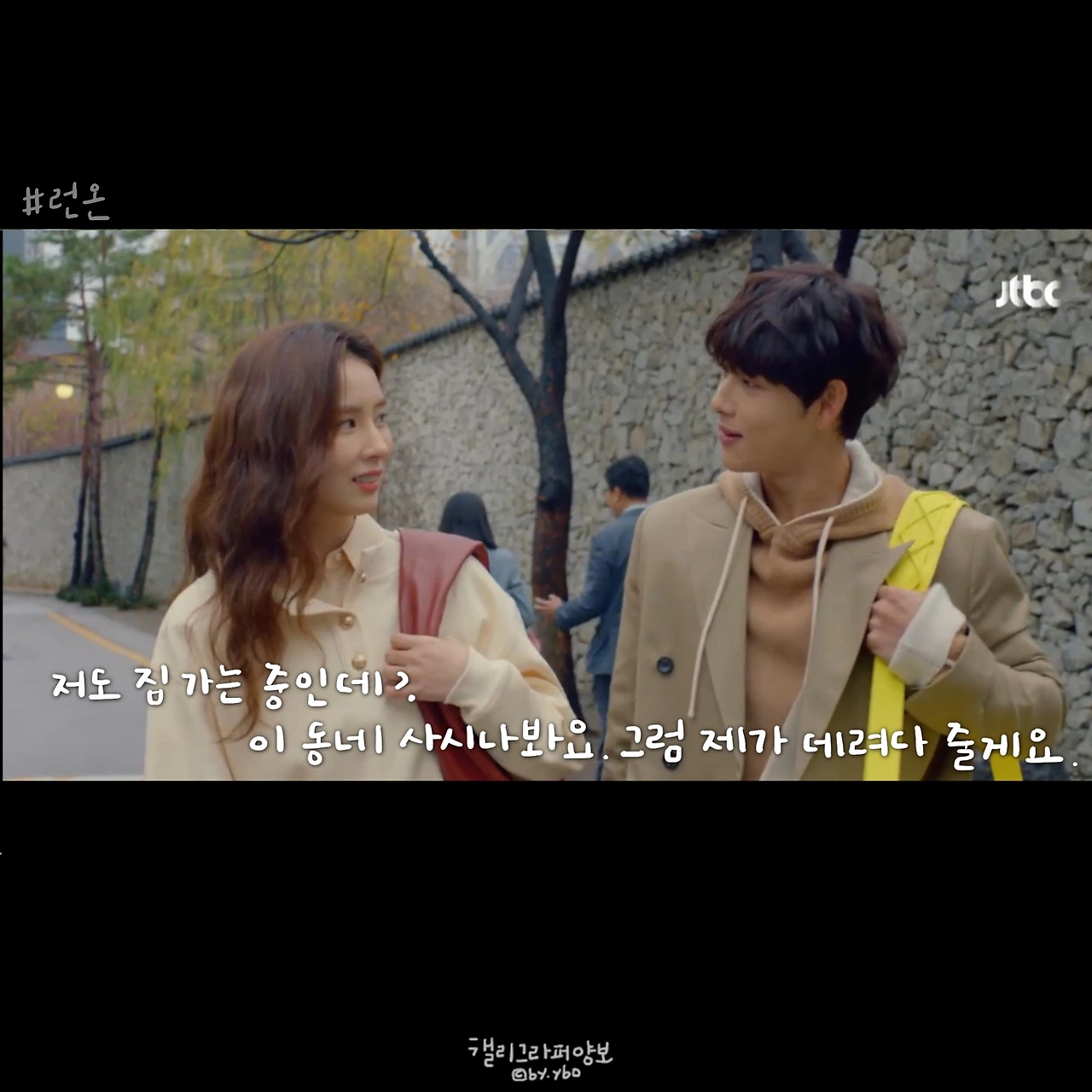 옷 챙기러 간 집에 어쩐 일로 선겸애비가 있어서 선겸 속을 다 뒤집어 놨다. 차라리 아무도 없어 외로운 집이 나았을지도. 택시를 타고 가다 집 근처에서 미주를 보고 서둘러 내린다. 그리고 달려와 그녀와 나란히 발을 맞춘다. 일부로 발을 바꿔서까지 그녀와 함께 걷는다. 다시 한번 <런 온>이라는 드라마의 제목이 떠오른다. 전에 없던 능글미를 장착하고 자신은 '우리 집'가는 길이라고 소개한다. 우리 집이라니, 엄밀히 말하면 미주네 집인데.
