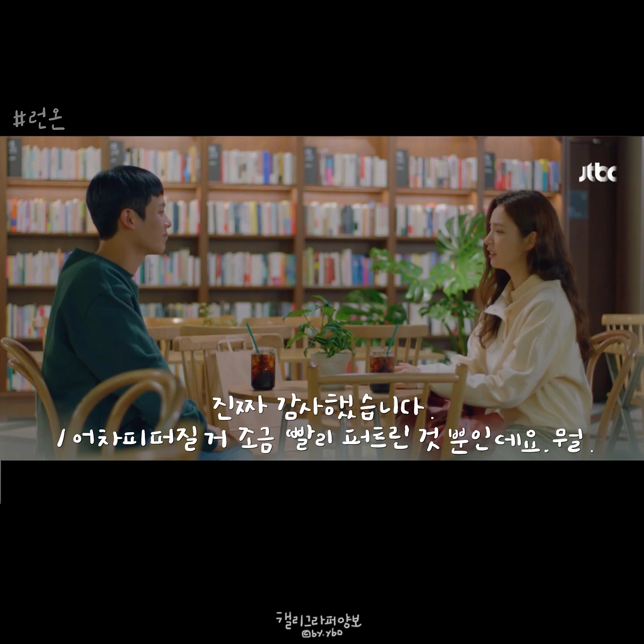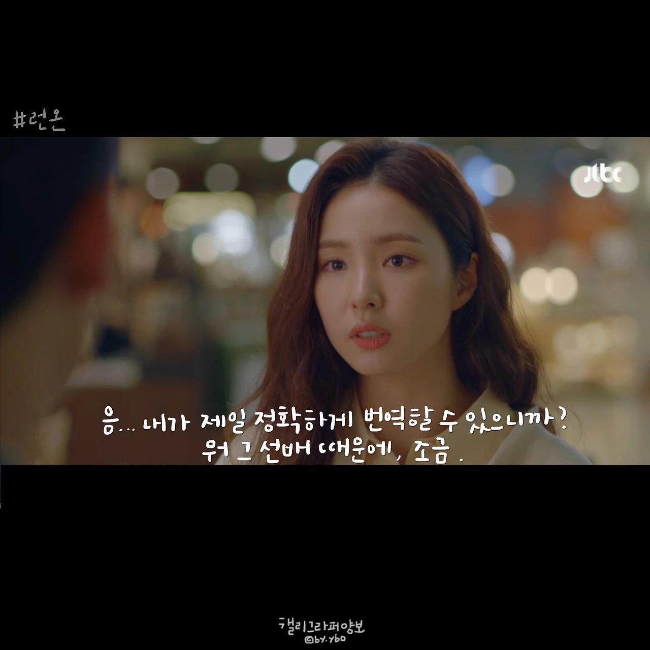 말 예쁘게 하는 사람 보면 반하는데, 미주의 어휘력에 새삼 반한다. 그녀가 번역하는(물론 극 중에서 한 거지만) 영화까지 보고 싶을 정도로.