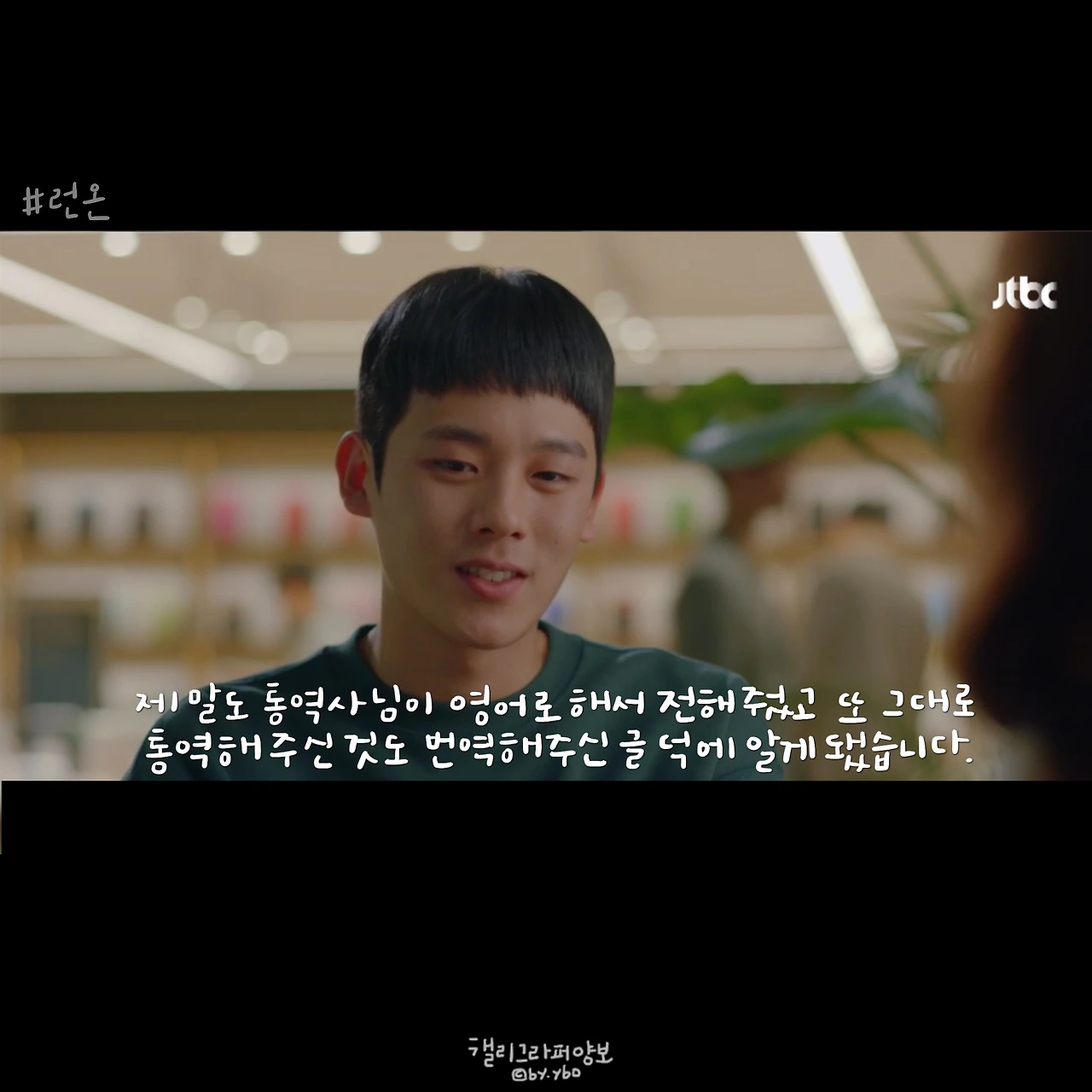 이런 두 사람을 보면 세상은 다른 세계에 사는 사람들이라고 말 할 것이다. 드라마 소개의 '다른 세계'는 이런 환경적 차이를 두고 말하는 걸까, 성별의 차이를 두고 말하는 걸까. 모두를 아우르는 소개일까. 통번역사인 미주에게 선겸의 언어는 2시간짜리 외화 영화보다 어렵다. 그건 아마도 그녀가 문장을 직역하는 게 아닌 말하는 이의 목적, 의도 때로는 화자의 성향까지 파악해서 전달하는 직업을 갖고 있기 때문이겠다. 그렇게 선겸을 이해하기 위해 그의 언어를 공부한다. 말과 말 사이의 다리를 만들어 런 온, 그에게로 달려가는 미주를 선겸은 느리지만 정확한 걸음으로 마중 나온다. 아직 완벽하게 그녀의 말을 다 이해하지 못 하지만 언제나 그랬듯 선겸은 성실히 노력함으로 그녀에게 화답한다.