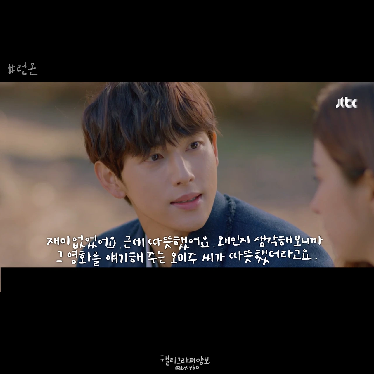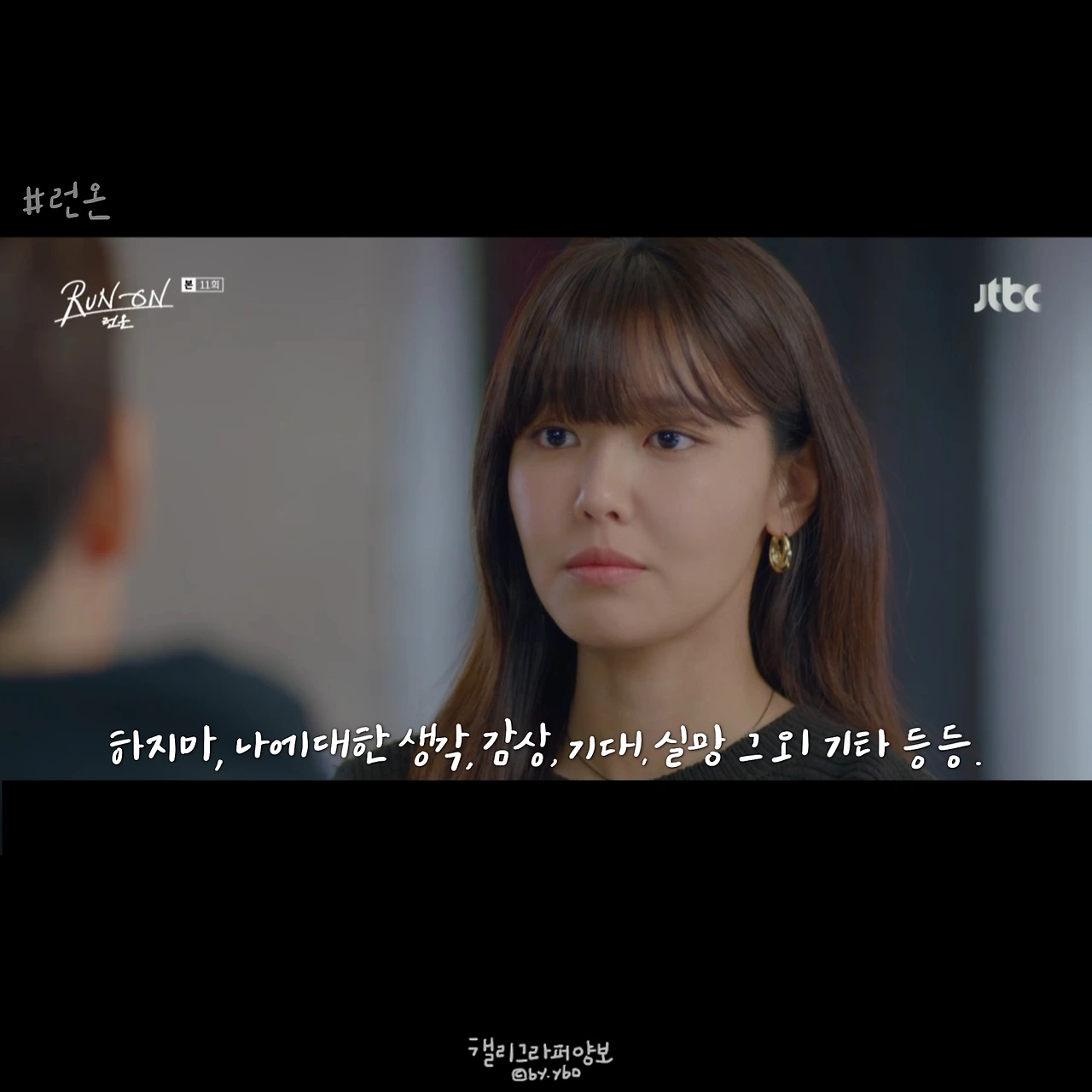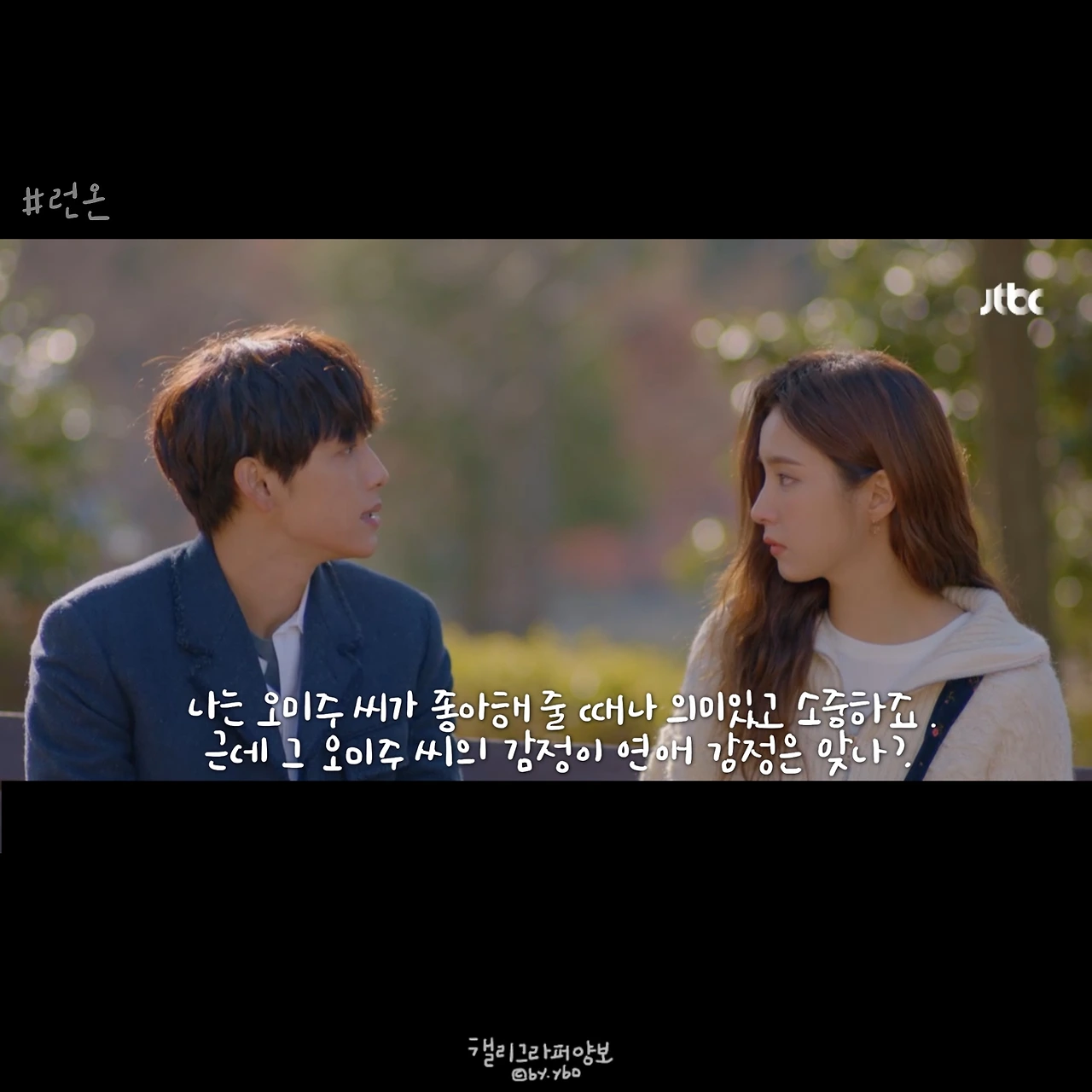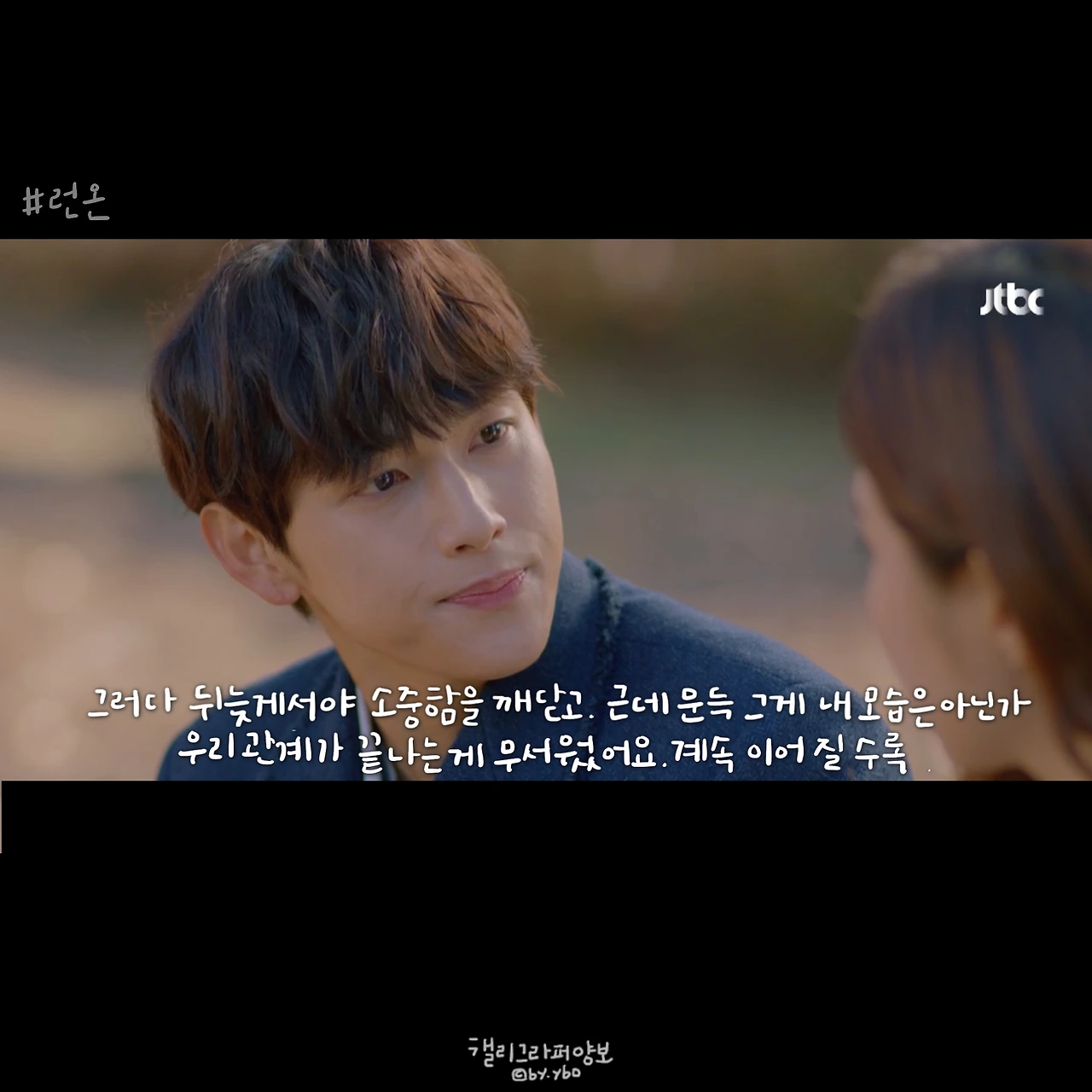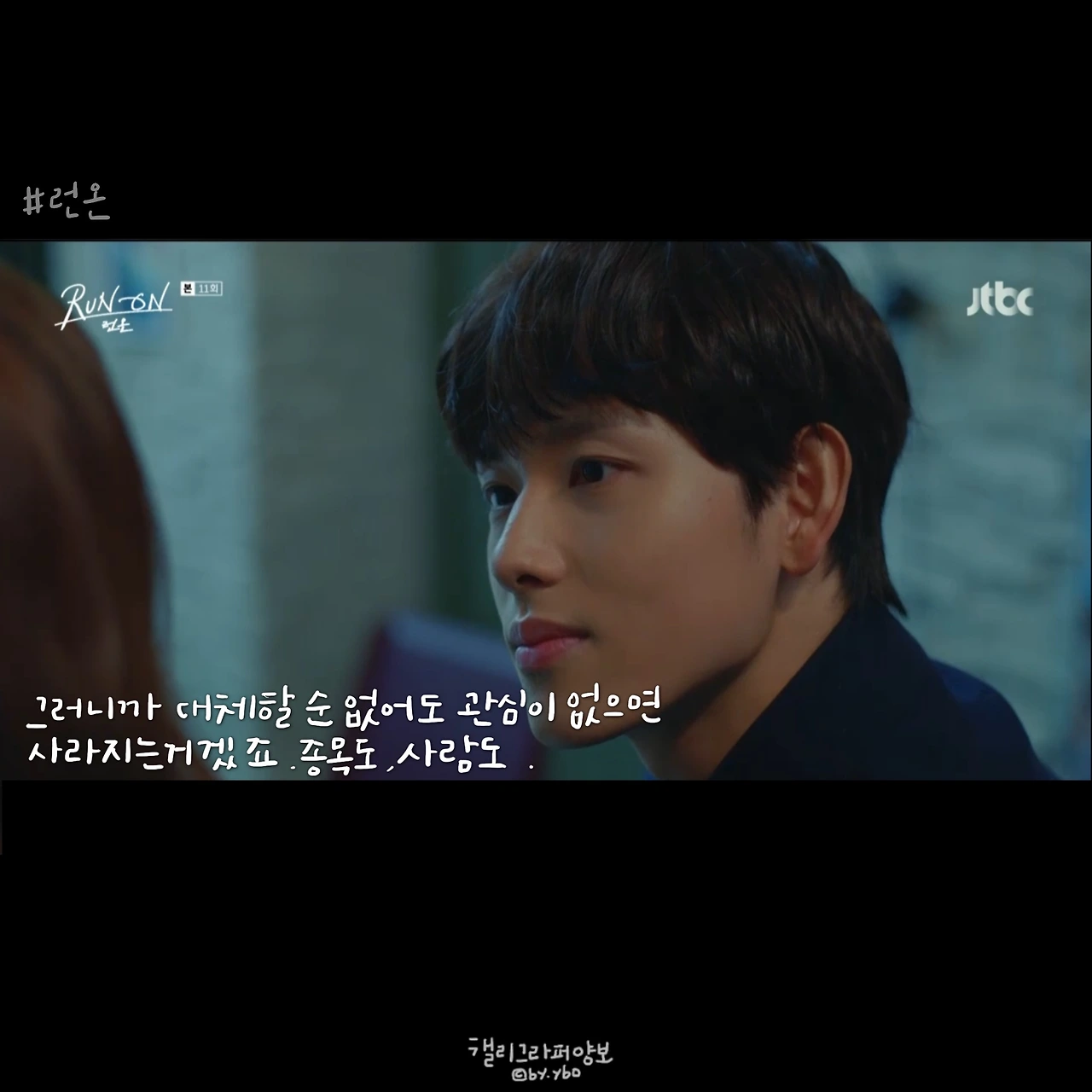 사실 이 뒤에 이어진 계속 좋아할 거라는 대답도, 그 뒤 서로 보며 수줍고 부끄럽게 웃던 모습도 다 좋았는데... 담아낼 수가 없네. <브람스를 좋아하세요>의 감성도 그랬는데, 그러니 여러분 영상 꼭 보세요. 아직도 런온 안 보시는 분 계시면 이 장면 주면서 영업하시고요. 모두의 영업을 응원합니다.