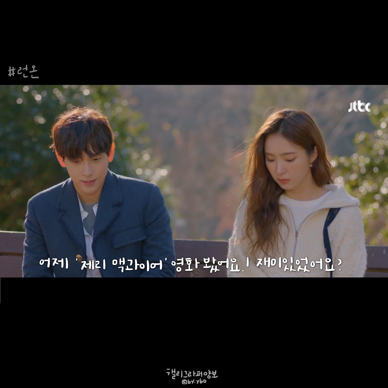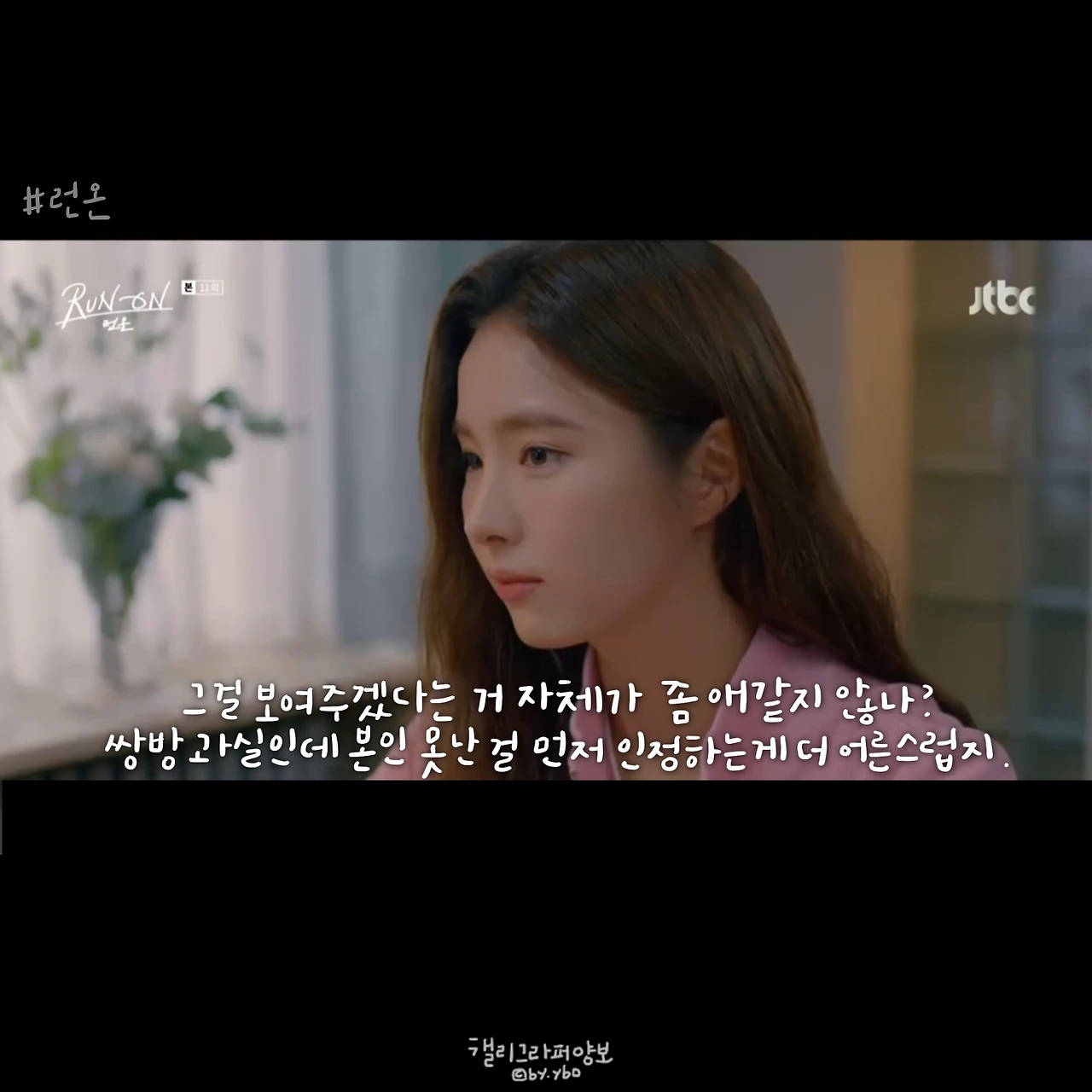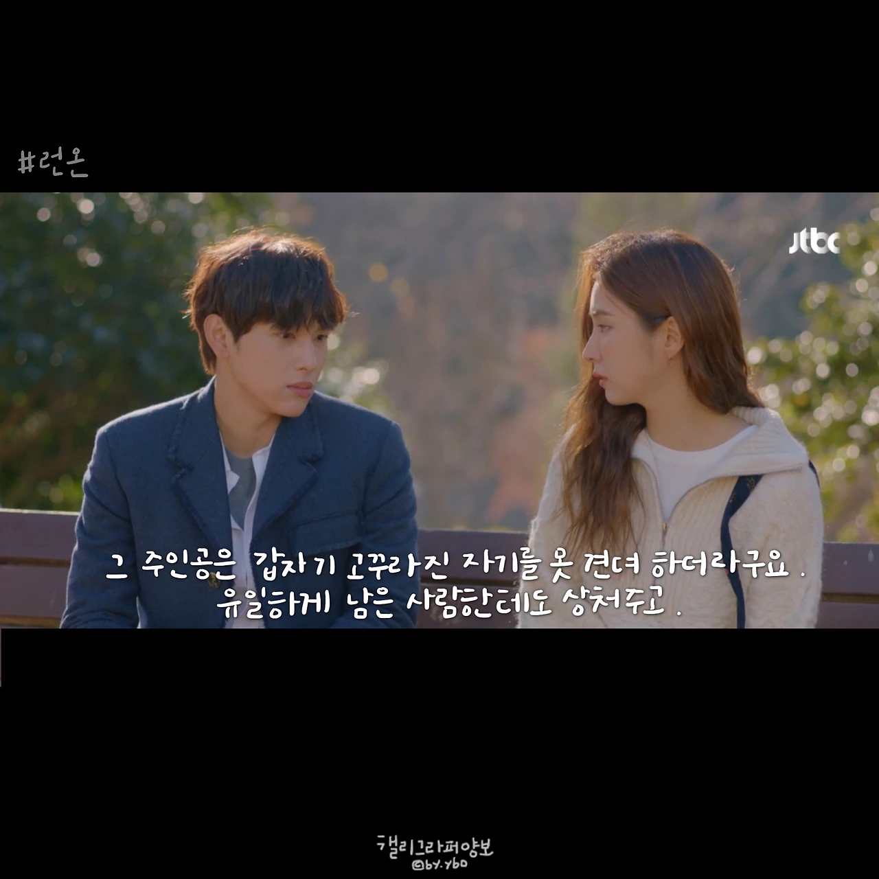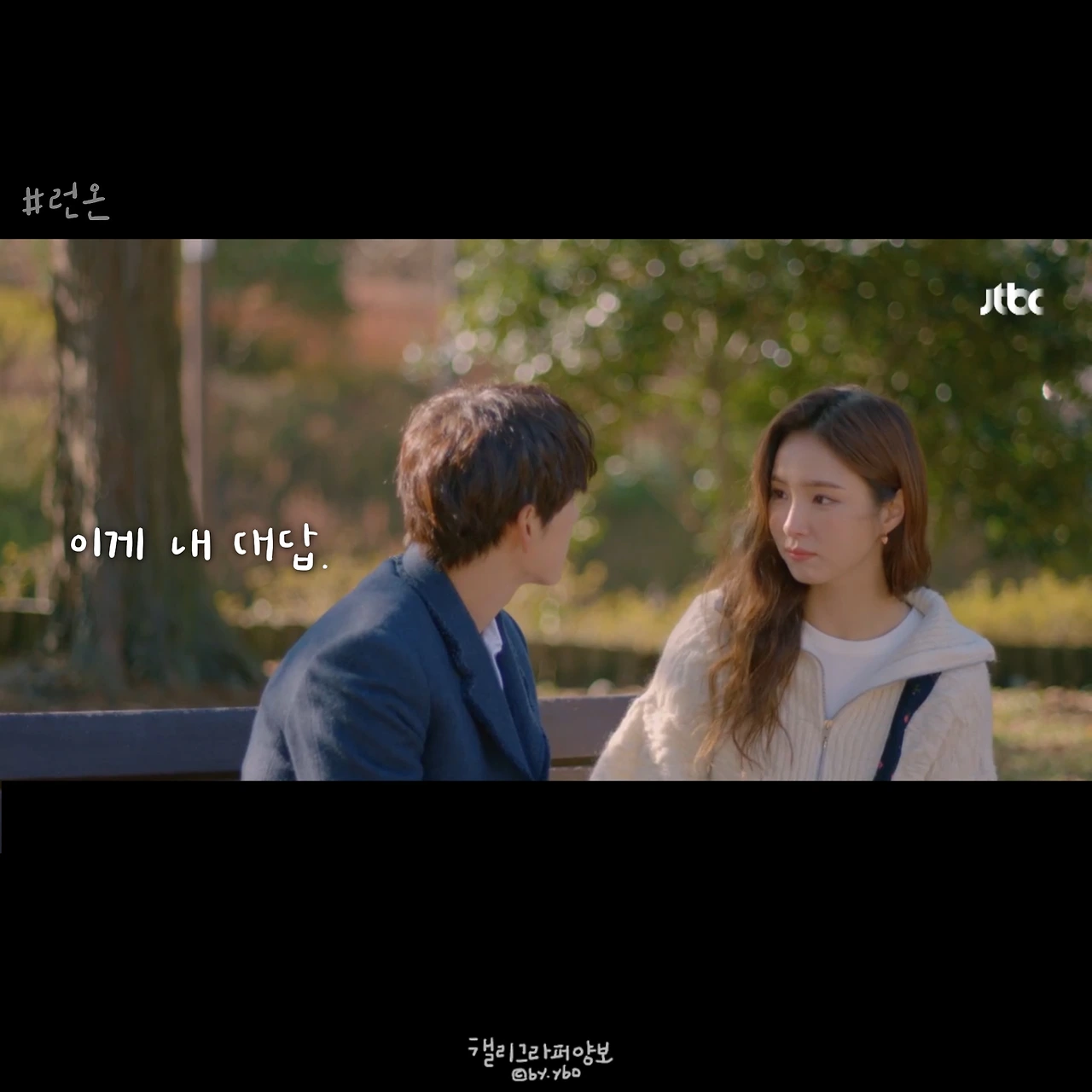 사실 이 뒤에 이어진 계속 좋아할 거라는 대답도, 그 뒤 서로 보며 수줍고 부끄럽게 웃던 모습도 다 좋았는데... 담아낼 수가 없네. <브람스를 좋아하세요>의 감성도 그랬는데, 그러니 여러분 영상 꼭 보세요. 아직도 런온 안 보시는 분 계시면 이 장면 주면서 영업하시고요. 모두의 영업을 응원합니다.