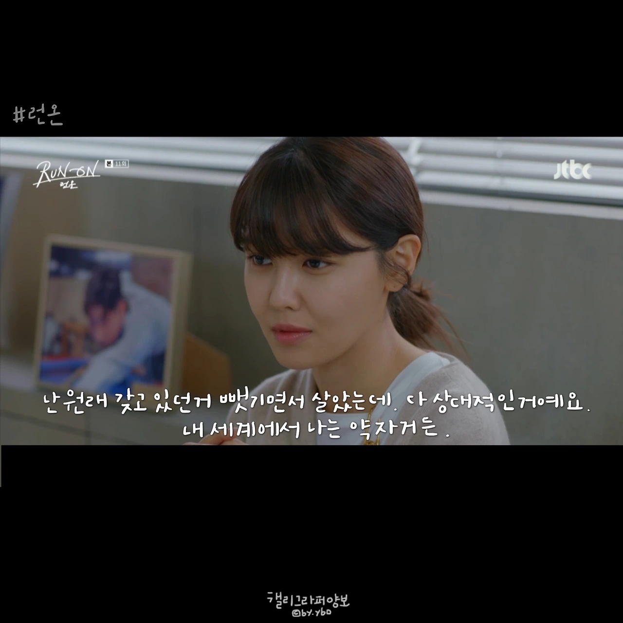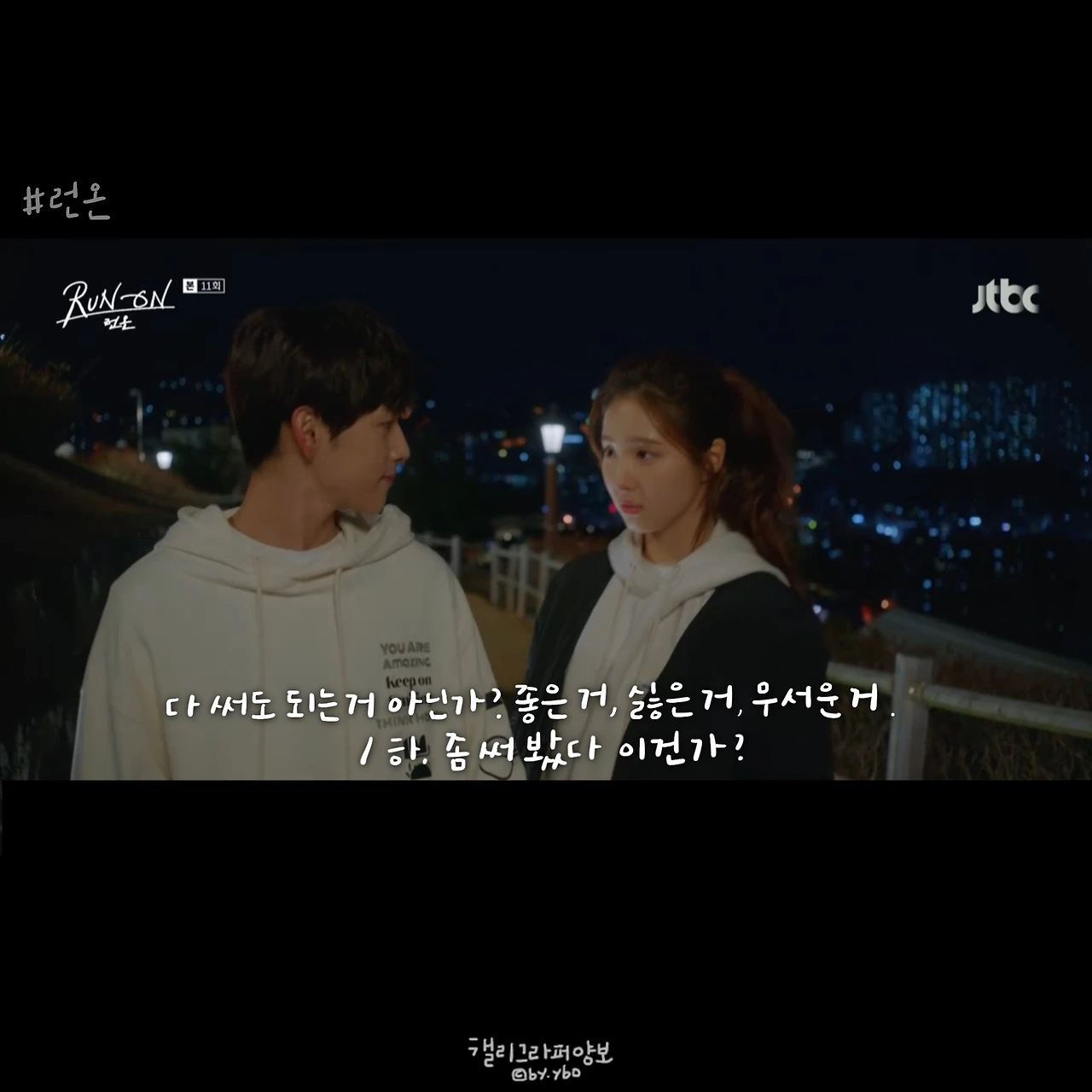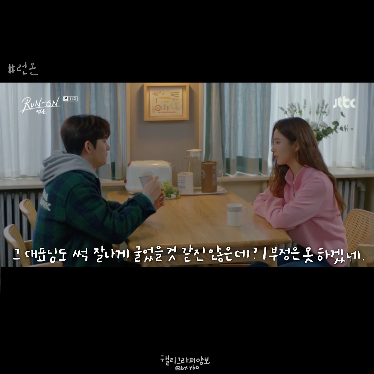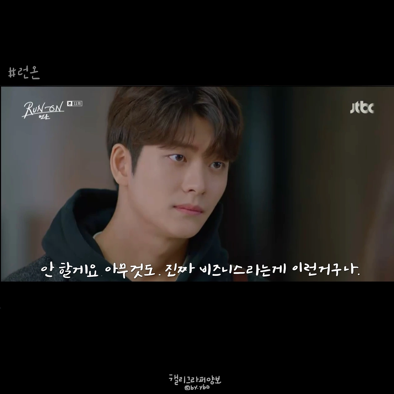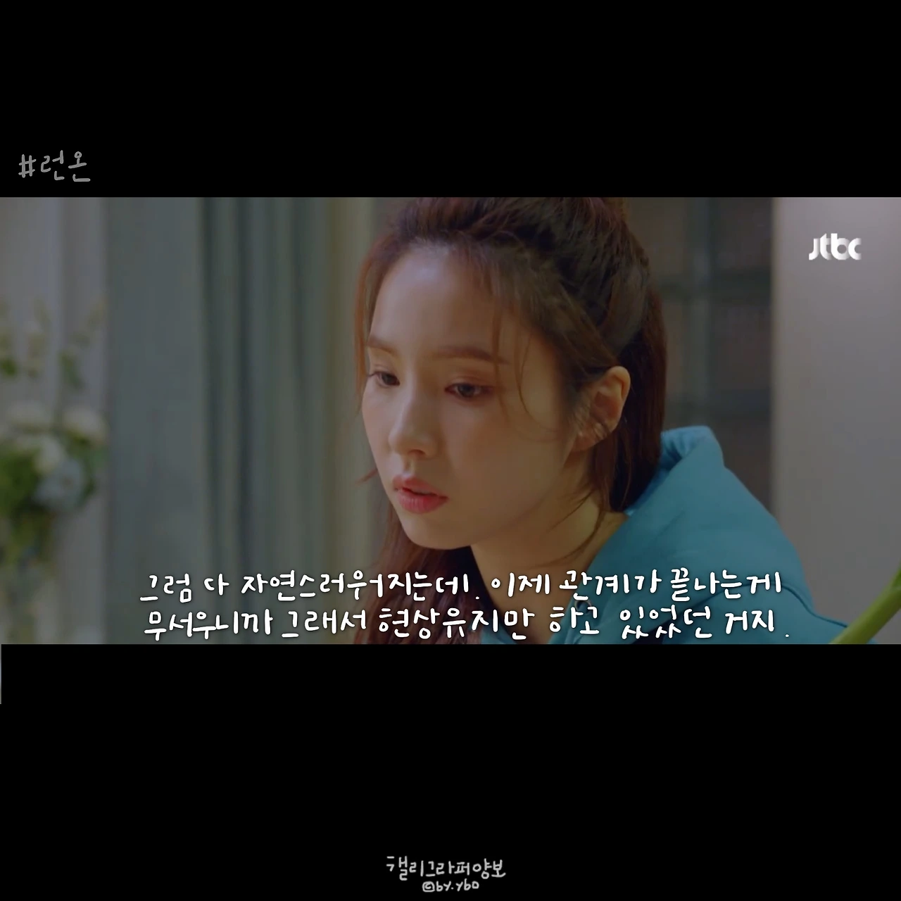 사실 이 뒤에 이어진 계속 좋아할 거라는 대답도, 그 뒤 서로 보며 수줍고 부끄럽게 웃던 모습도 다 좋았는데... 담아낼 수가 없네. <브람스를 좋아하세요>의 감성도 그랬는데, 그러니 여러분 영상 꼭 보세요. 아직도 런온 안 보시는 분 계시면 이 장면 주면서 영업하시고요. 모두의 영업을 응원합니다.