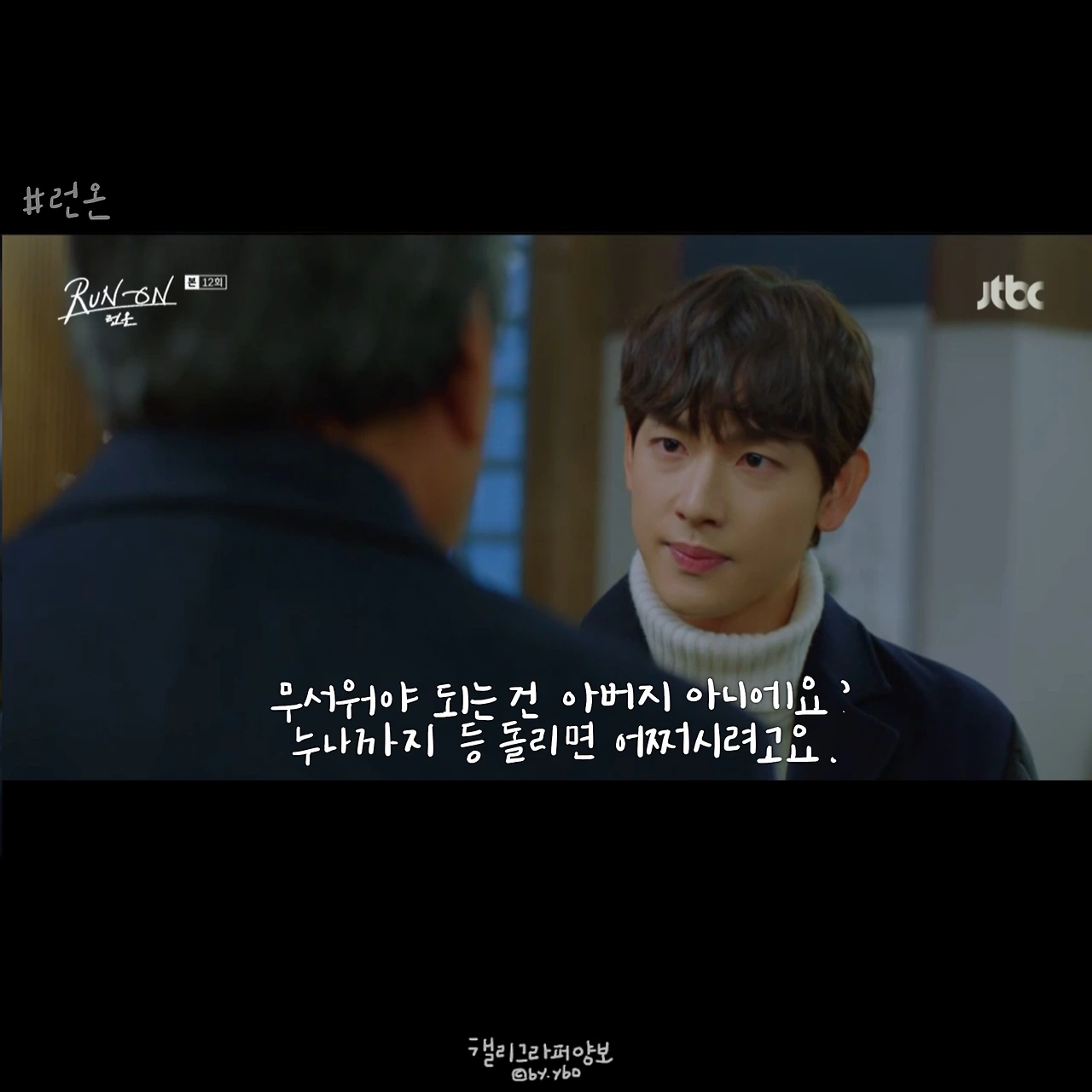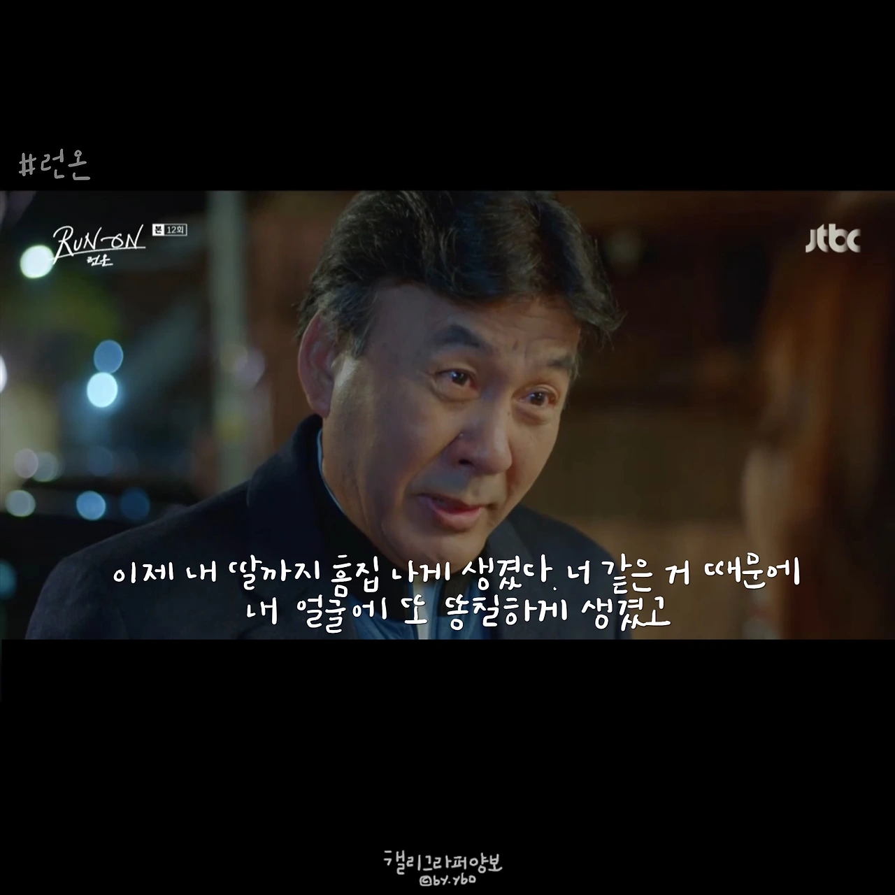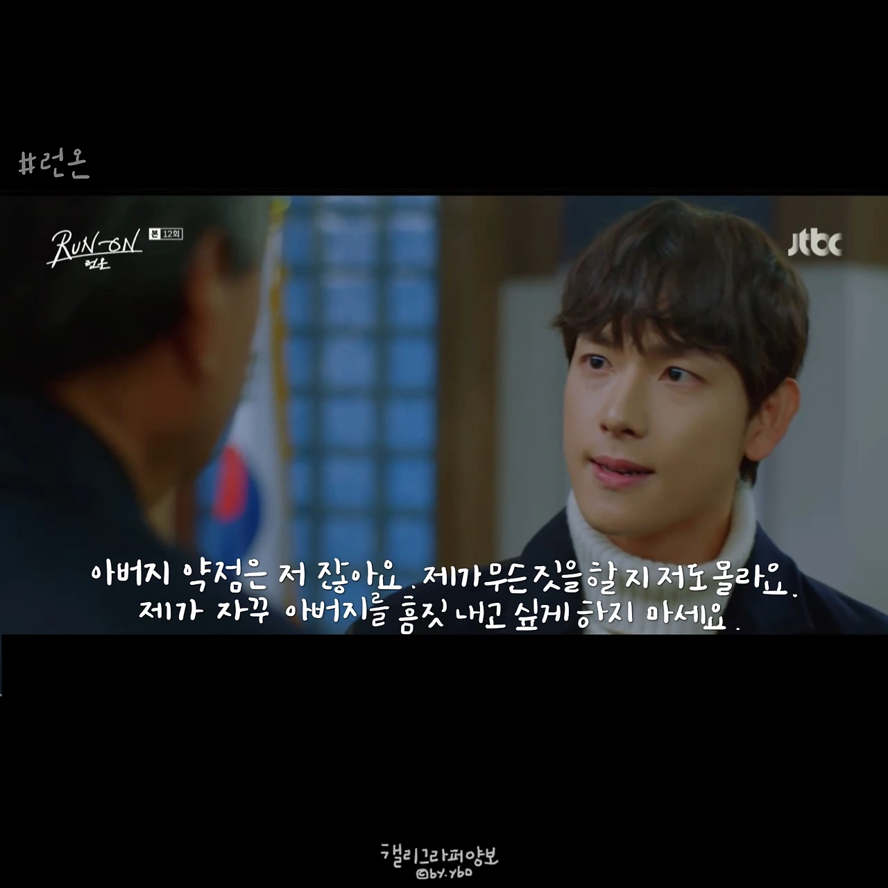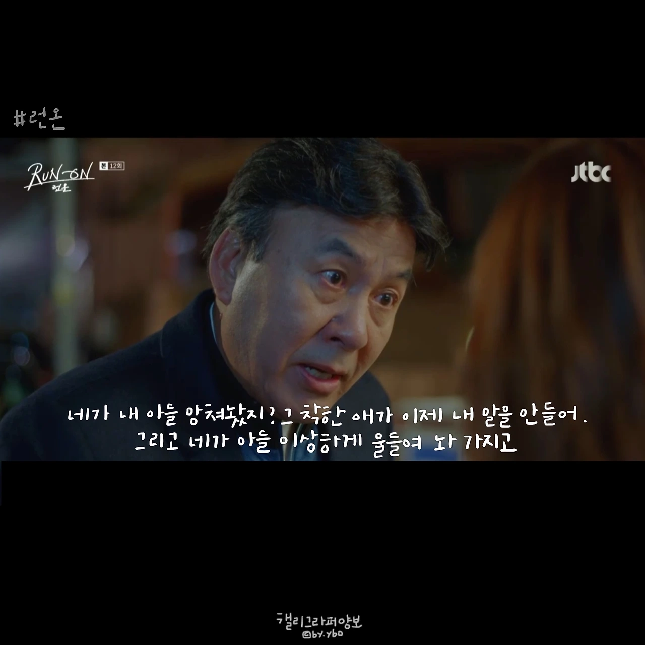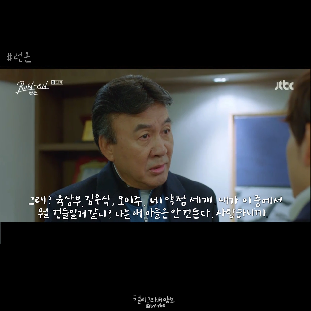 나는 그래도 선겸애비가 선겸이를 사랑한다고 믿었다. 방식이 조금 잘못되고 표현이 미숙한 거라고 생각했다. 그래서 미주를 반대해도 이런 모습은 상상하지 않았다. 런온 속 모든 주인공은 심지어 한국말이 서툴러서 그렇지, 태웅이까지 모두 말이 예쁘다. 하지만 단 한 사람 선겸애비만은 다르다. 그의 말에선 4선 의원의 품격 같은 건 느껴지지 않는다. 말씀을 막 편하게 한다. 하지만 국민 앞에선 우아하다. 몸짓, 말씨 모두.