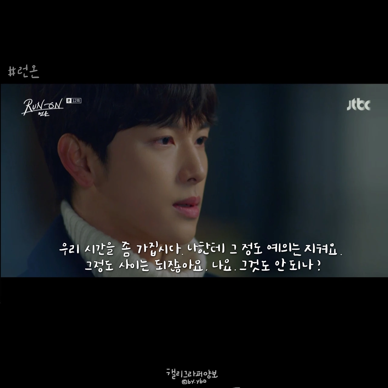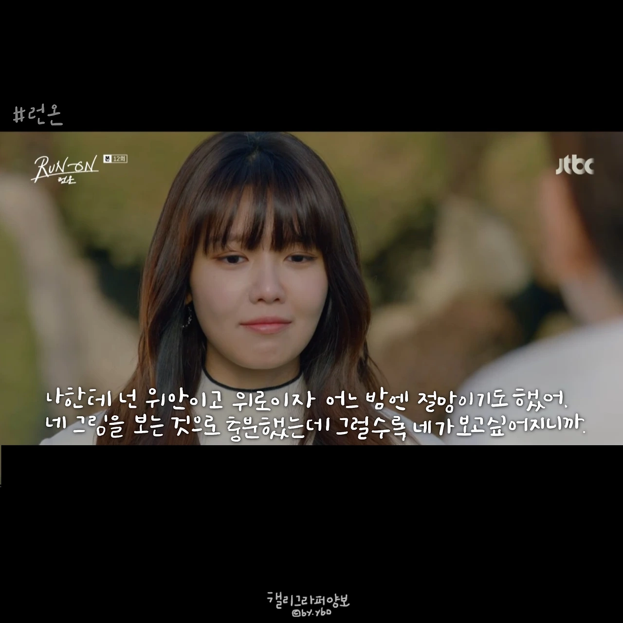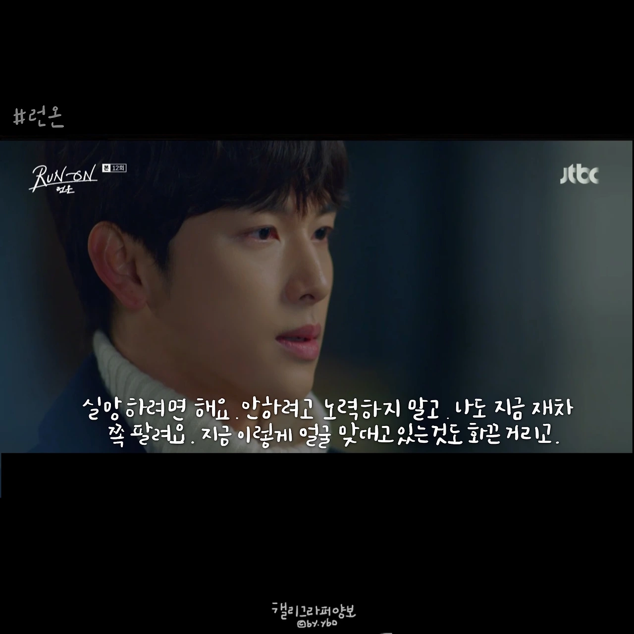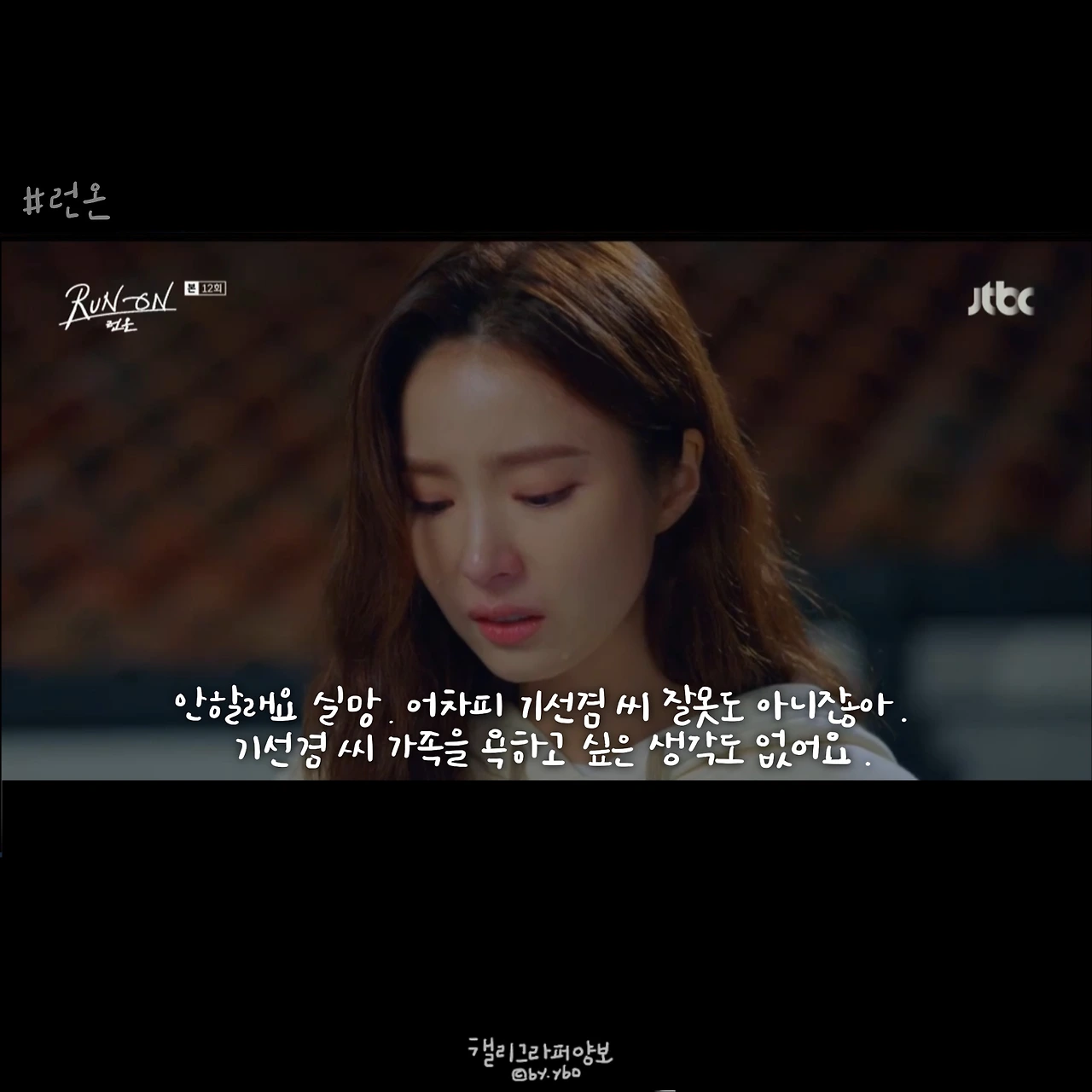그래서 선겸애비에 대한 일말의 기대를 놓았다. 런온 속 주인공들의 말이 예쁜건 상대를 향한 마음에서다. 선 긋는다는 말을 좋아하지 않았던 것 같아 다른 표현을 쓰고, 김칫국 마신다고 말한 뒤 마음 쓰여 사과하고. 미주에게 자신의 이름을 주고, 다투는 와중에도 존대하라며 품격을 지키게 했던 모든 순간은 자신의 체면이 아닌 상대를 존중함에 나온 말 모양이었기에 선겸애비에 대해선 그 어떤 희망도 찾아볼 수 없었다.