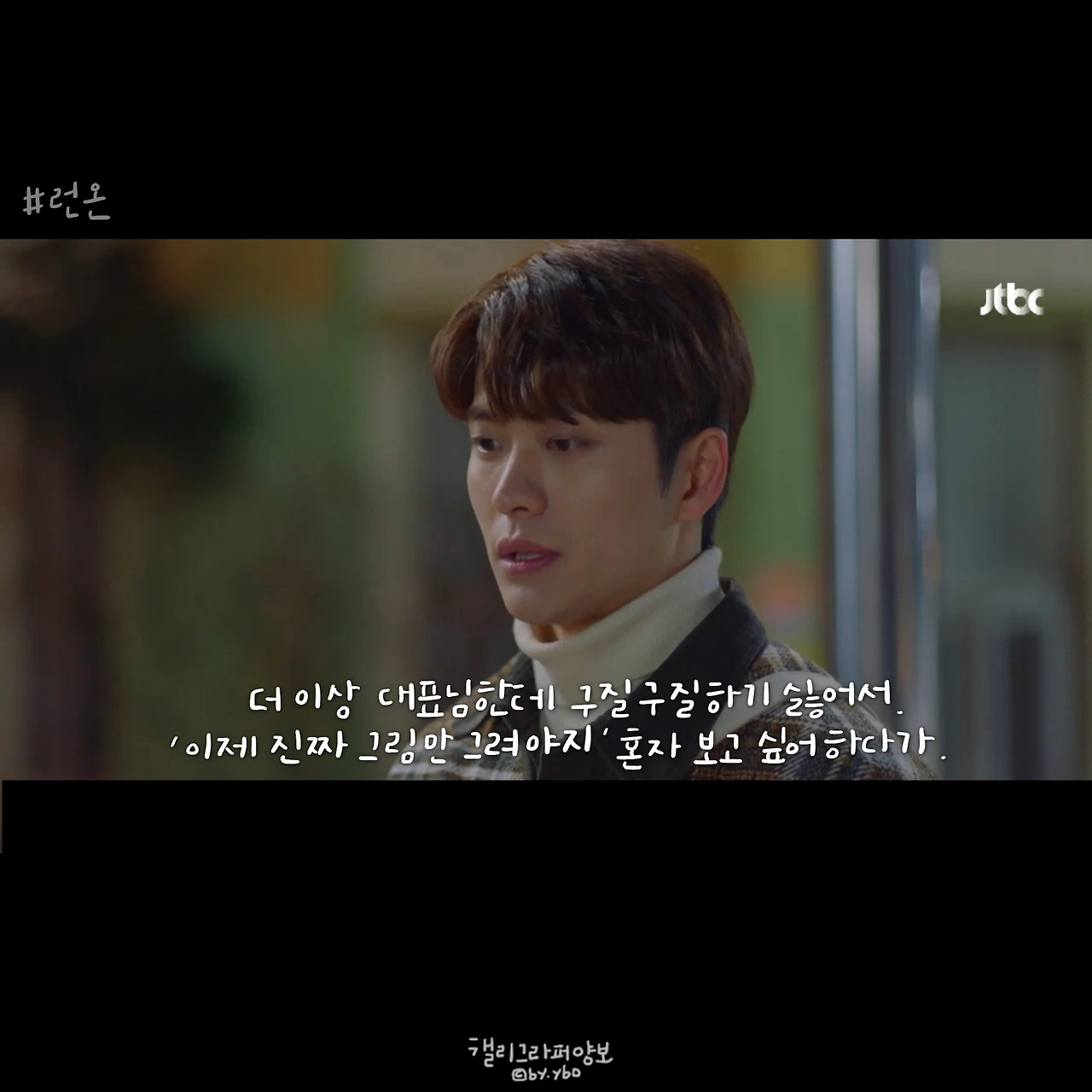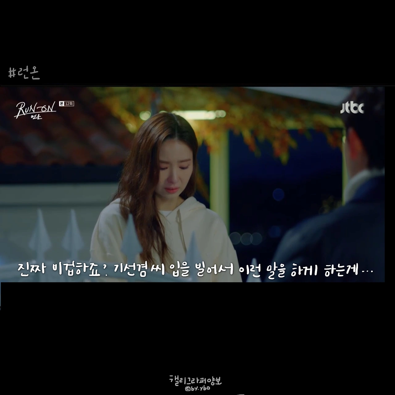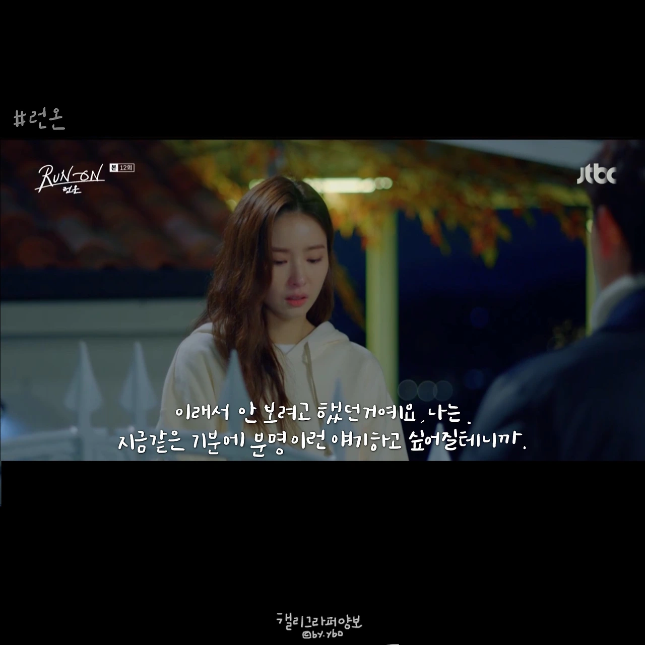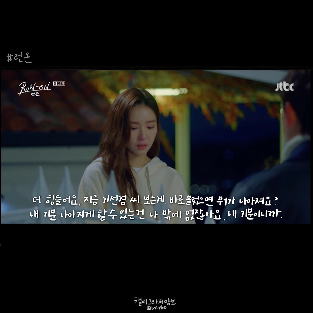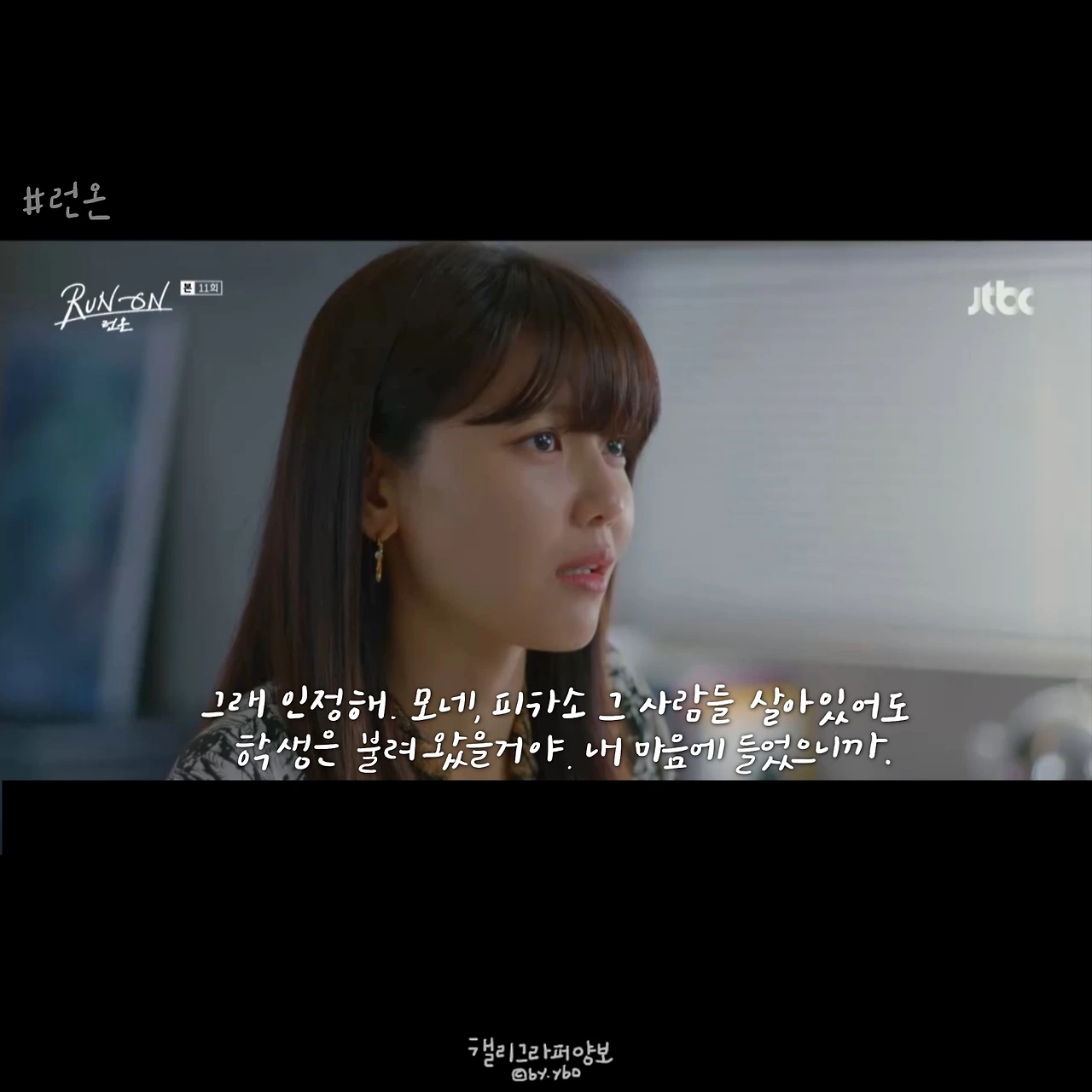 그래서 선겸애비에 대한 일말의 기대를 놓았다. 런온 속 주인공들의 말이 예쁜건 상대를 향한 마음에서다. 선 긋는다는 말을 좋아하지 않았던 것 같아 다른 표현을 쓰고, 김칫국 마신다고 말한 뒤 마음 쓰여 사과하고. 미주에게 자신의 이름을 주고, 다투는 와중에도 존대하라며 품격을 지키게 했던 모든 순간은 자신의 체면이 아닌 상대를 존중함에 나온 말 모양이었기에 선겸애비에 대해선 그 어떤 희망도 찾아볼 수 없었다.