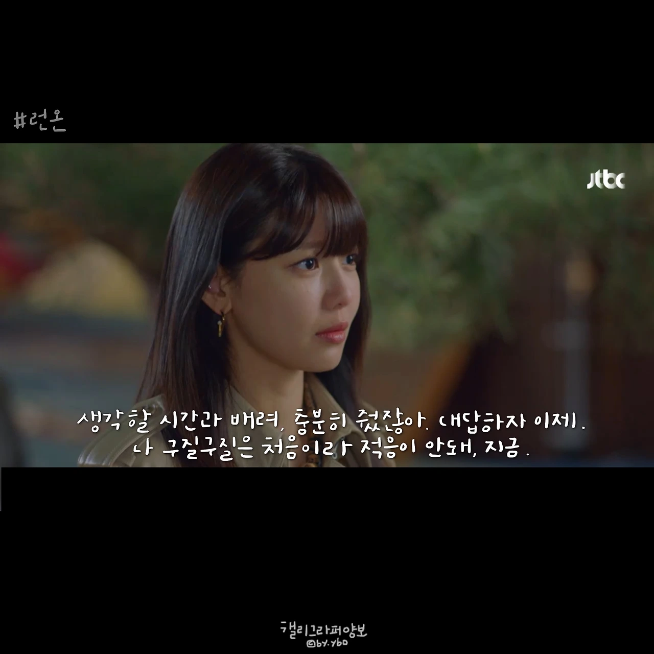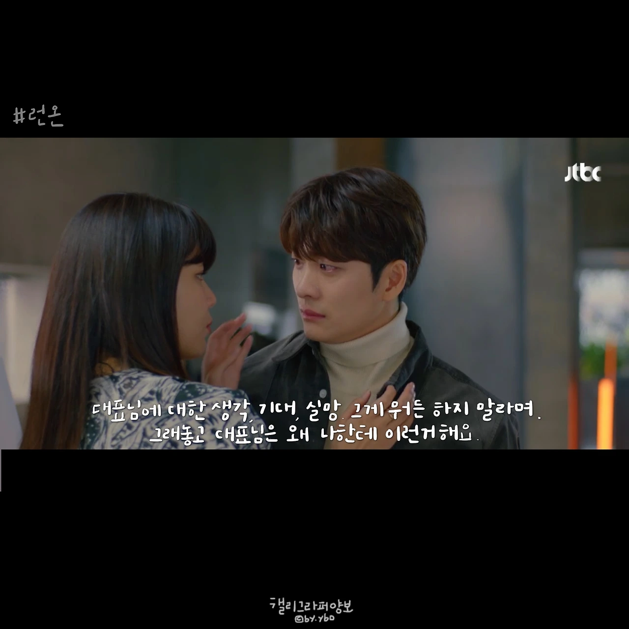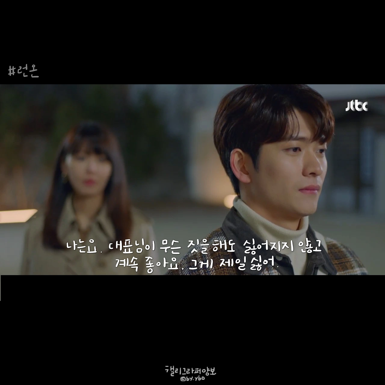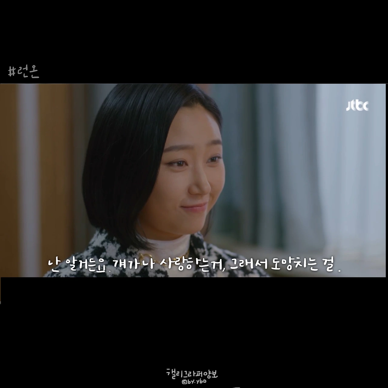기은비 프로 대사에서 생각난 인물은 #태양의후예 윤명주+서대영 커플이다. 서대영은 항상 도망을 갔고 명주는 그게 어디라도 잡으러 갔다. “내 모든 도망은 다 백 마디의 말이었”다던 서대영 대사는 기은비 커플에게도 어쩐지 잘 어울린다.