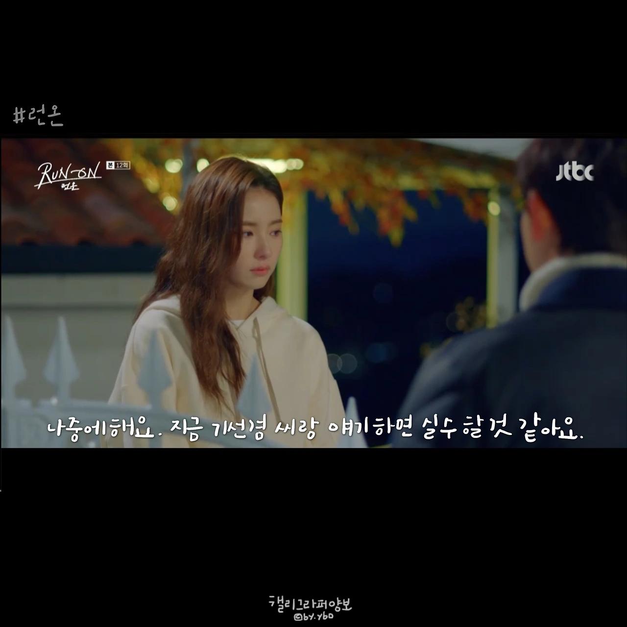13회로 이어진 장면에서 미주가 한 실수가 무엇인지 나온다. 하지만 이 장면까지만 보면 나는 다투는 상황과 어쩌면 헤어질 수 있는 상황에서도 함부로 행동하지 않으려는 서로 간의 노력이 마음을 더 먹먹하게 했다. 정말 이런 이별이 있을 수 있을까