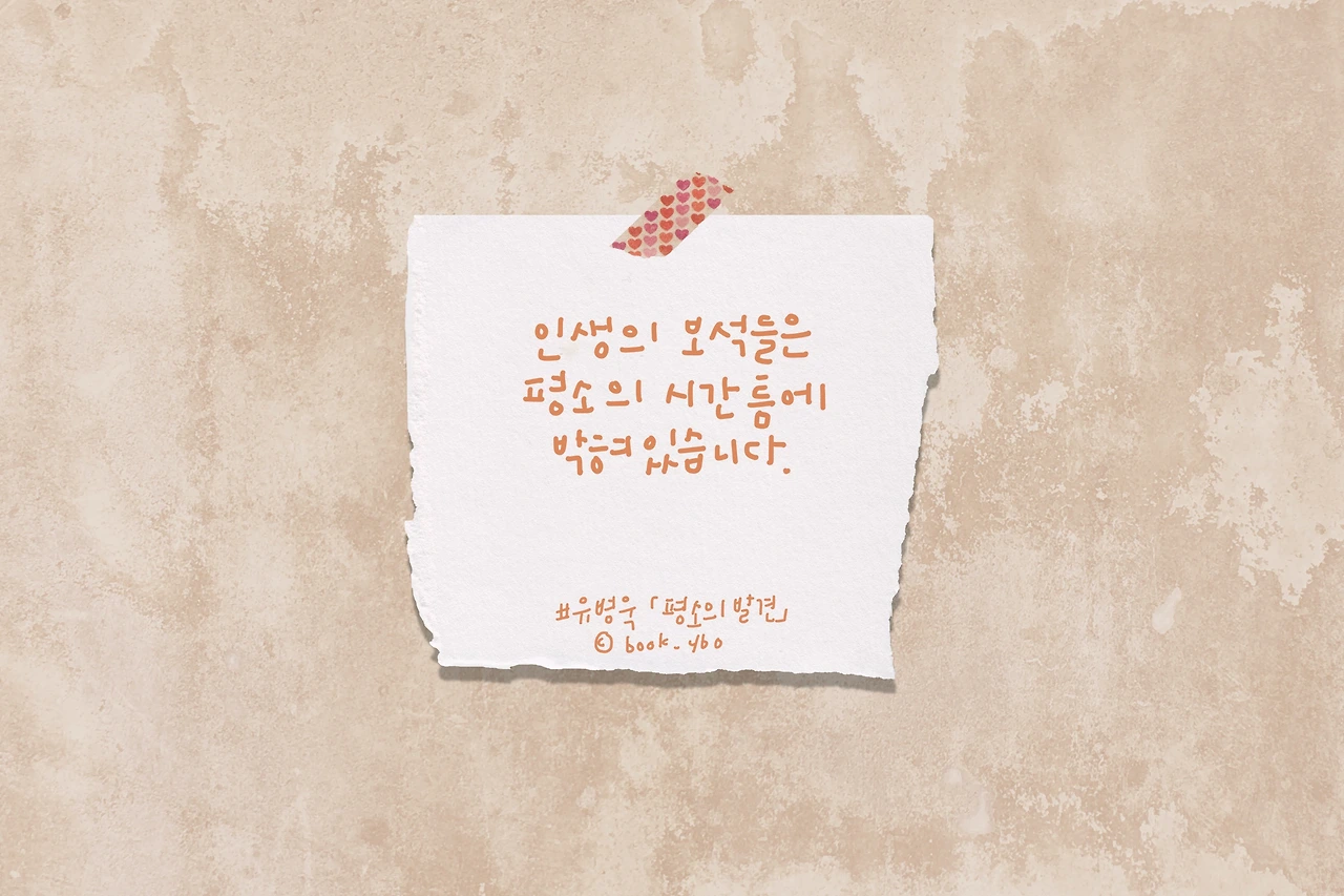 가령 나는 맛있는 커피 한 잔, 좋아하는 책을 읽는 주말의 한 시간, 퇴근길에 걸어보는 산책로, 그 옆에 지나가는 강아지를 바라보는 순간에서도 입가에 미소가 걸리며 행복해진다. 아주 작은 행복의 감정이라도 느끼게 해주는 것이 있다면 기억해두고 있다 자주 그 시간을 갖자. 티끌 모아 태산을 이루는 게 행복이라고 다를까. '행복이라는 게 그렇게 소소하고 구체적일 수도 있겠다.' 그렇게 발견한 행복을 일상에 콕콕 박아두자. 작은 행복을 발견했을 때 인정하고 받아들이는 일이 큰 행복을 가져오고 누리게 해 줄 거라고 믿는다. 그리고 이 일은 자신을 아끼는 방법 중 하나가 되어줄 거라고도 믿는다.