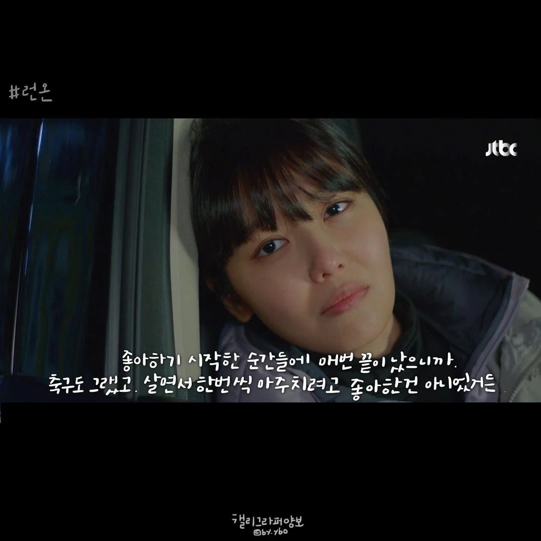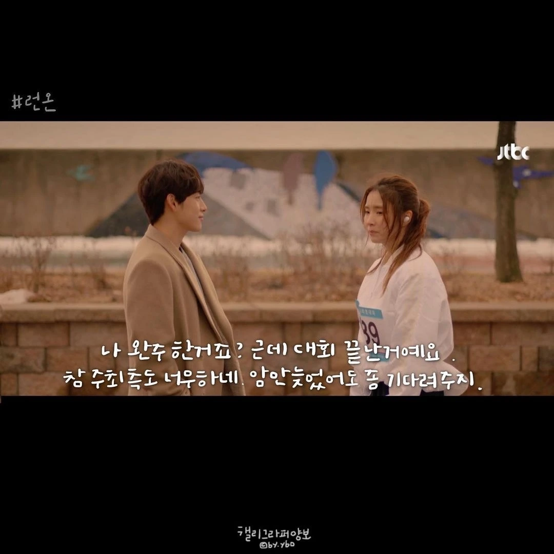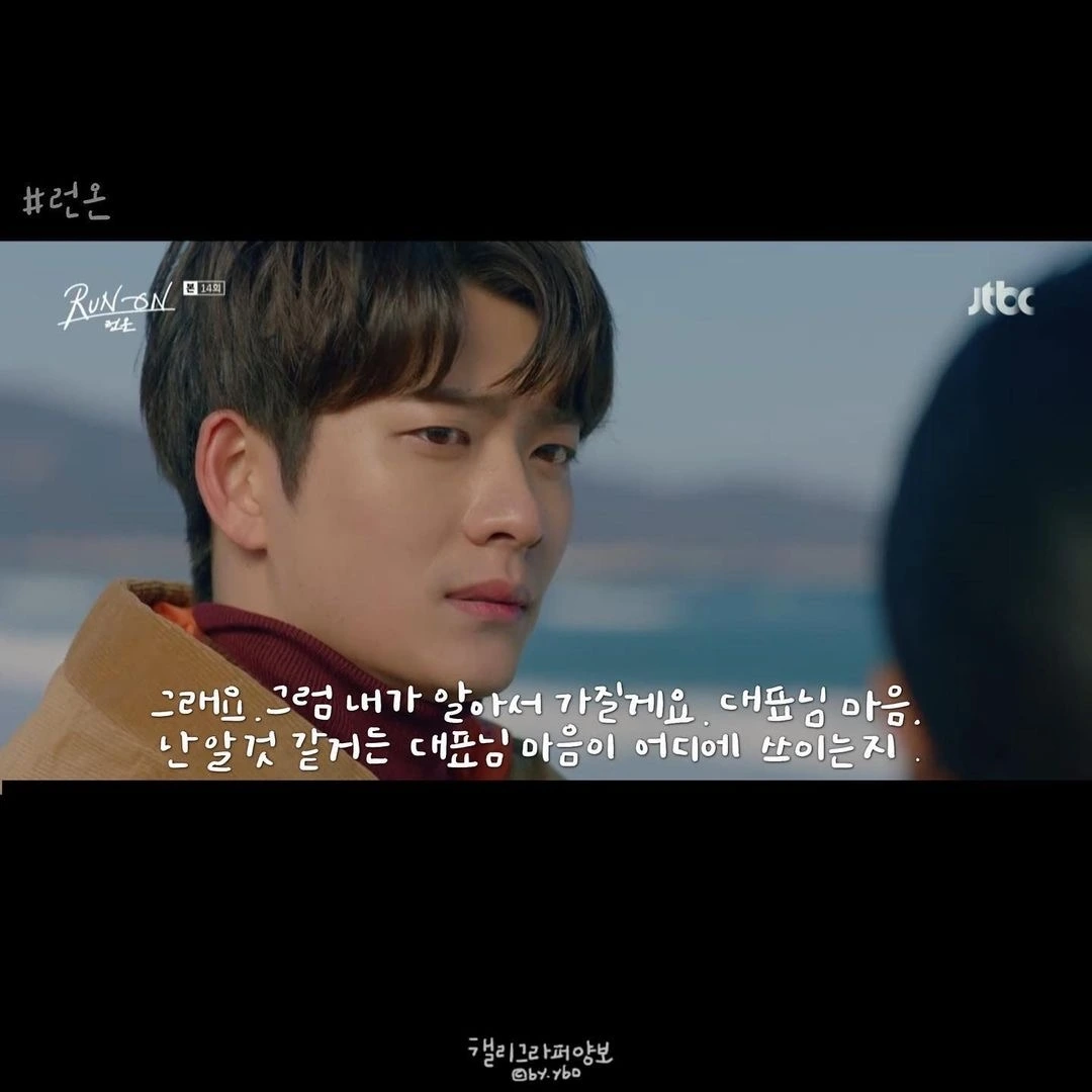 드라마 <런 온>은 칭찬할게 무수히 많은 드라마다. 그중 하나는 주인공들의 직업이 단순 배경이 아닌 그 사람을 이해하는 장치로 마지막까지 착실히 사용되었다는 점이다. 선겸이 처음 아버지의 뜻과 반대로 뛰었을 때 두 귀를 가득 울리는 자신의 심장 소리를 들었다. 그 순간, 세계는 아버지가 아닌 그로만 채워졌다. 분명 혼자였지만 외롭지 않은 순간이었던 것 같다. 벅찬 그 순간을 잊지 못해 그는 달리기 시작했다.
