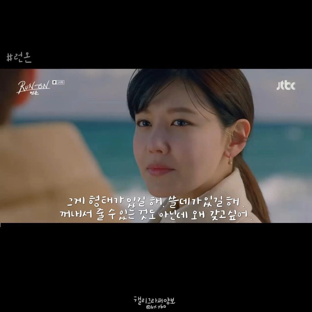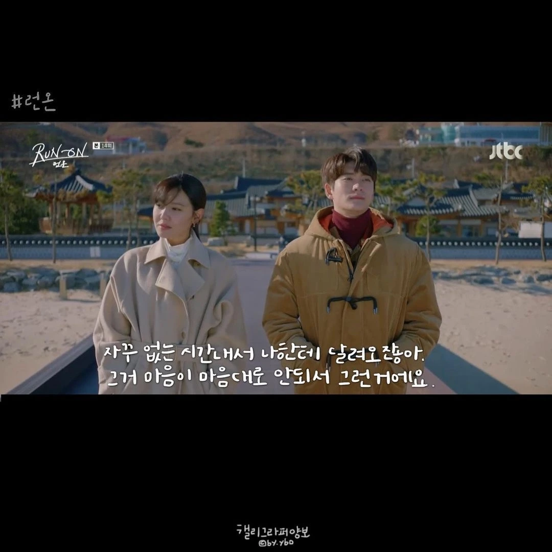 내가 드라마 <런 온>에서 사랑했던 장면은 두 사람이 마주 보고 앉아 무언가를 먹을 때였다. 차나 한잔 하는, 그마저도 시켜 놓고 입 한번 안 대고 카페를 나서는 숱한 드라마들 속에서 <런 온>은 유독 밥을 먹는 장면이 많았다.