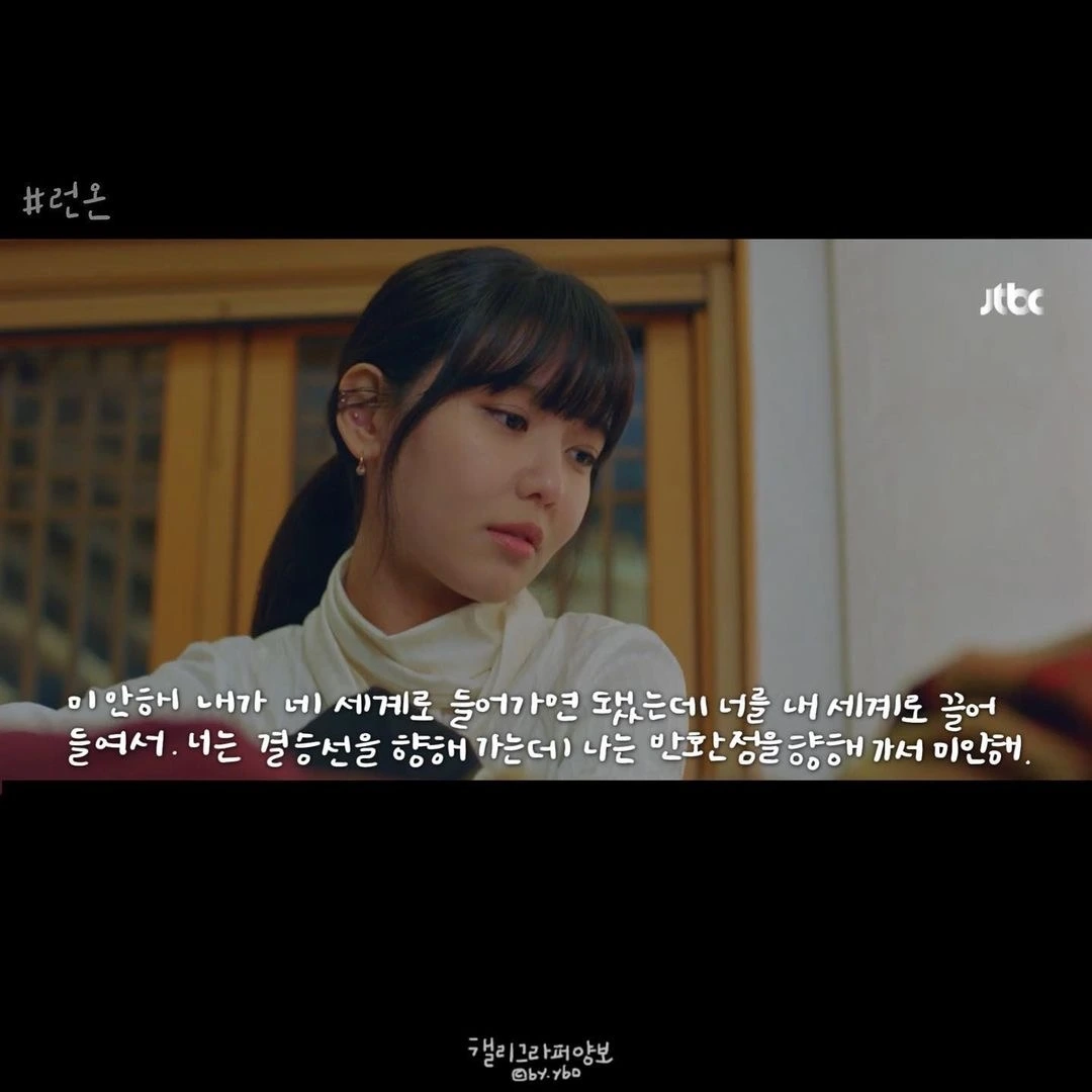 “난 알거든요. 걔가 나 사랑하는 거 그래서 도망치는 걸.” 이런 마음이라면 서서히 가까워지는 중이다. 두 사람 다 사랑하는 마음이니, 그 마음이 이길 테니까.