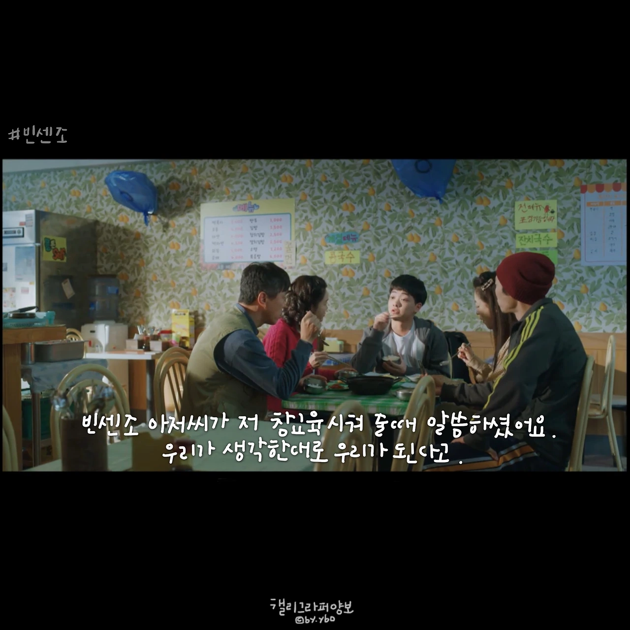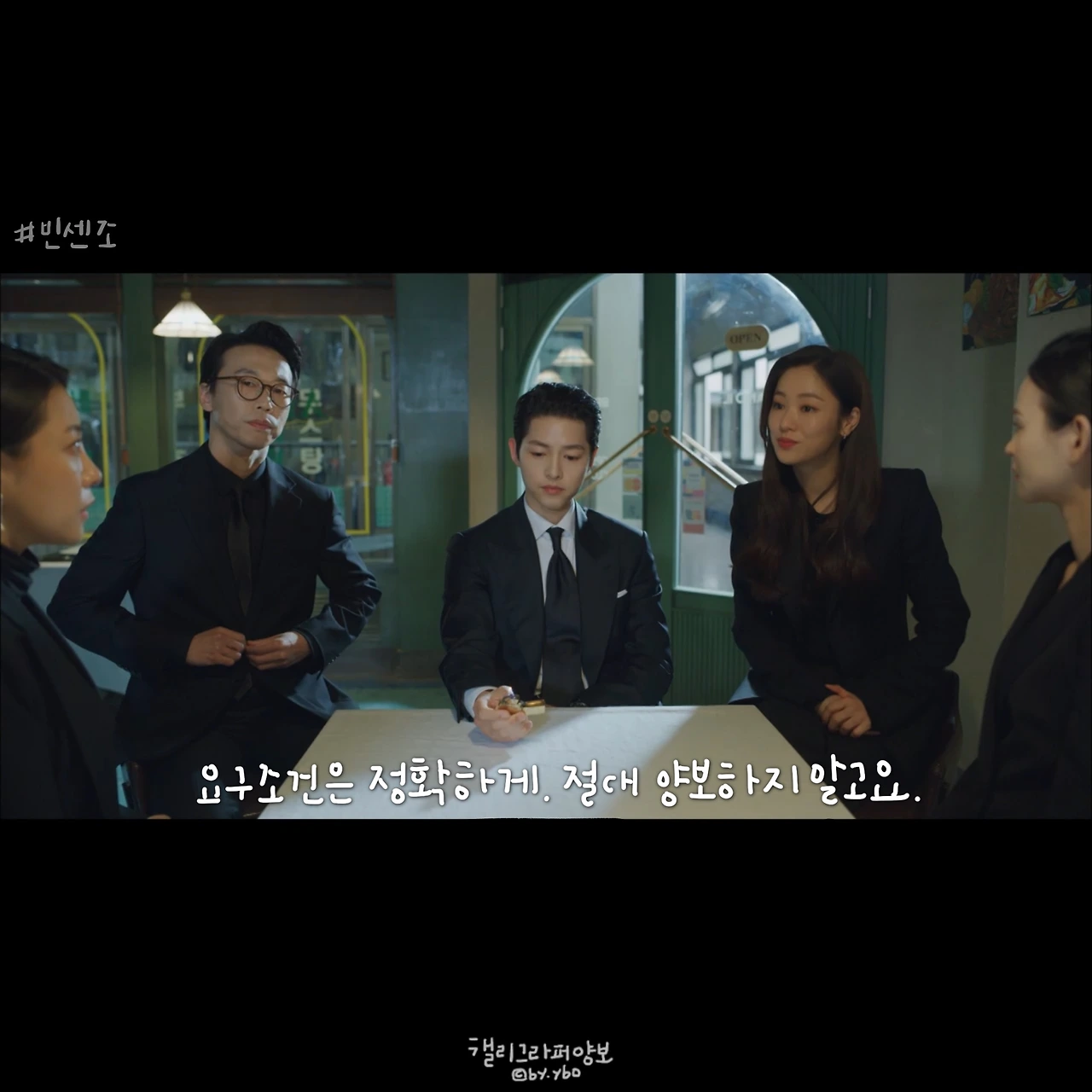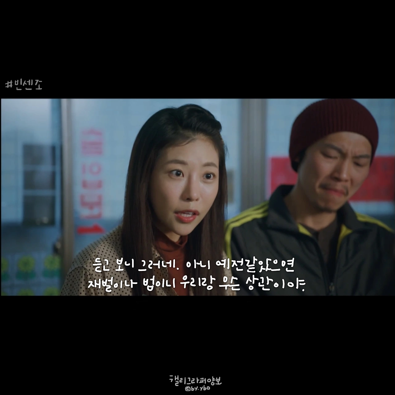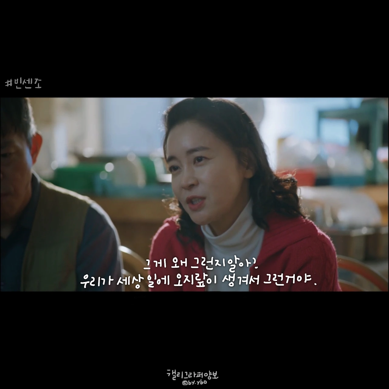 대사를 쓰면서 발견한 반응인데 1회를 보고 예상과 다른 분위기?에 포기 선언을 한 분들이 많은 듯하다. 하나 거기서 포기하면 좀 아쉽다. 억울할 수도 있다. 이 멋진 드라마를 못 보는건 손해니까. 좀 어색하거나 과하다 느껴지는 부분을 10초씩 살짝 뛰어넘어 조금만 더 가면 완전히 다른 분위기를 풍기는 <빈센조>를 만날 수 있으니까 부디 <빈센조> 미친 매력을 안 보는 일은 없길.
