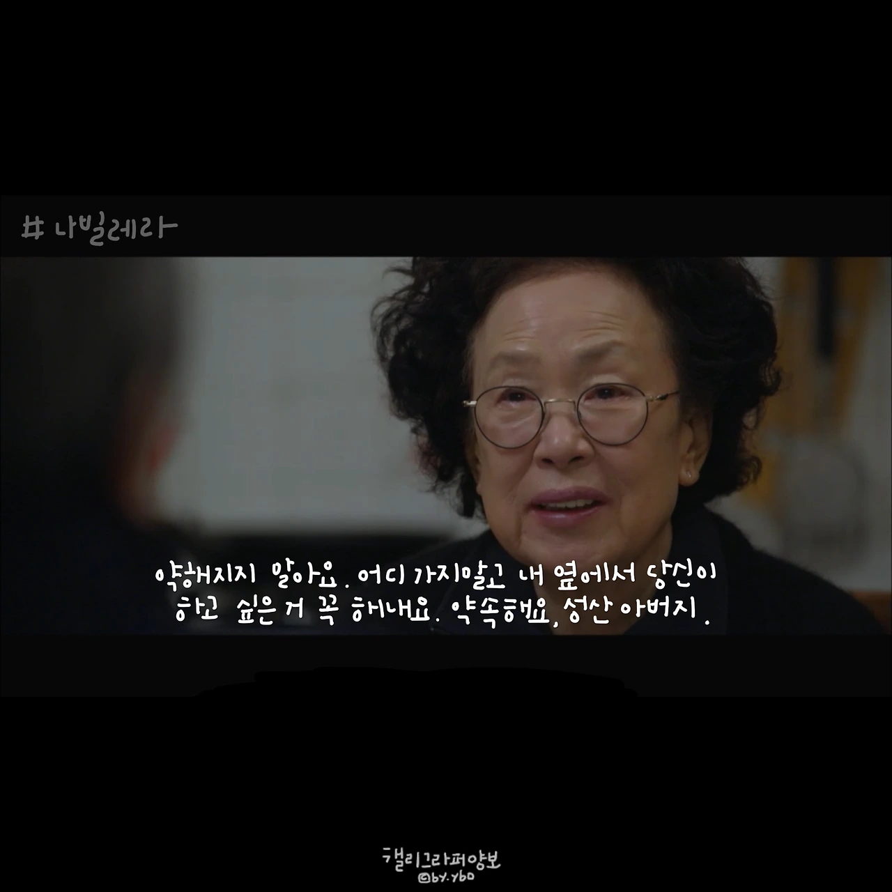 '동림'이란 이름을 쓰던 그녀에게 김환기는 자신의 하오였던 '향안'이란 이름을 주었고, 두 사람은 부부이자 연인이자 예술적 동반자가 되었다. 해남과 덕출의 관계도 그렇다. 내조, 라는 피상적인 단어로 설명할 수 없다. 단순히 덕출을 돕는 것 이상이다. 해남과 덕출은 서로의 삶을 자신의 인생으로 사는 소울메이트이자 동역자였다. 그렇기에 덕출의 날아오름은 혼자만의 것이 아닌 해남의 날아오름이기도 했다는 점에서 나빌레라가 남긴 감동은 더욱 짙었다.
