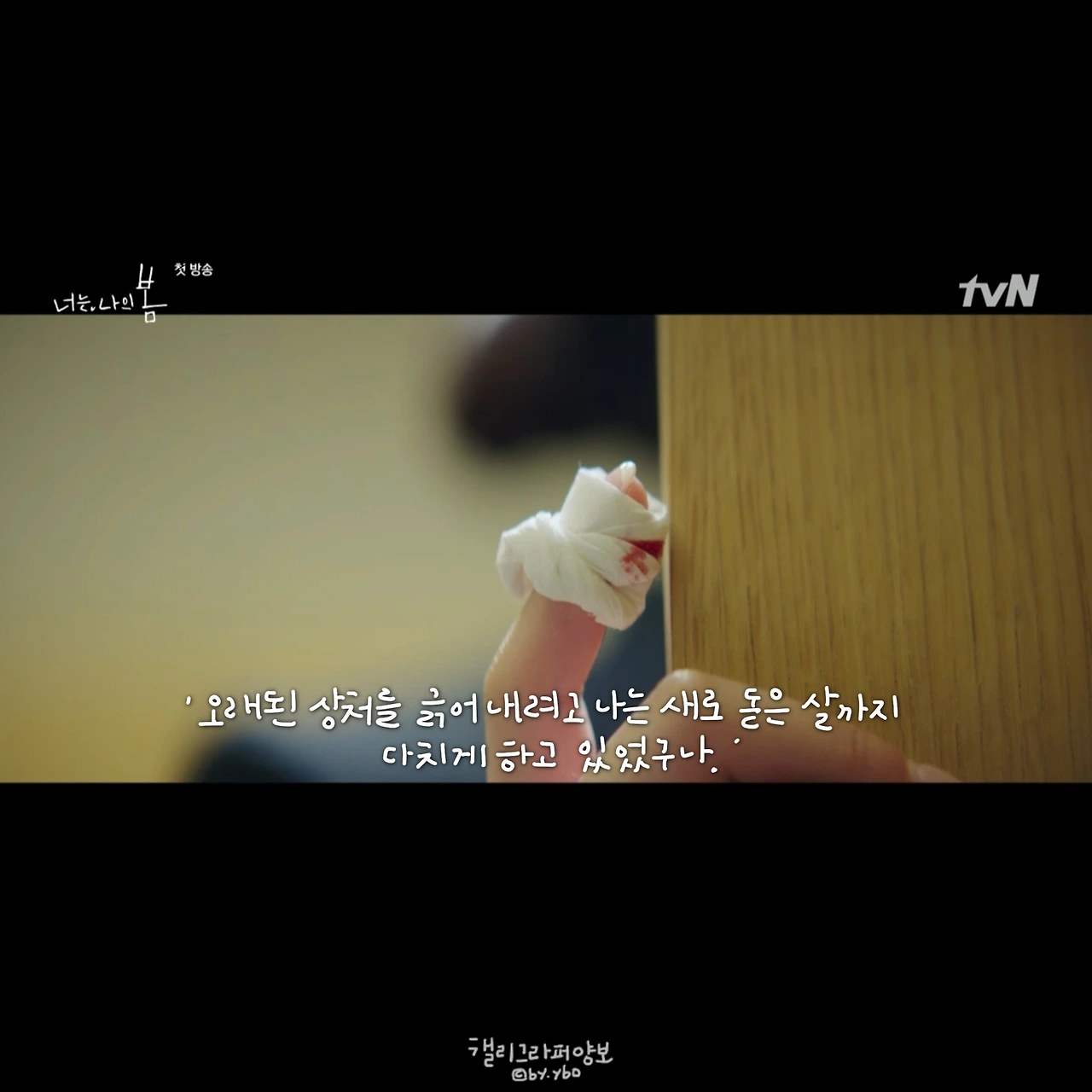 드라마 <너는 나의 봄>은 너무 어릴 적이라 이제는 희미해진 일곱 살의 나를 찾아가는 여정을 조심스레 담고 있다. 굳이 그때의 나를 찾아가야 하나? 지금도 잘 살고 있는데? 작가가 남긴 글에 이런 말이 있다. “ 누군가의 뜻 없는 미소를 나를 향한 비웃음으로 뒤틀어 받아들이지 않으려면, 잘 지내보자고 내미는 손을 나도 모르게 순식간에 할퀴어 버리지 않으려면, 일흔이 넘어 백발이 된 머리카락으로 부모의 무덤에 찾아가서 그땐 나한테 왜 그랬냐고 울지 않으려면, 우리는 더 늦기 전에 그 어린아이를 만나야 하지 않겠냐고” 내가 할퀴었던 손이 생각났다. 받아들이지 못 한 호의로 나는 꽤 외로웠으며 더딘 발걸음을 가져야 했던 시간이 있다. 우리가 그 어린아이를 만나야 하는 이유는 또 다른 상처를 만들지 않기 위해서 일지 모른다.