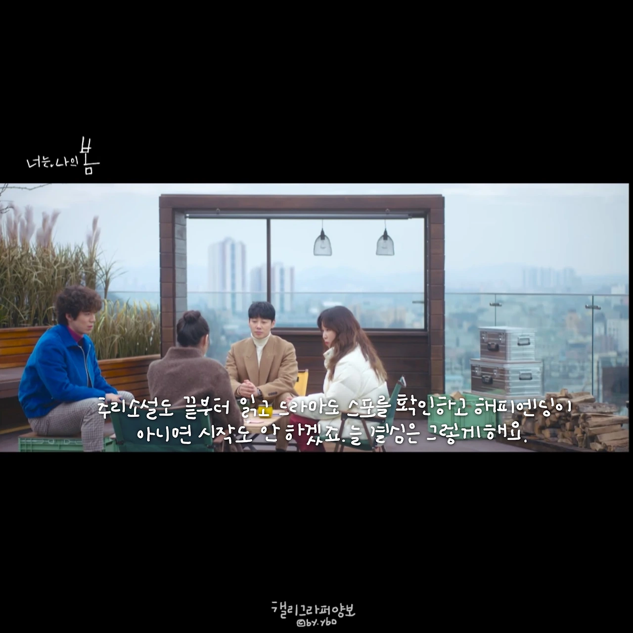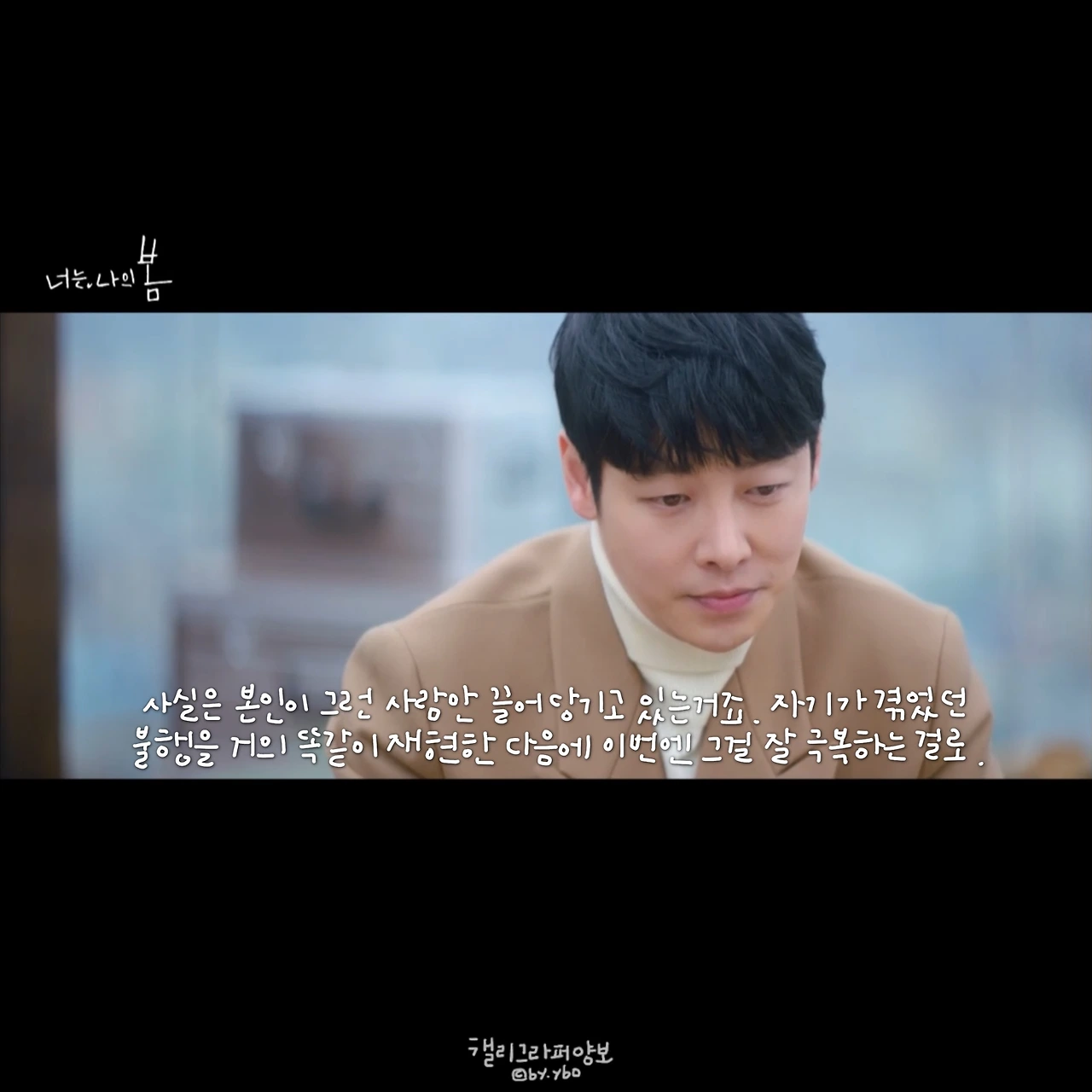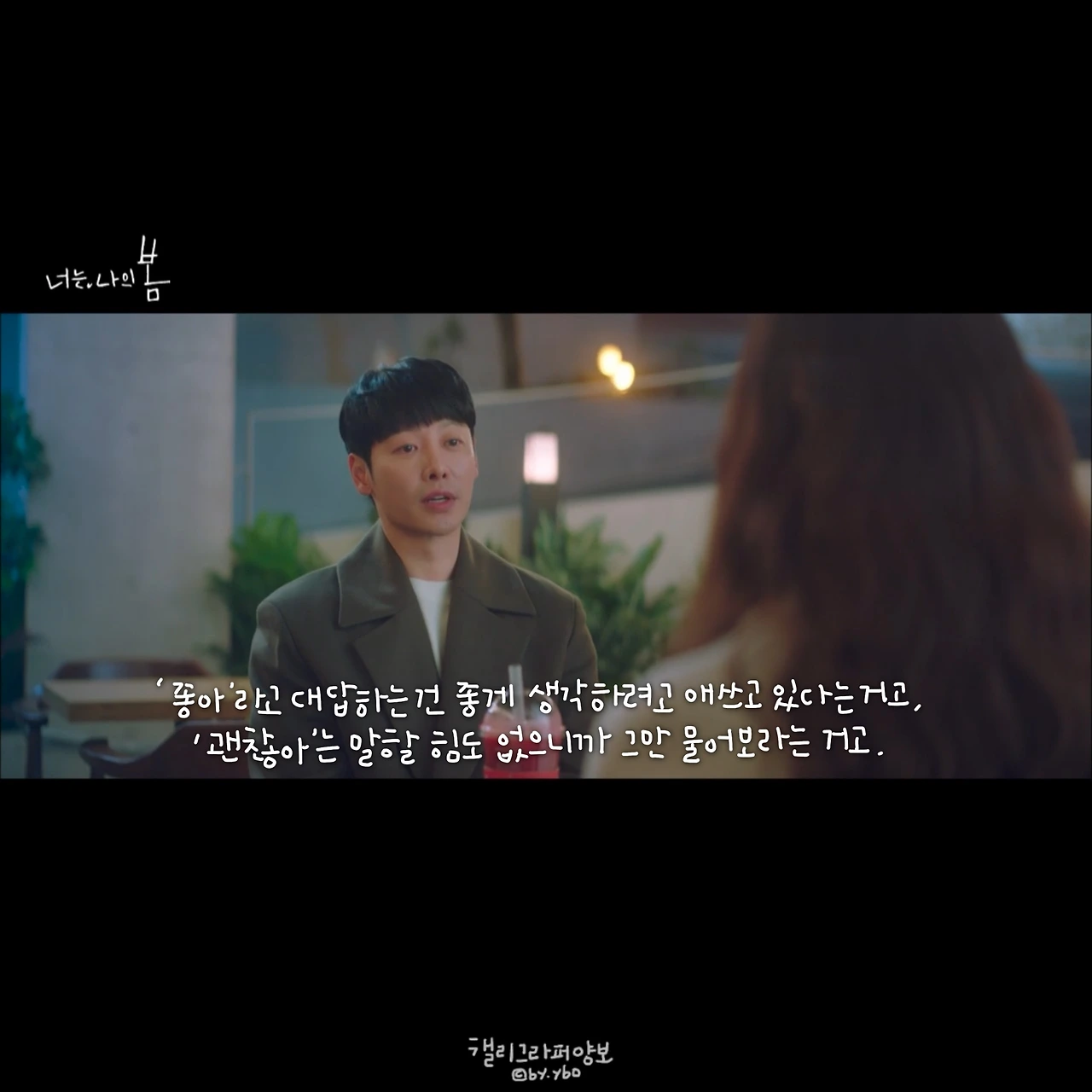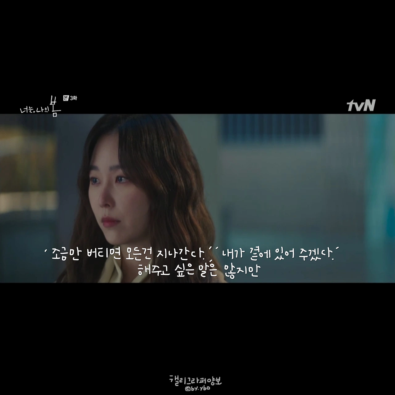 회를 거듭해 갈수록 느끼는 건 이 드라마도 대사가 참 따뜻하다는 사실이다. 나도 미처 다 헤아리지 못하는 내 마음이 '그럴 수도 있구나' 생각해 보는 것만으로도 마음의 방이 한 뼘 넓어진 기분이 든다.